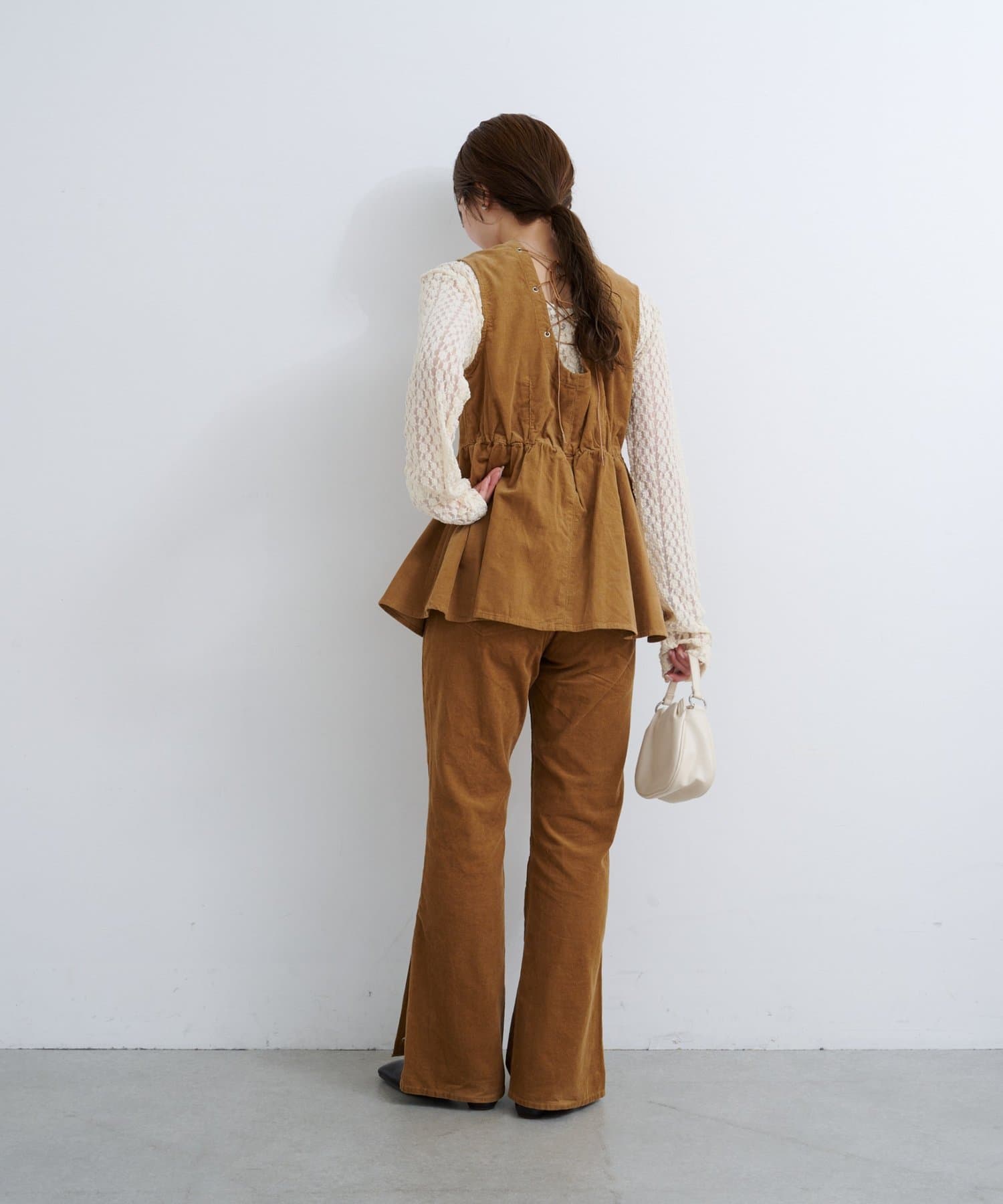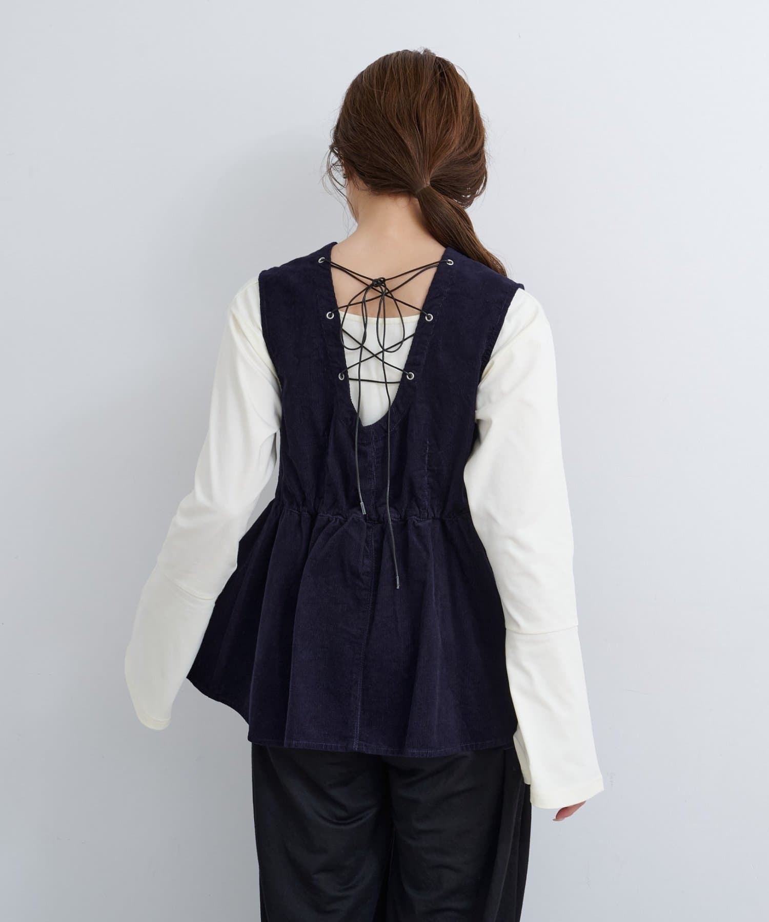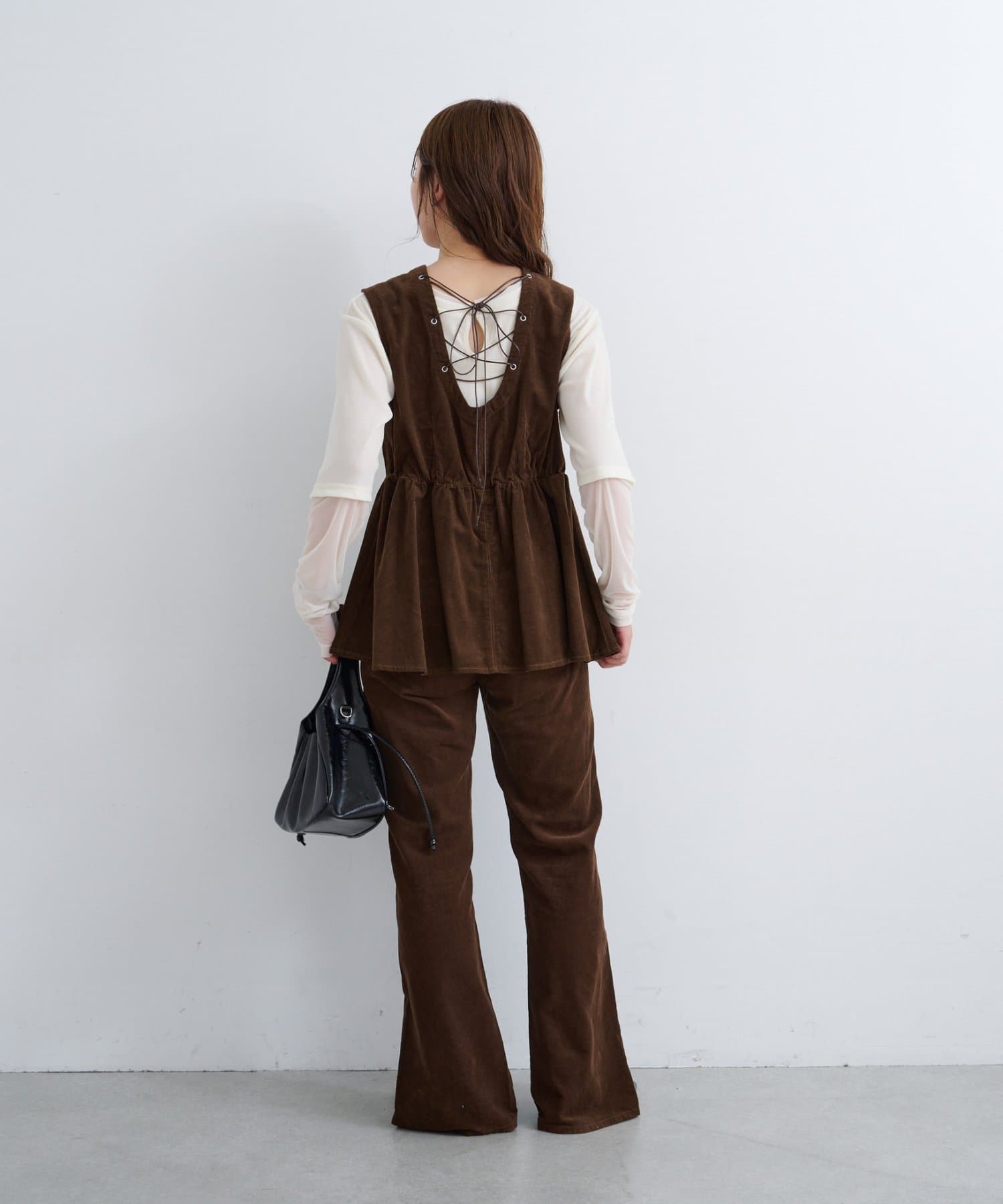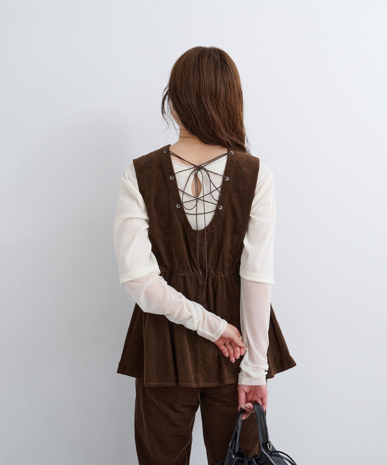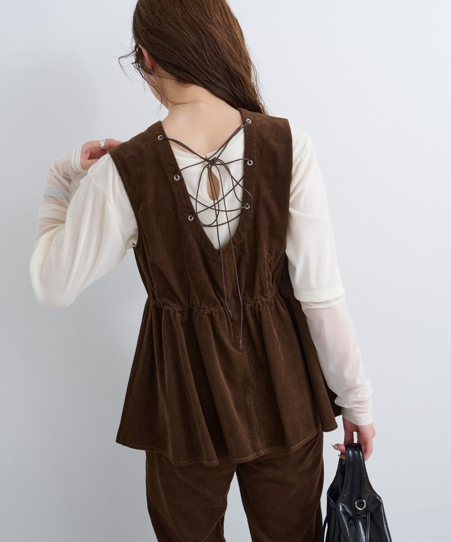 前後で魅せる、大人可愛い万能コーデュロイビスチェ