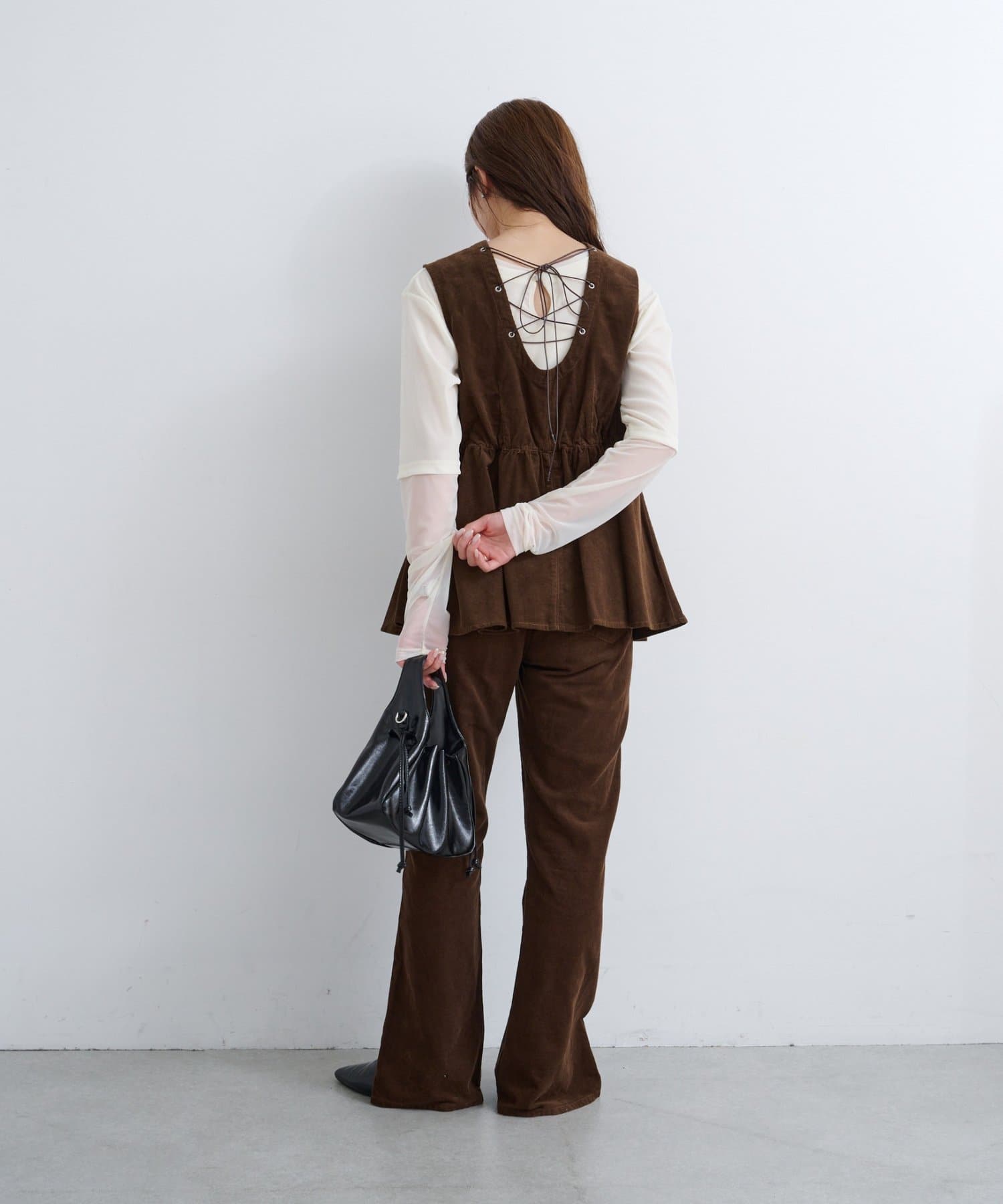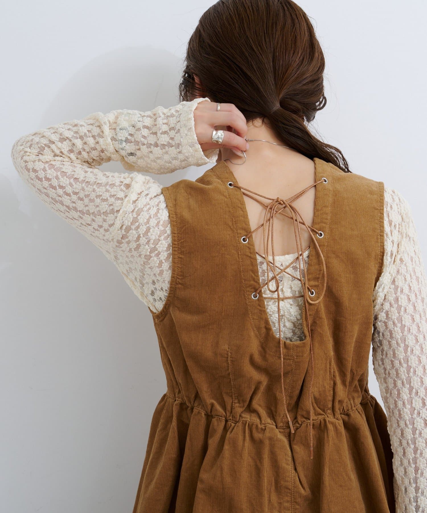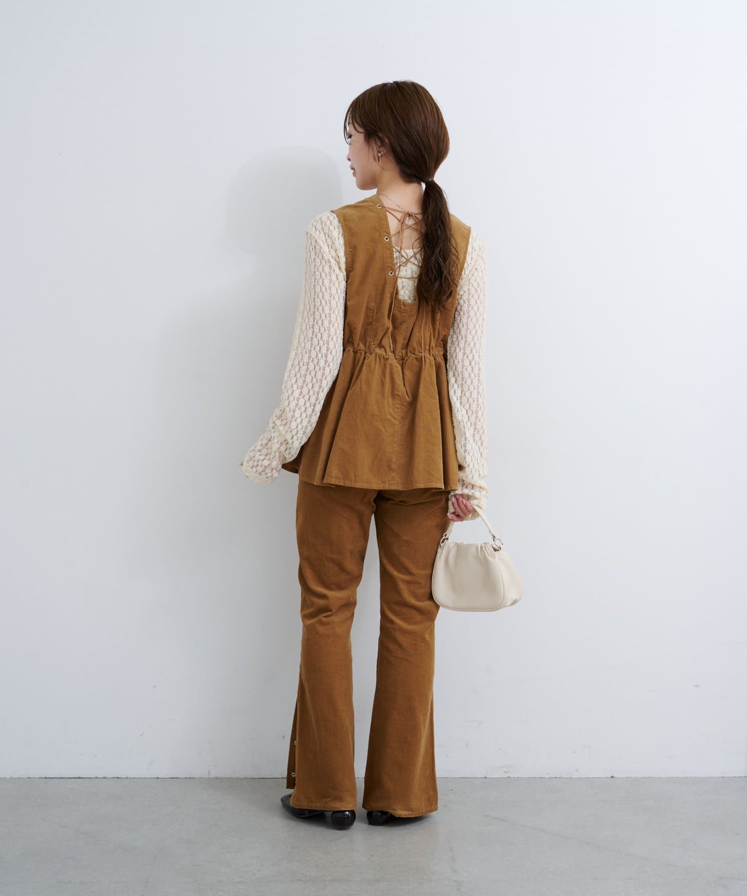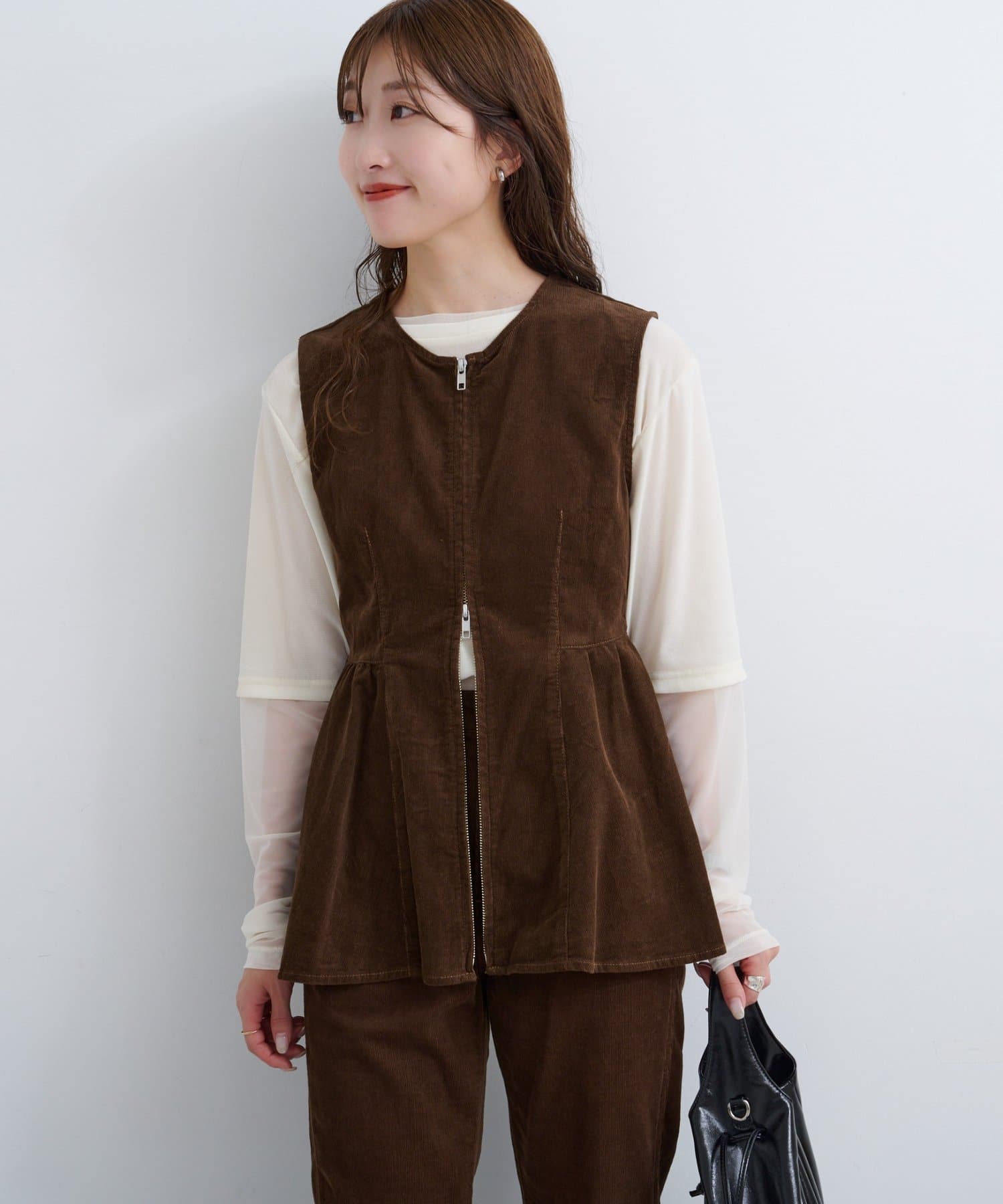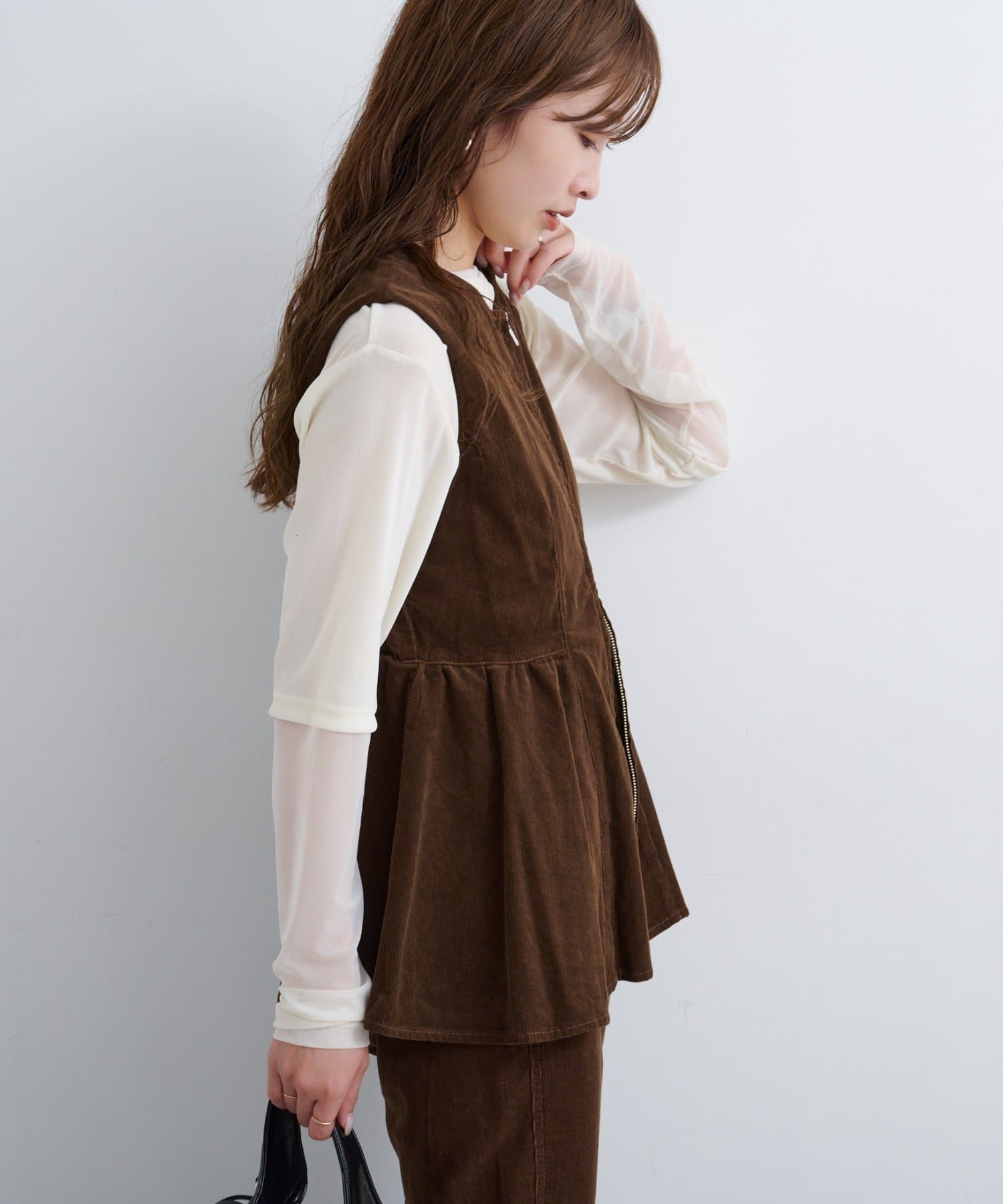 前後で魅せる、大人可愛い万能コーデュロイビスチェ