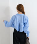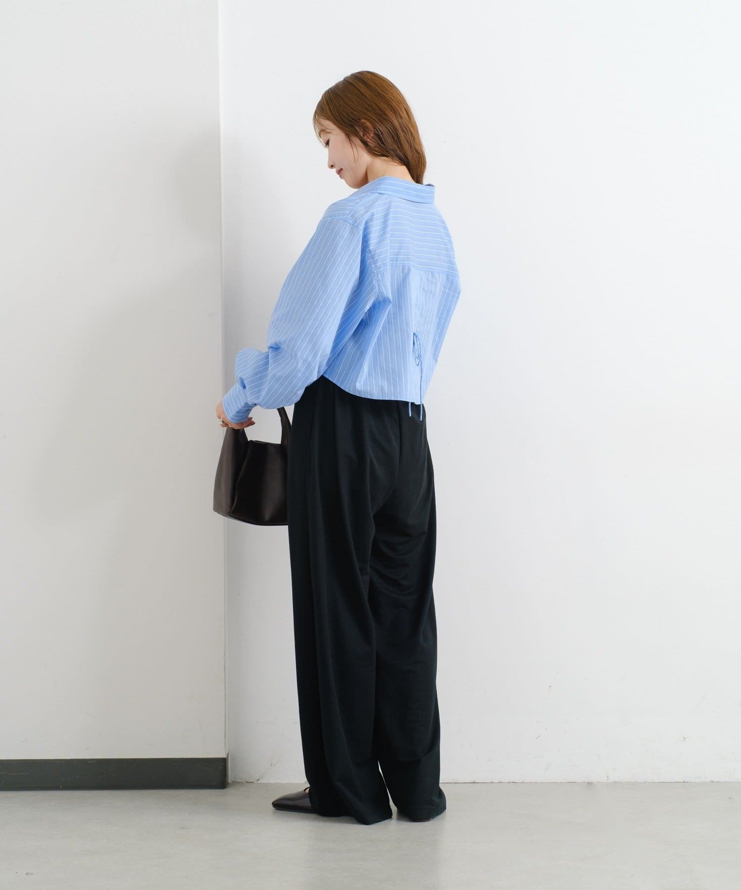 後ろ姿まで抜かりなく可愛い、バックリボンデザインのストライプシャツ。