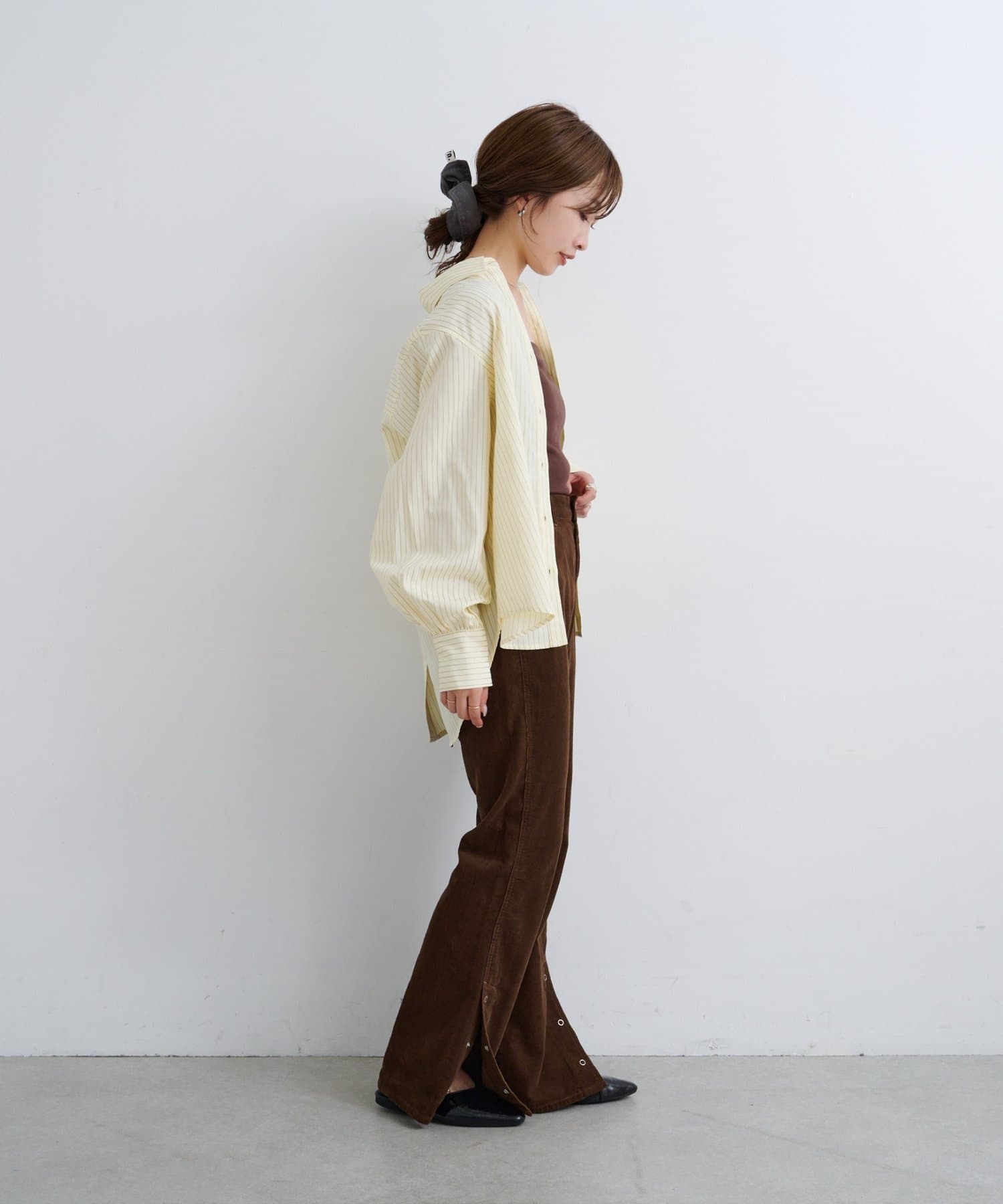 オフィスカジュアルには、ボタンを留めてキレイめパンツと合わせても◎。