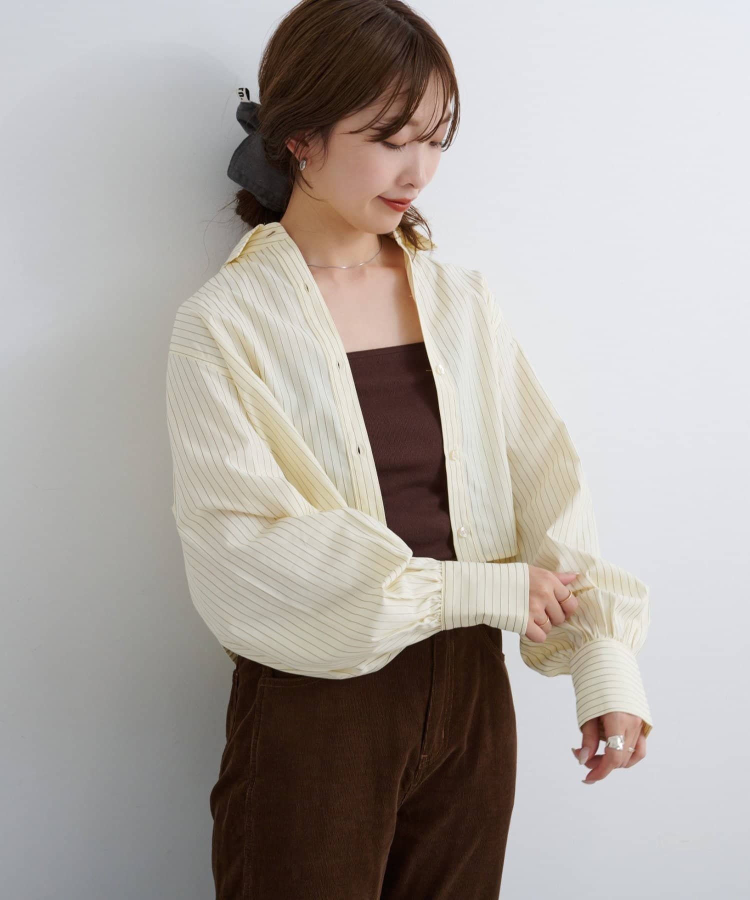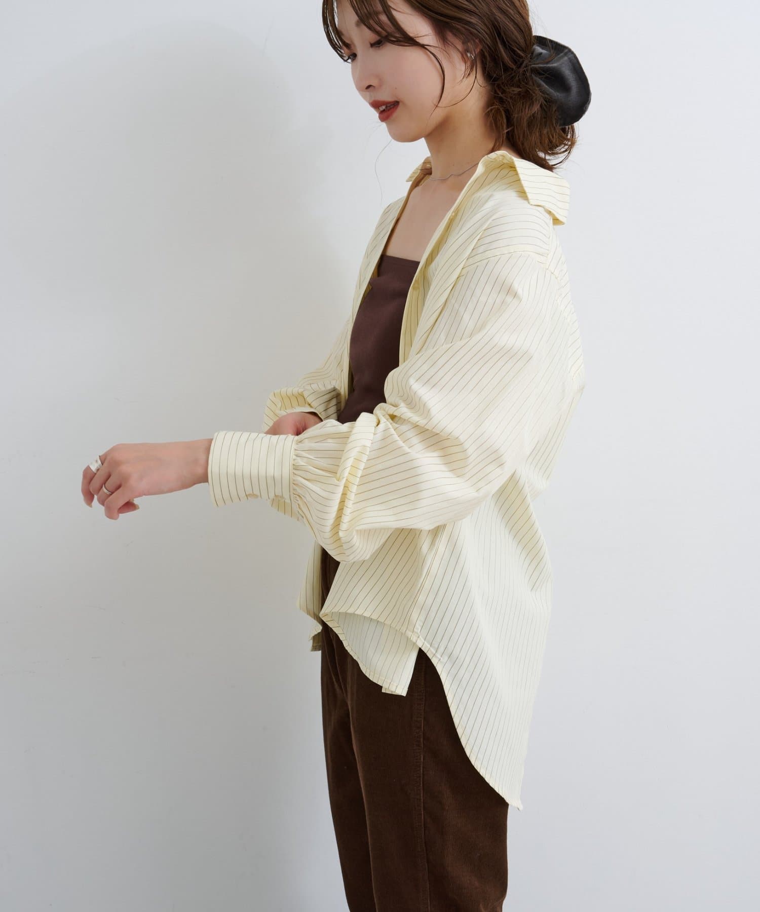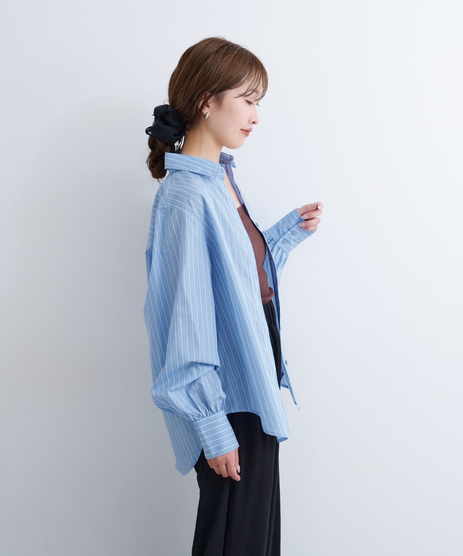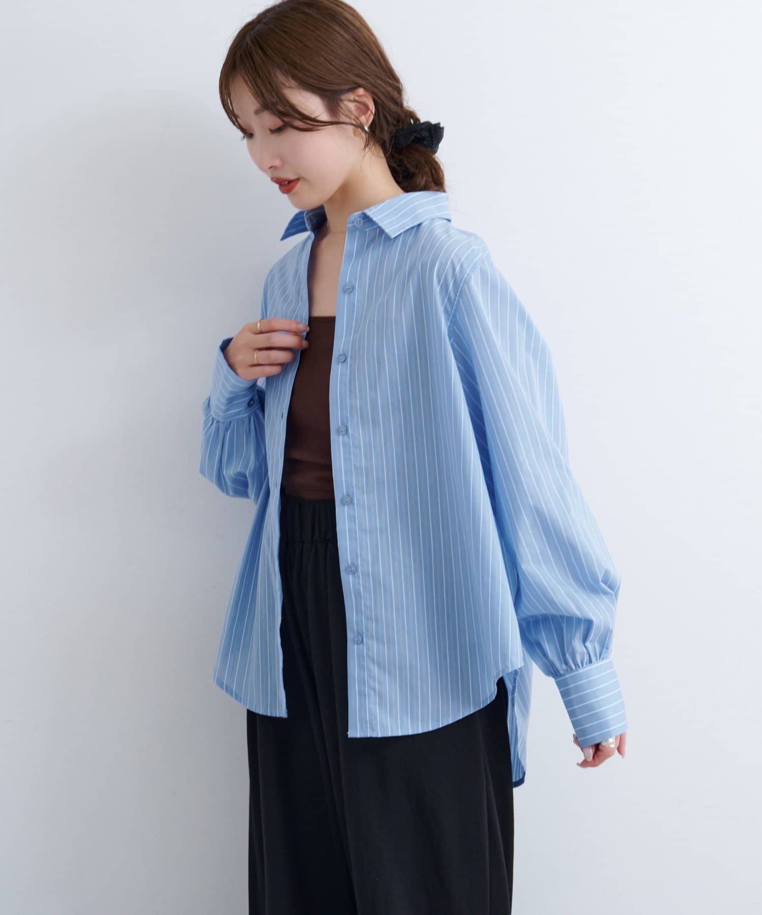 ストライプ柄が爽やかで、シーズンレスで着回ししやすい一枚。