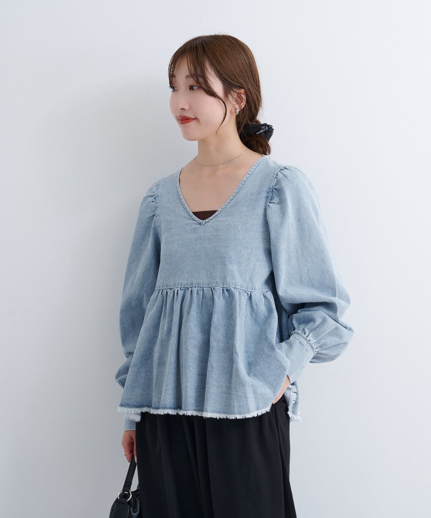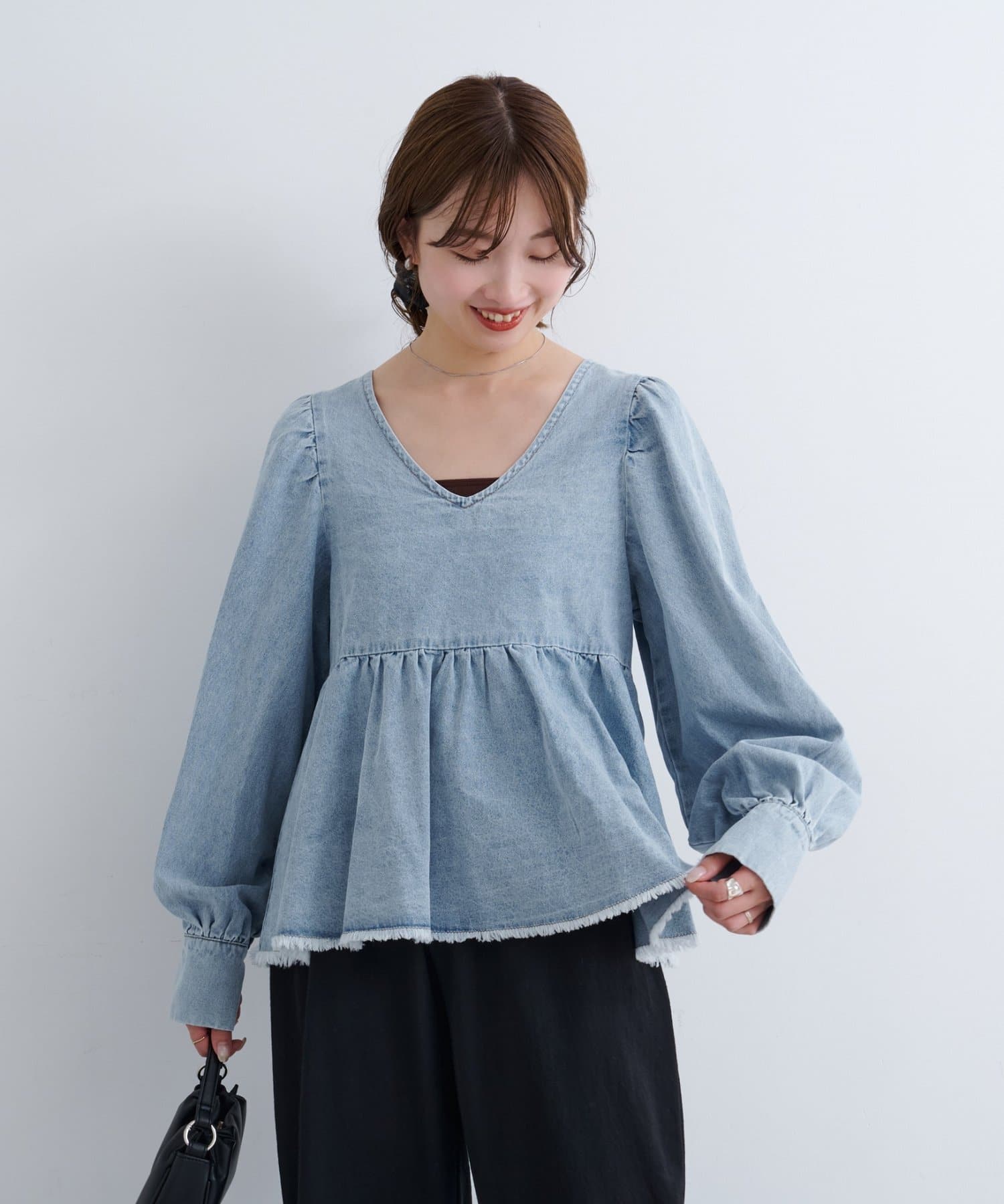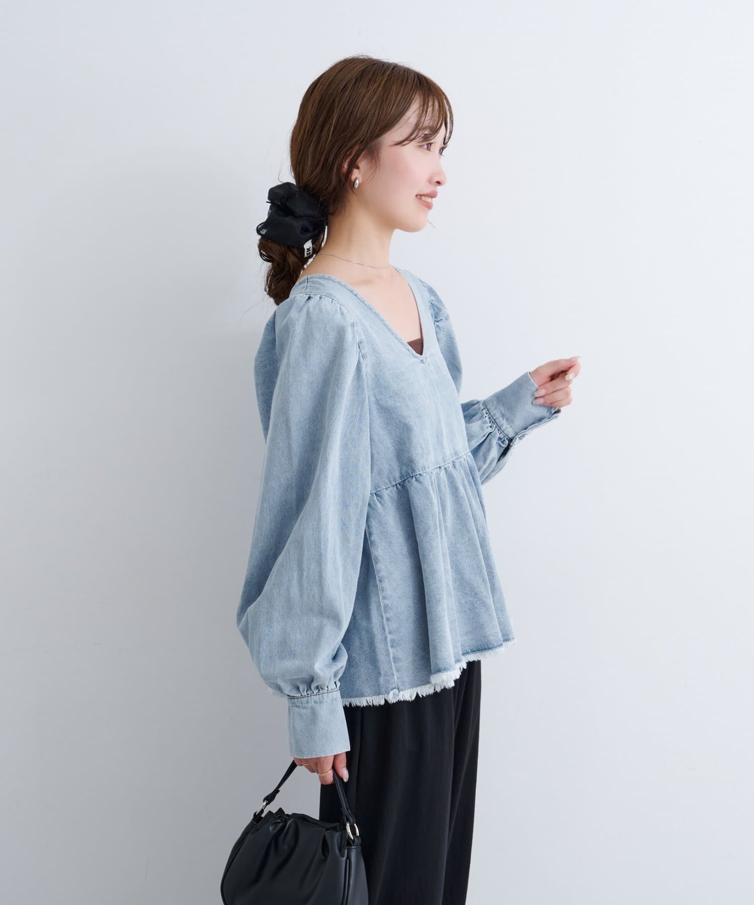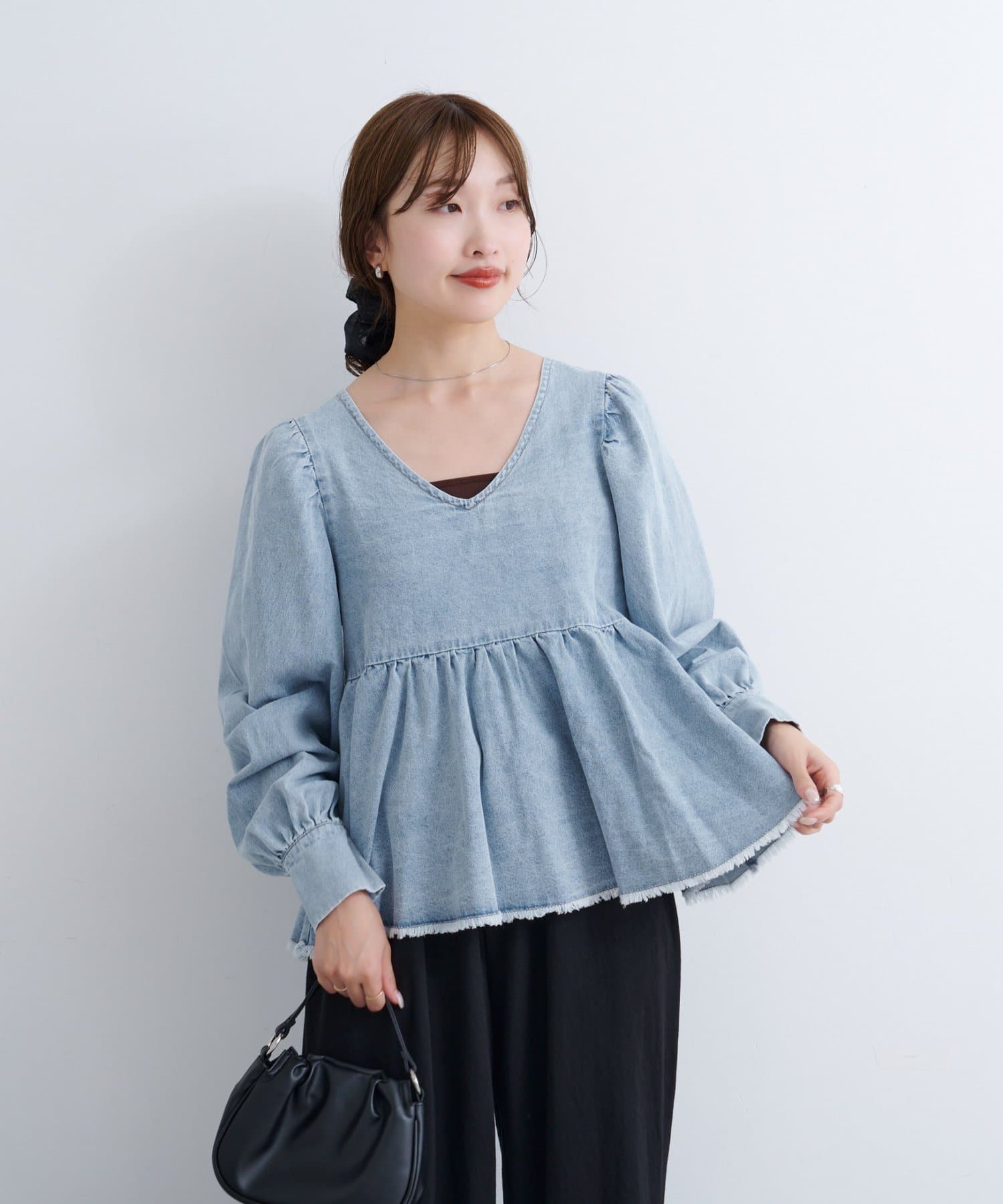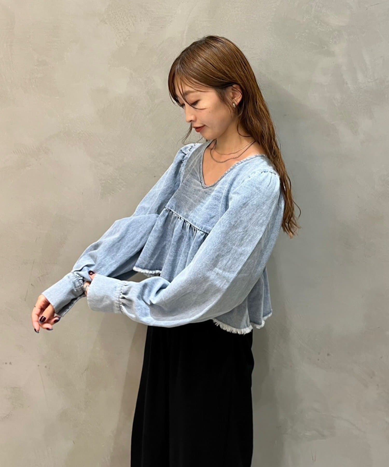 着こなし広がる、ふんわりシルエットの2WAYデニムブラウス