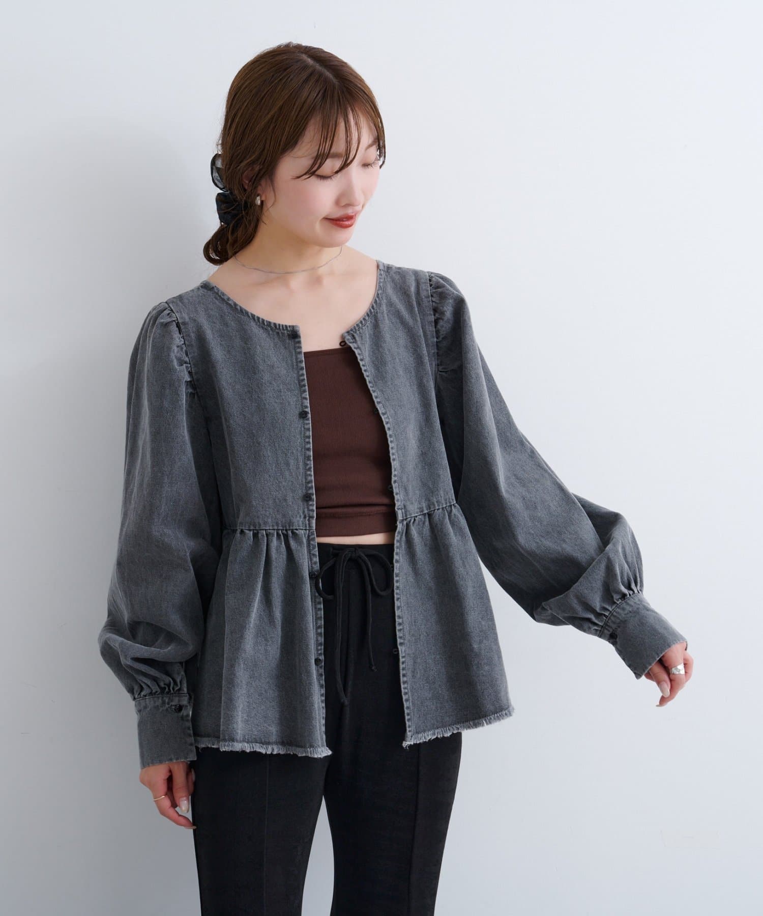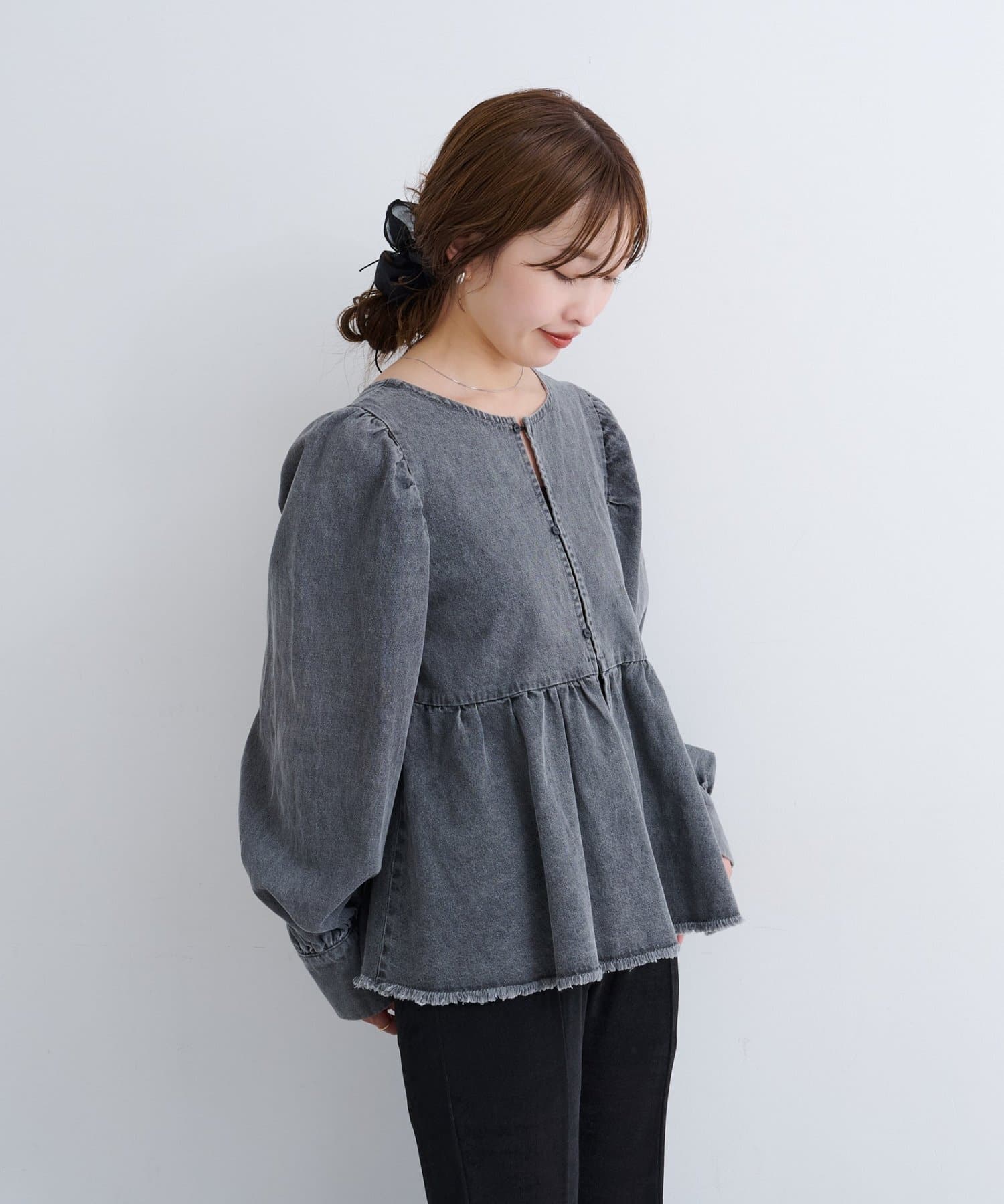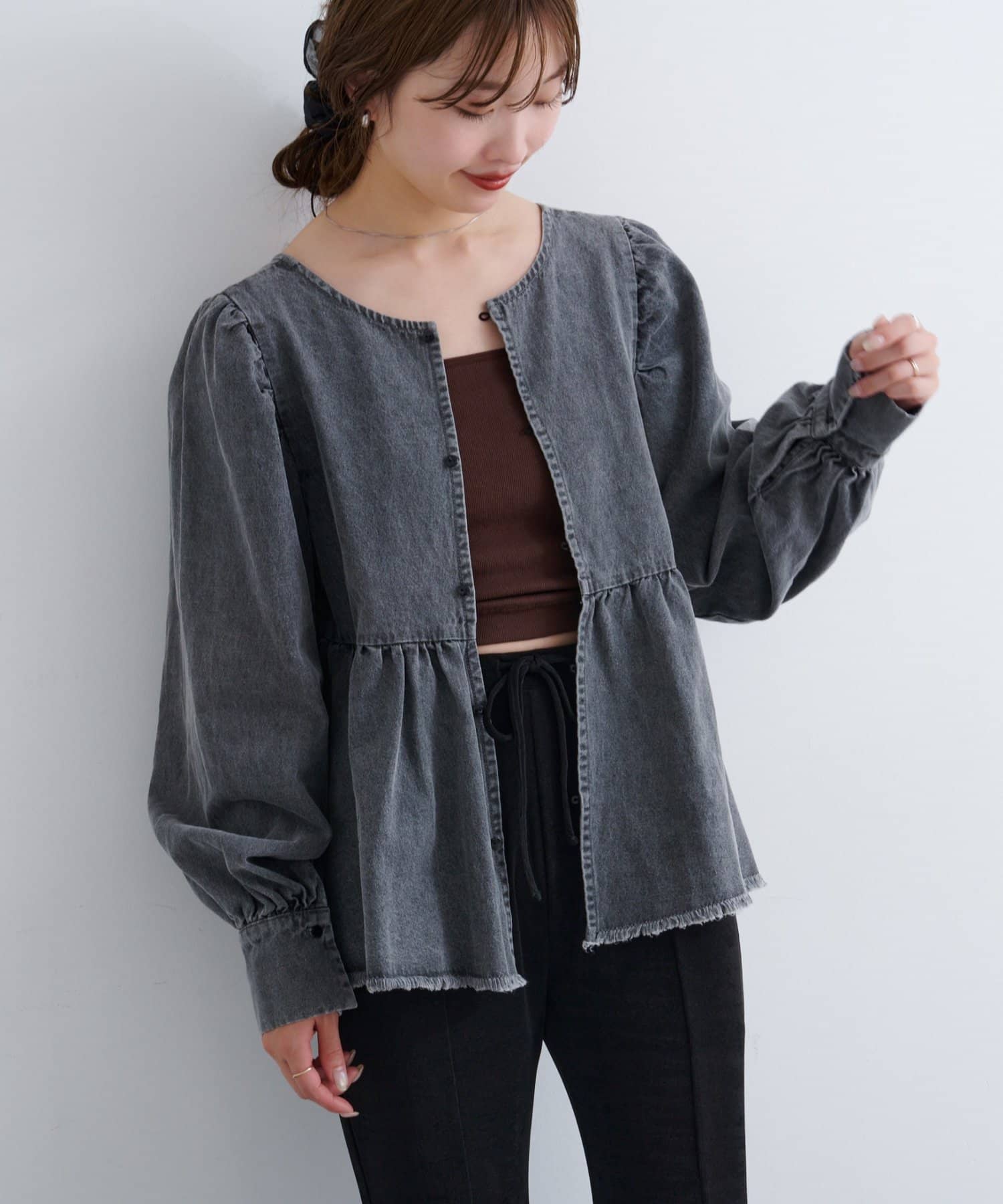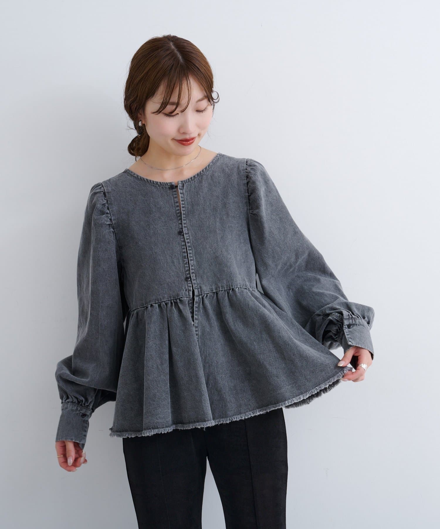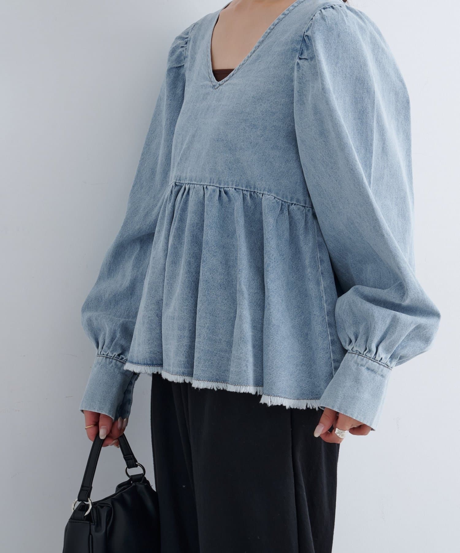着こなし広がる、ふんわりシルエットの2WAYデニムブラウス