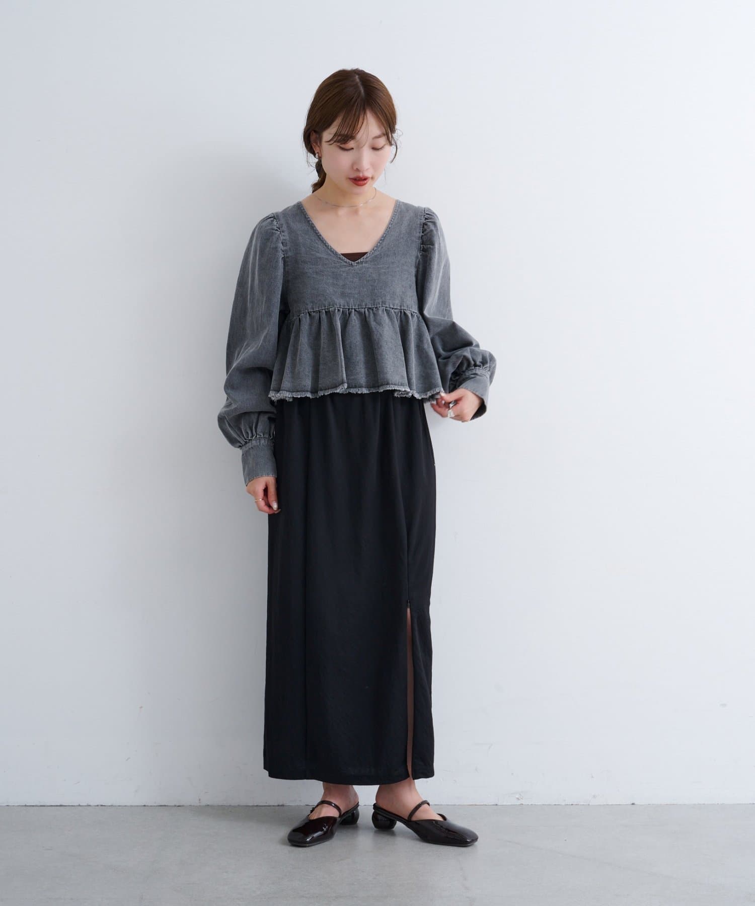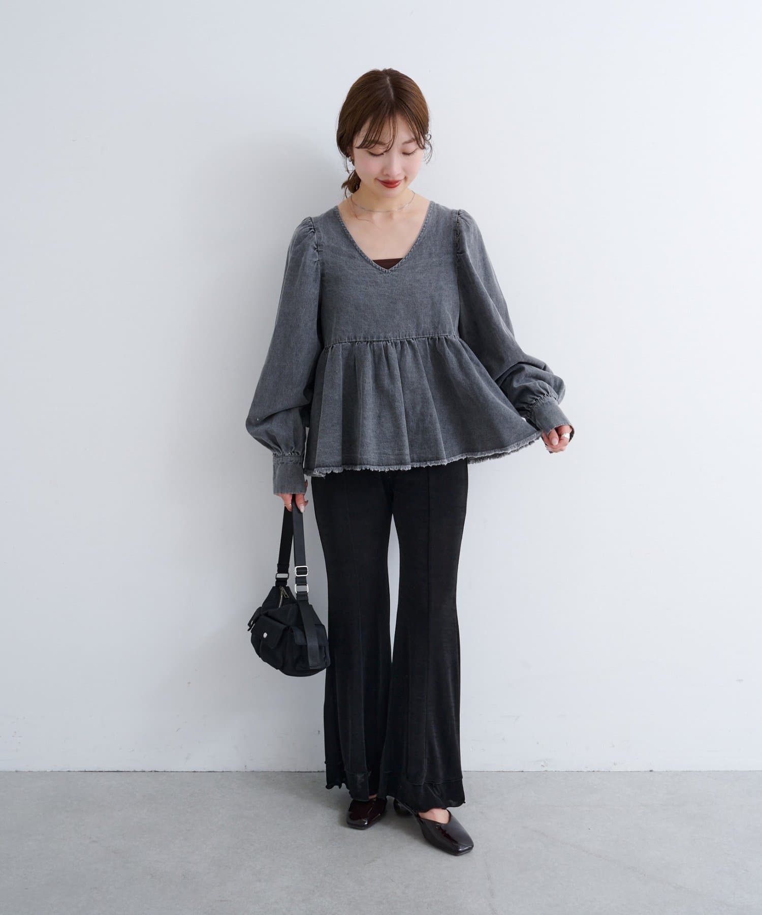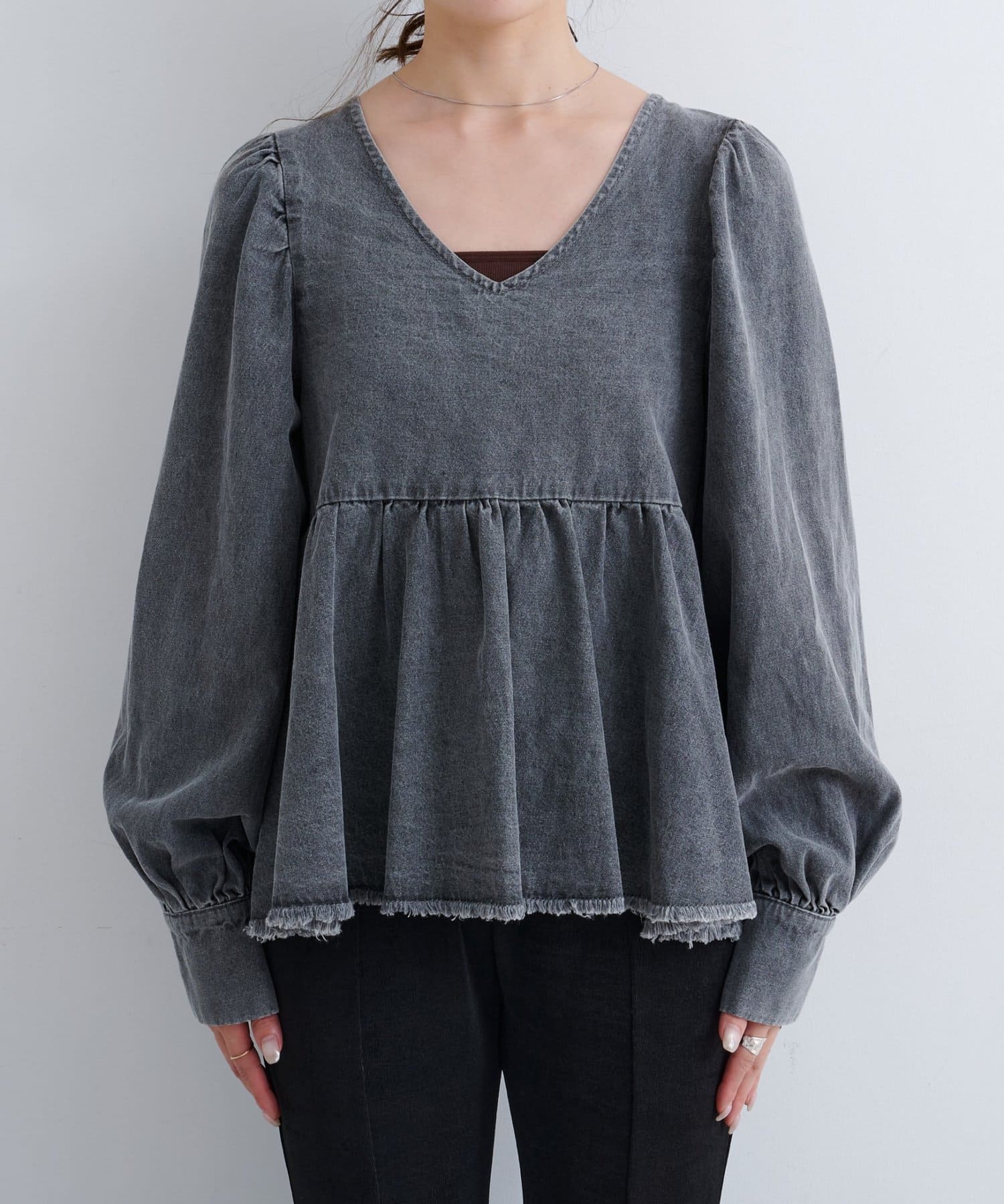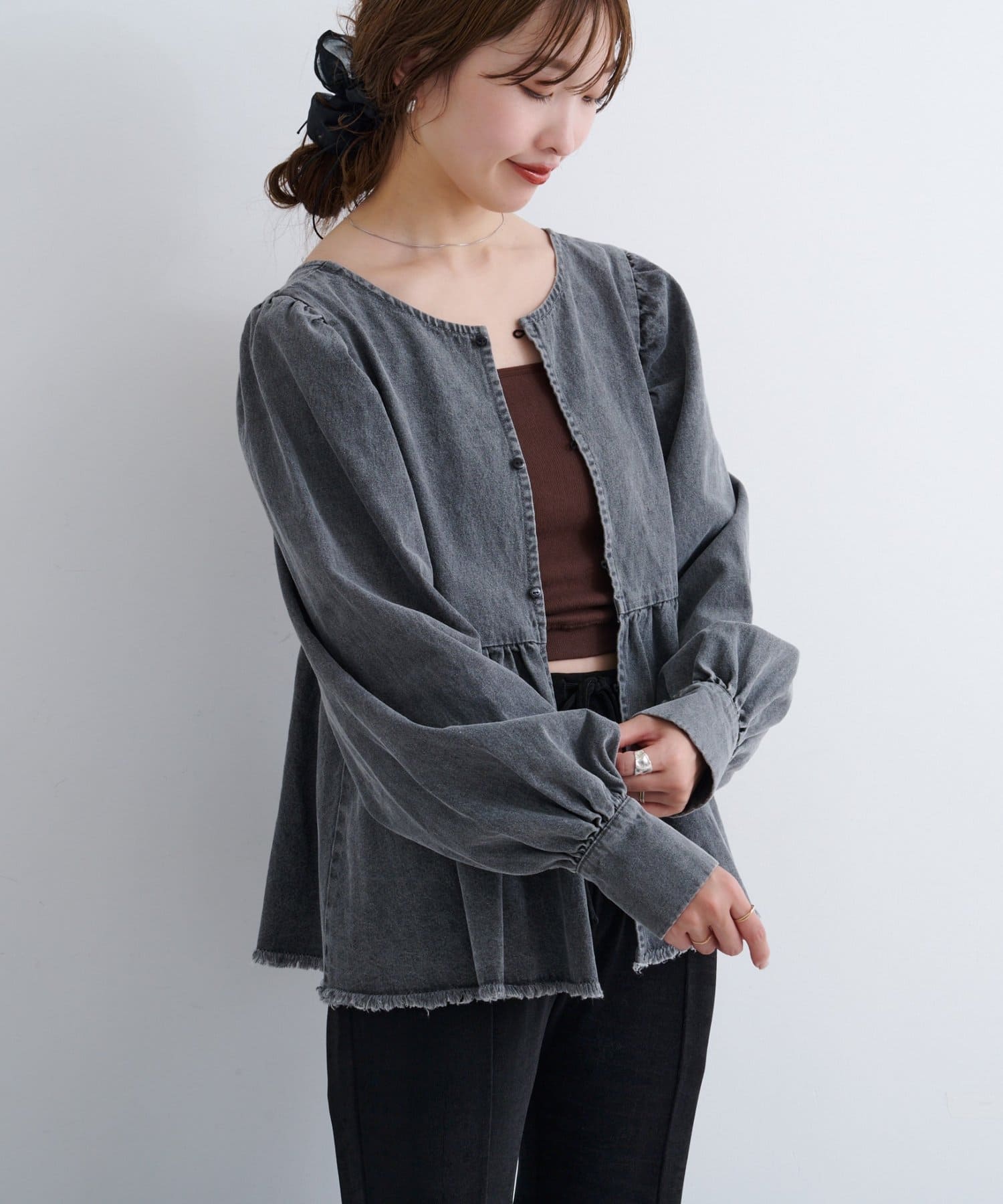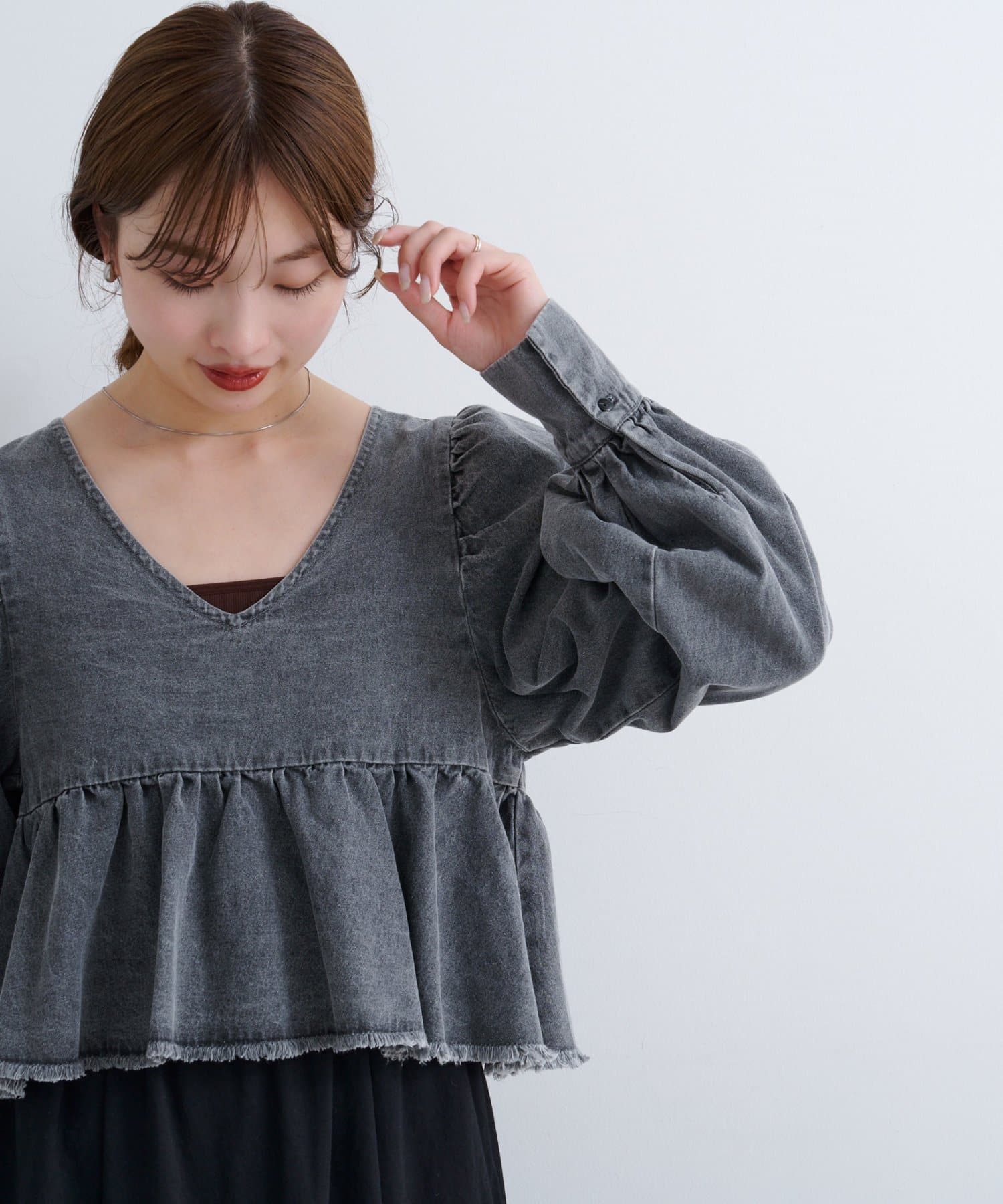 着こなし広がる、ふんわりシルエットの2WAYデニムブラウス
