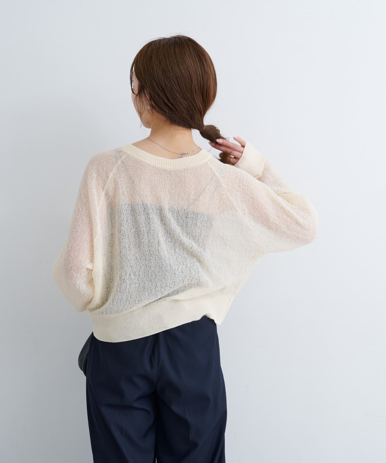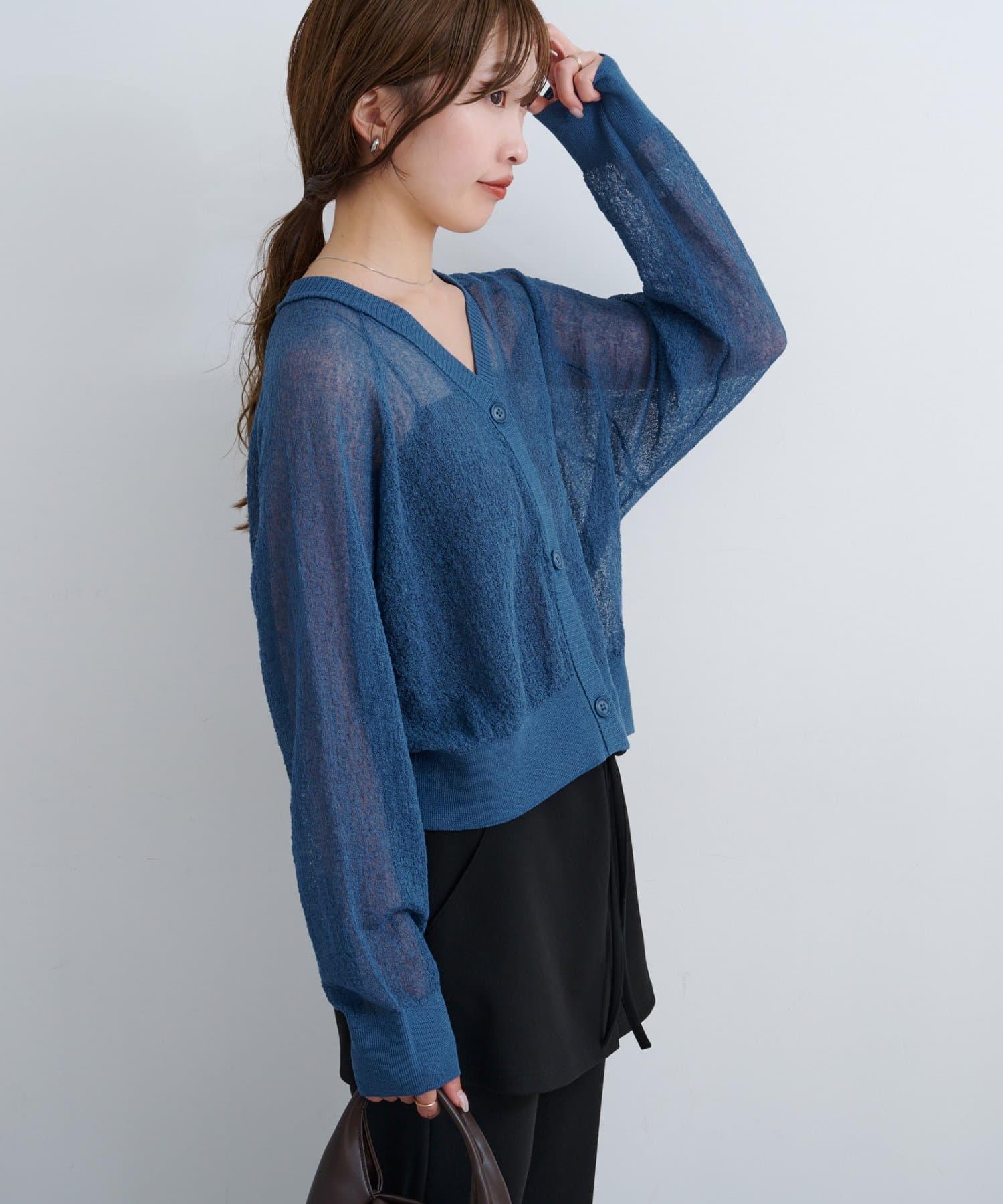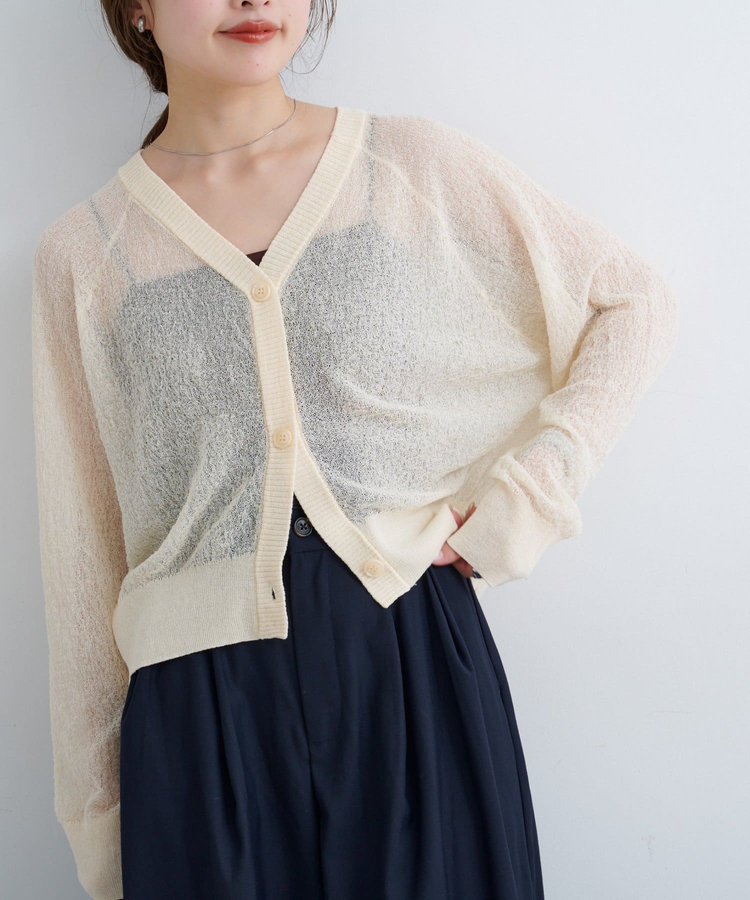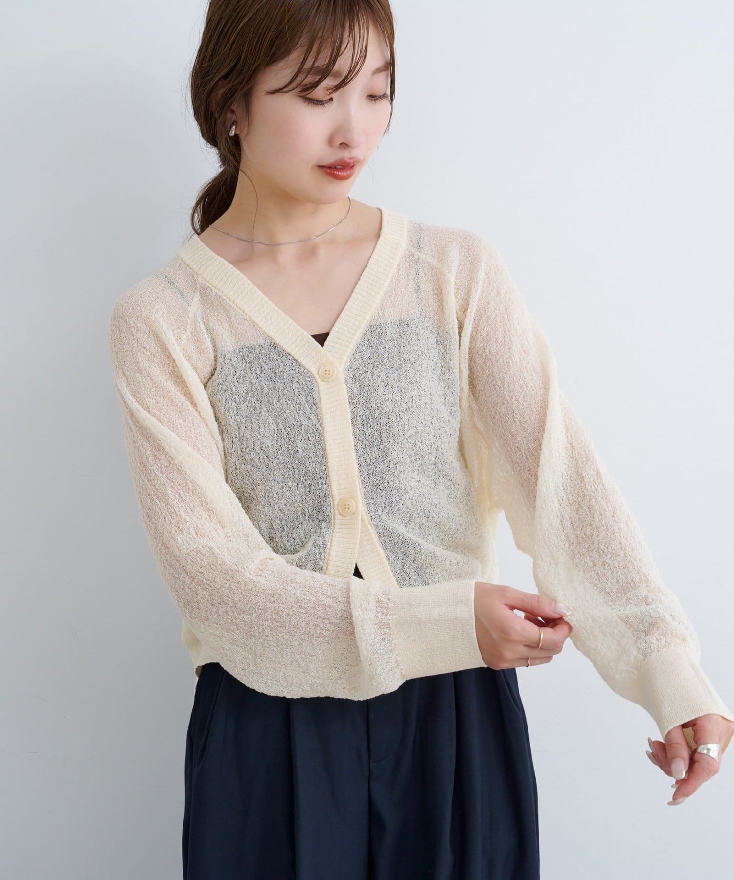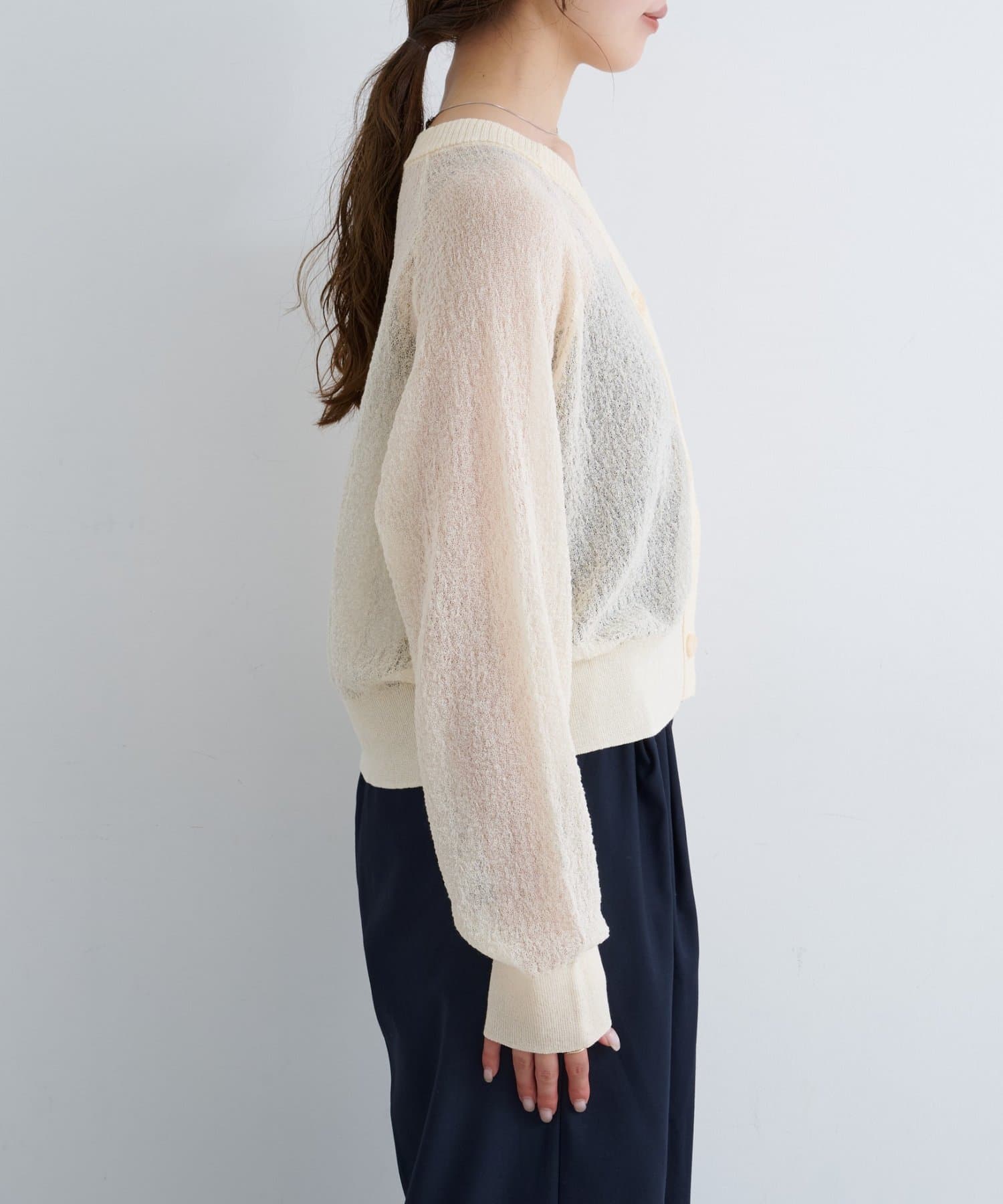 軽やかな透け感が魅力のシアーブークレカーディガン。