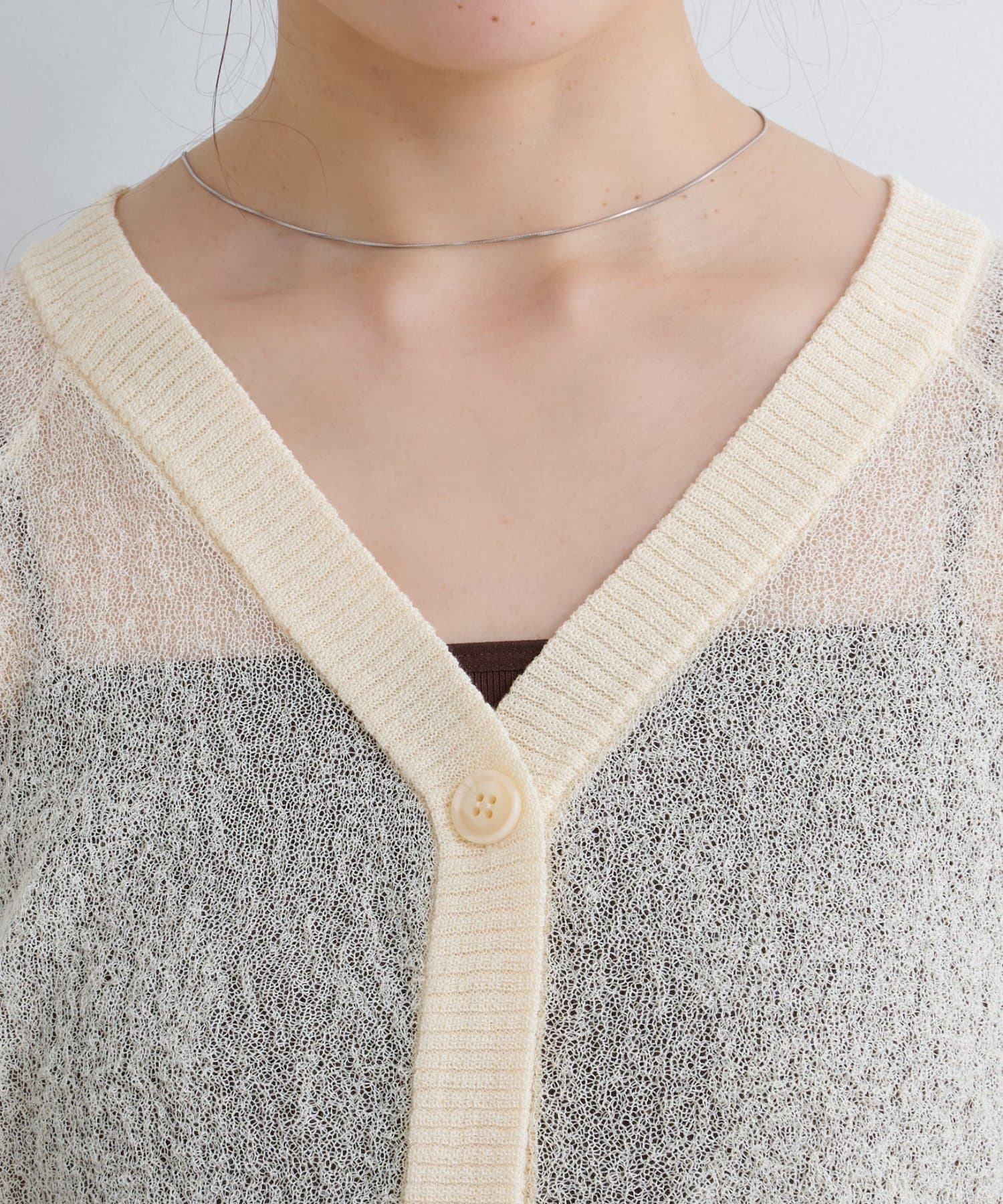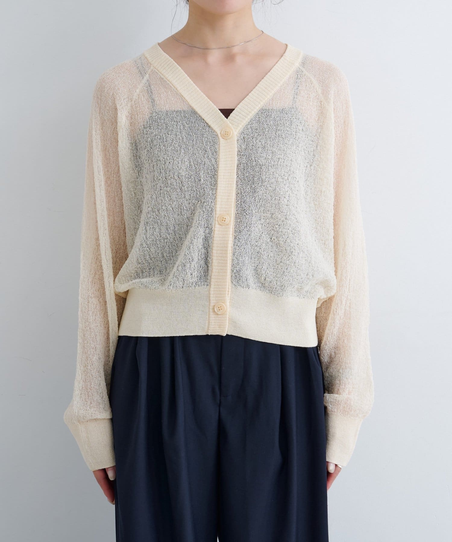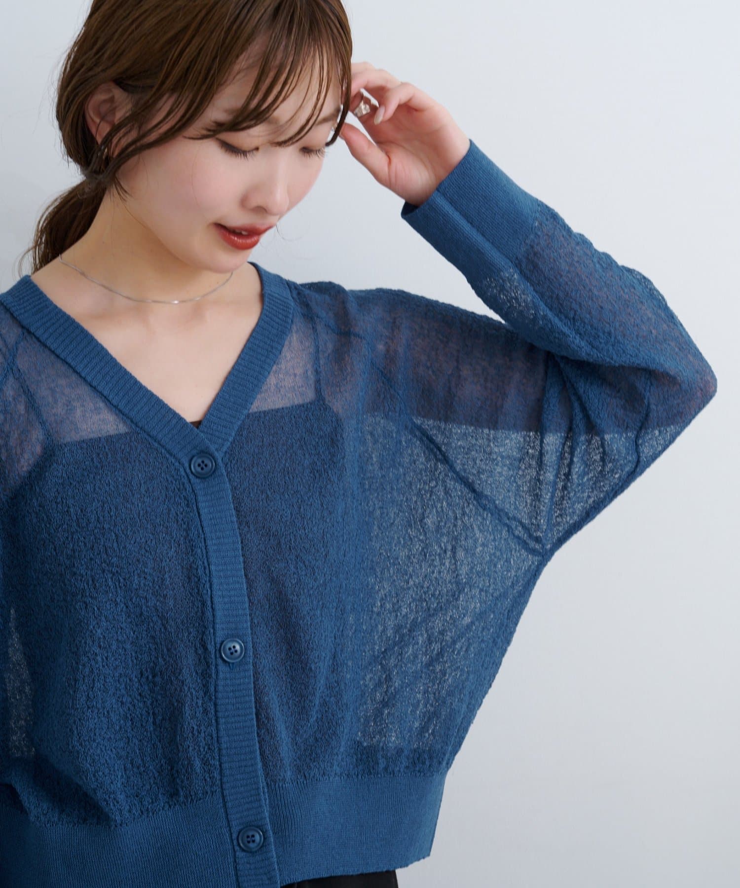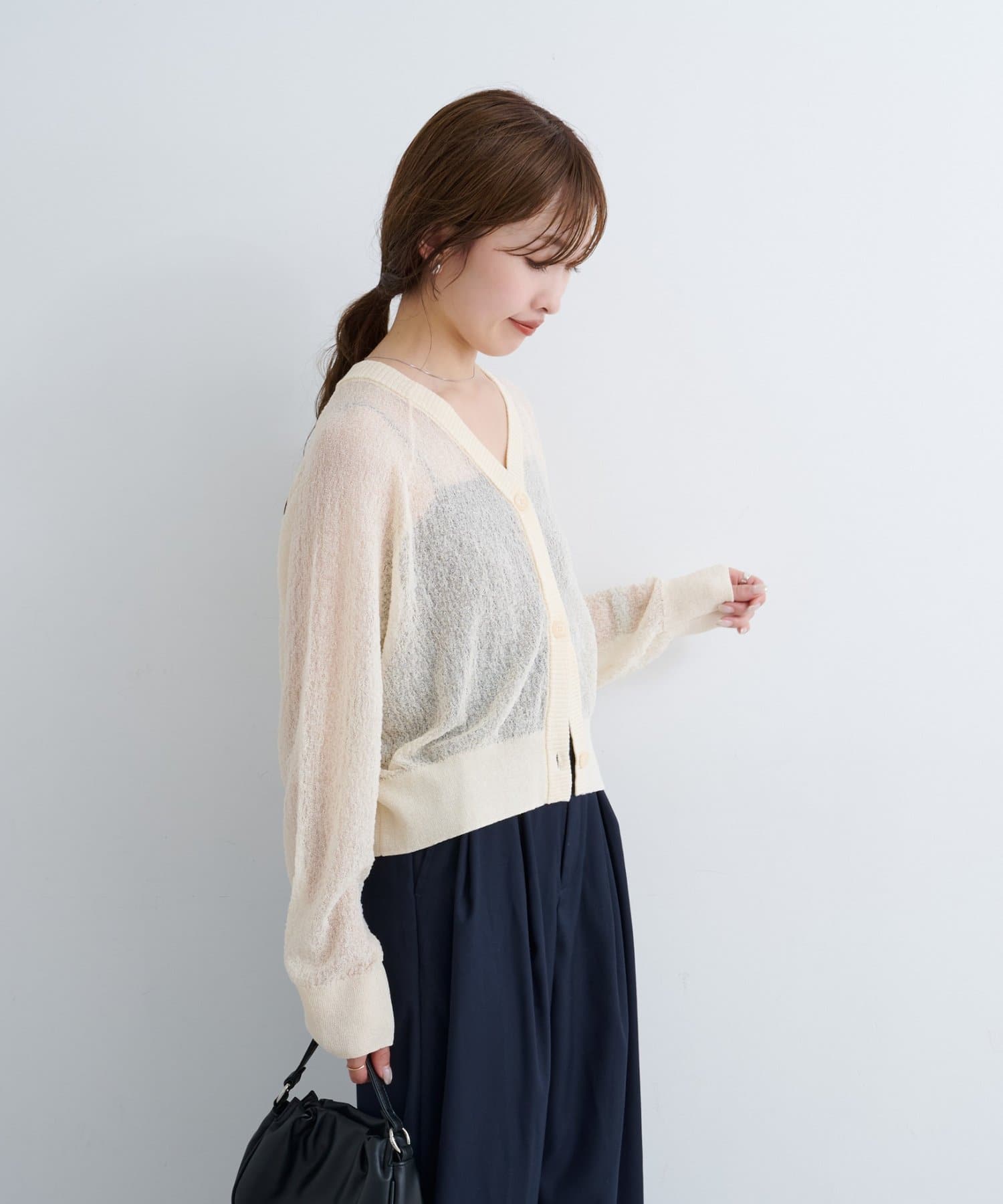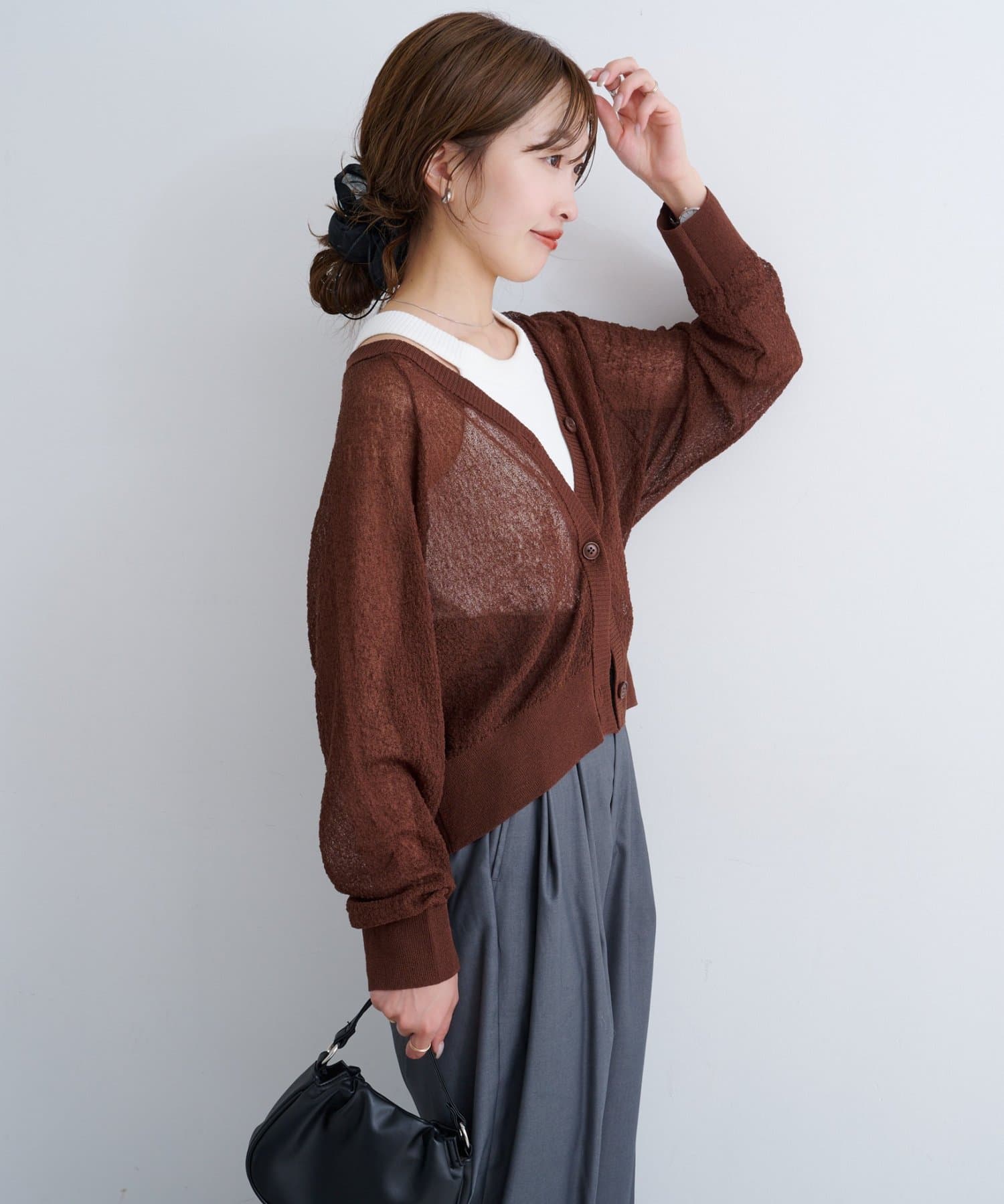 軽やかな透け感が魅力のシアーブークレカーディガン。
