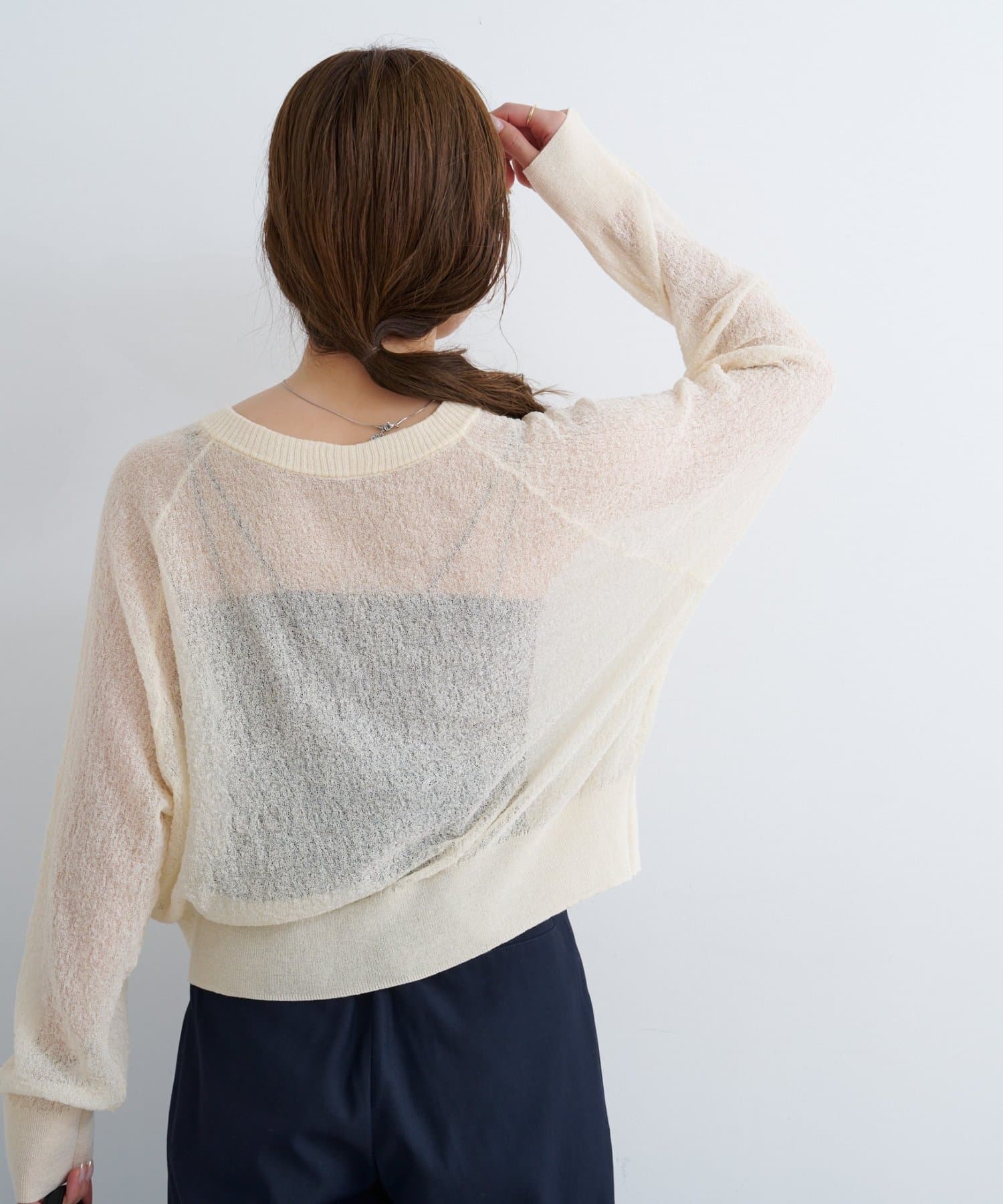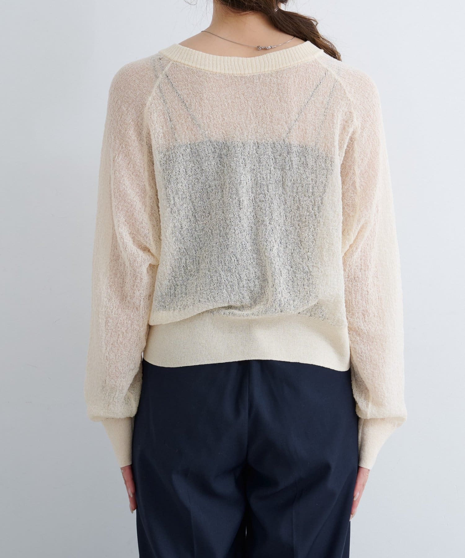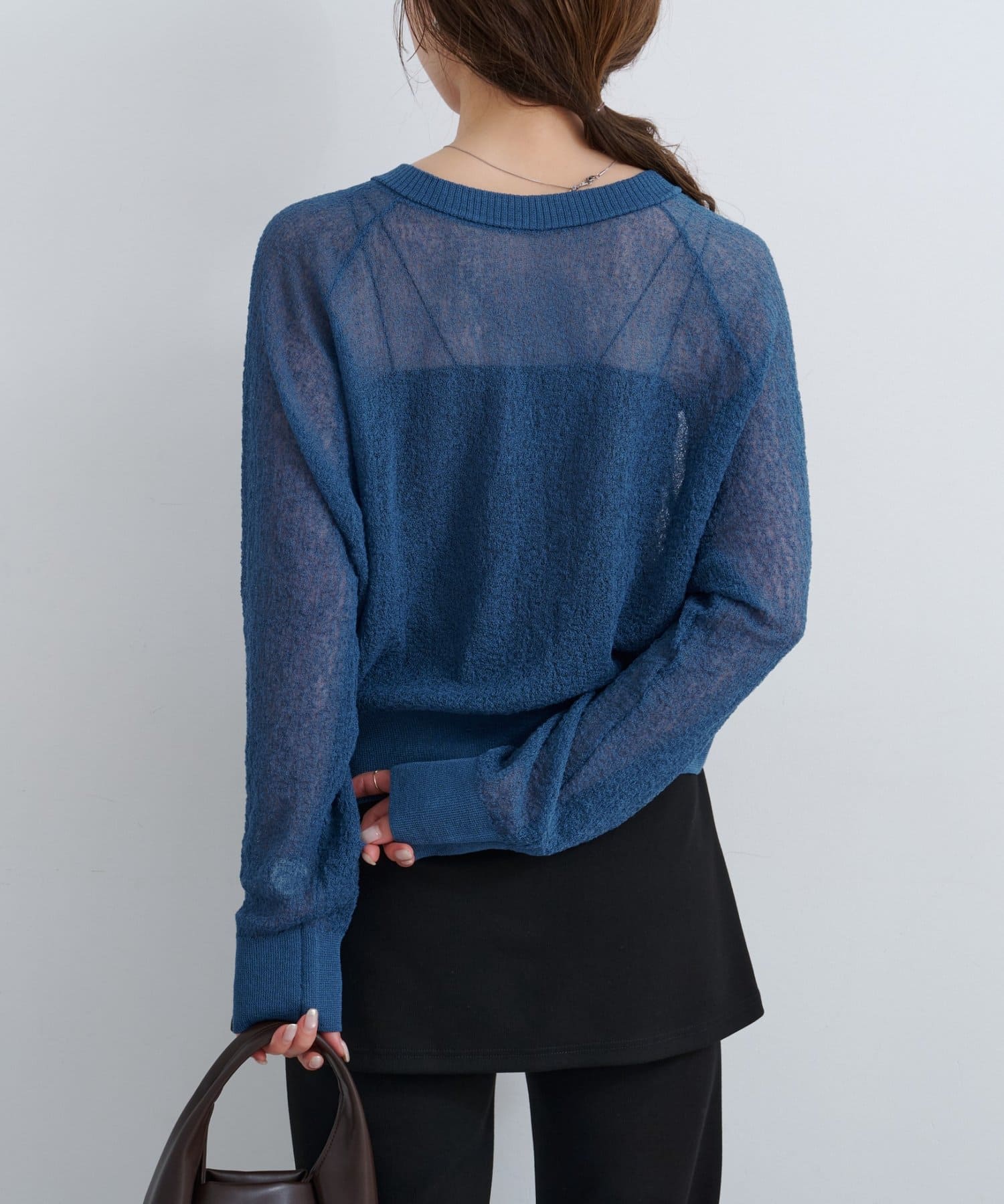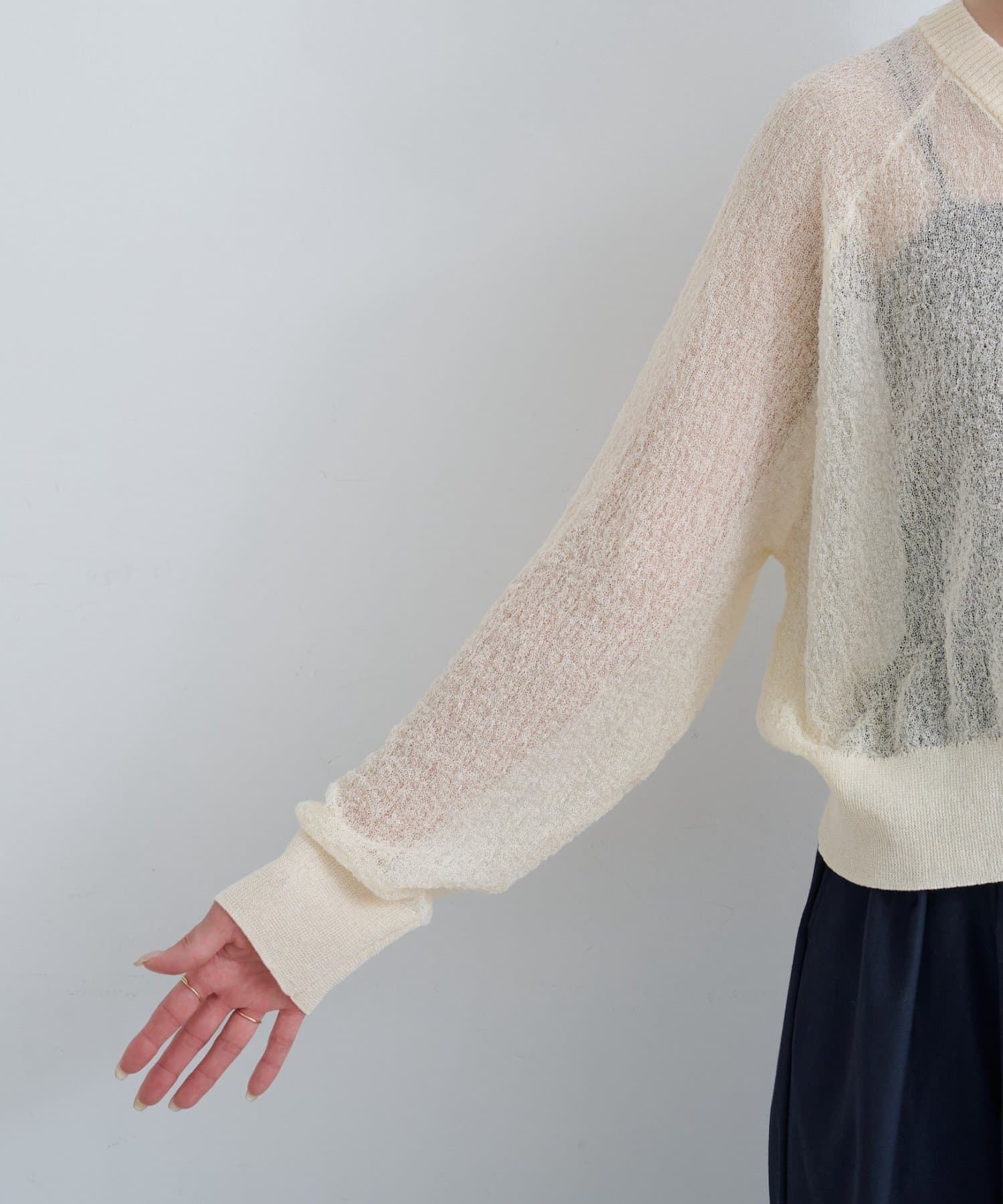 透け感のあるシアー素材に、ふんわりとしたブークレの編地が特徴。