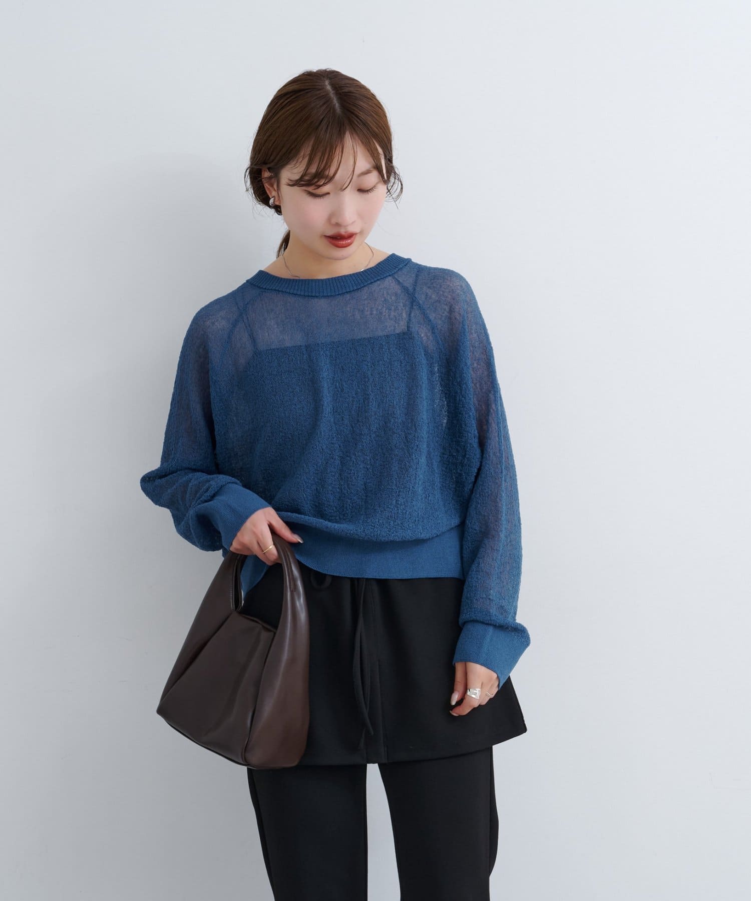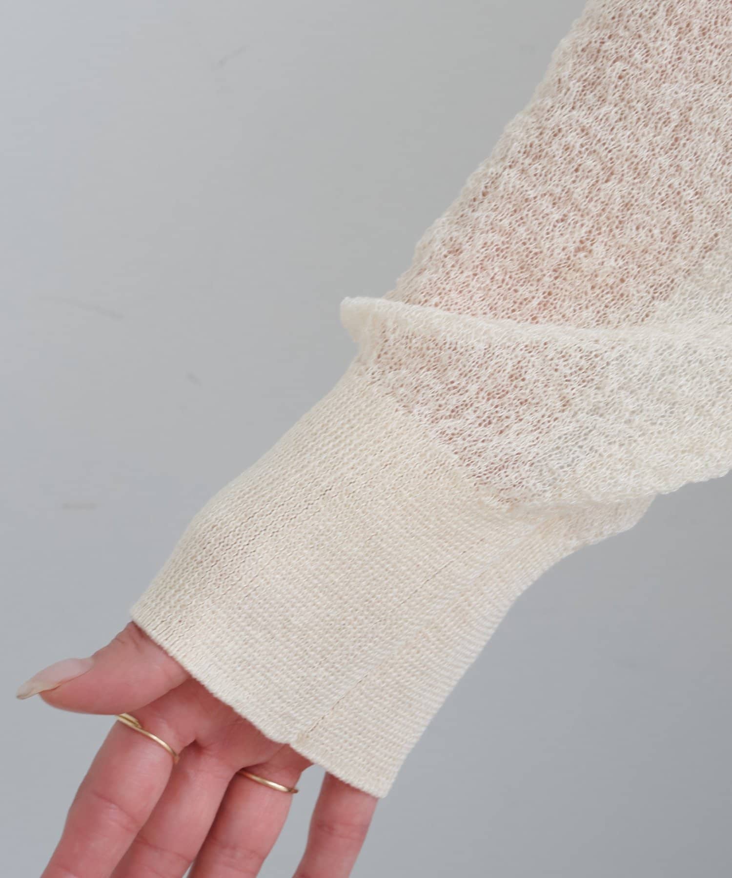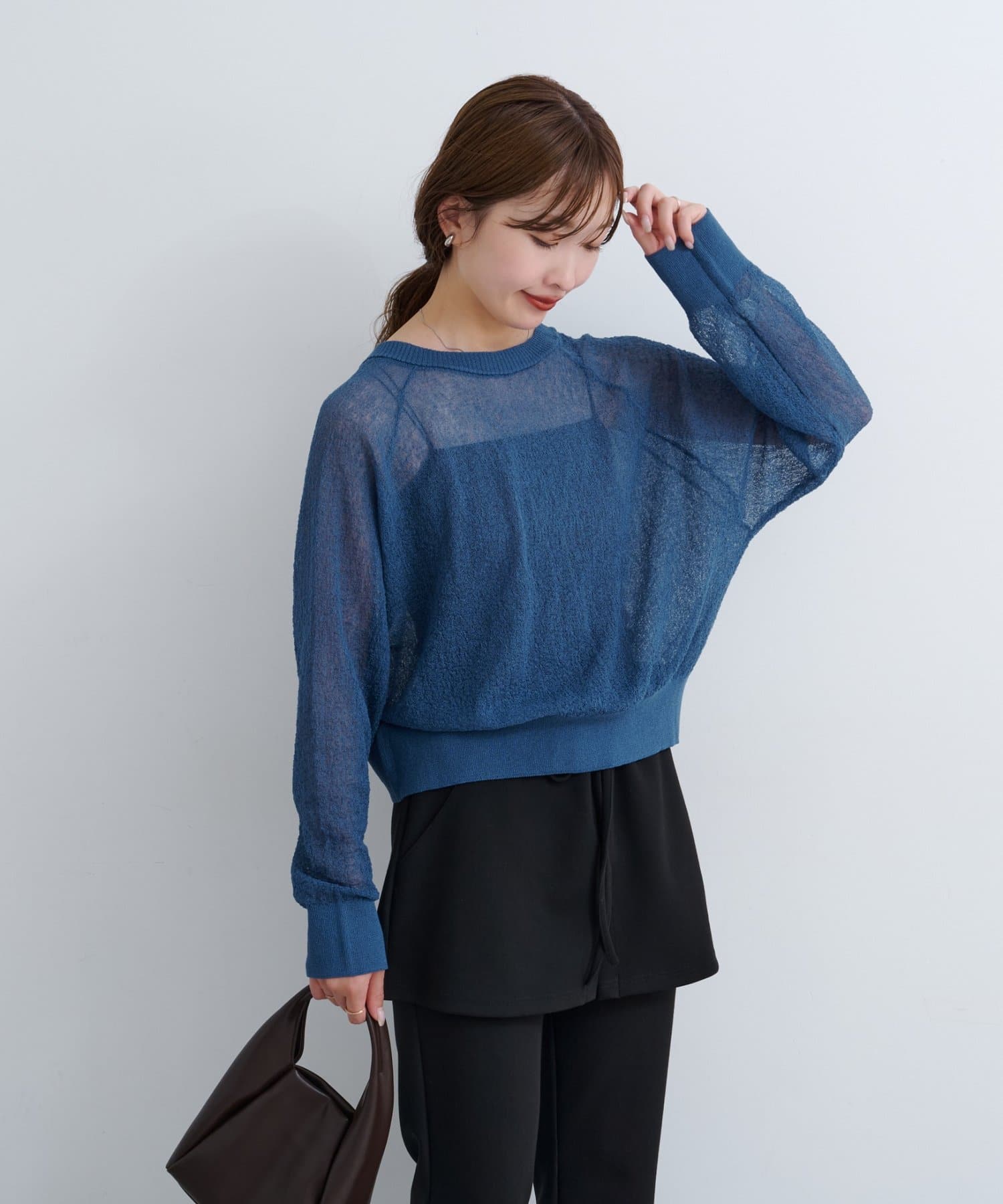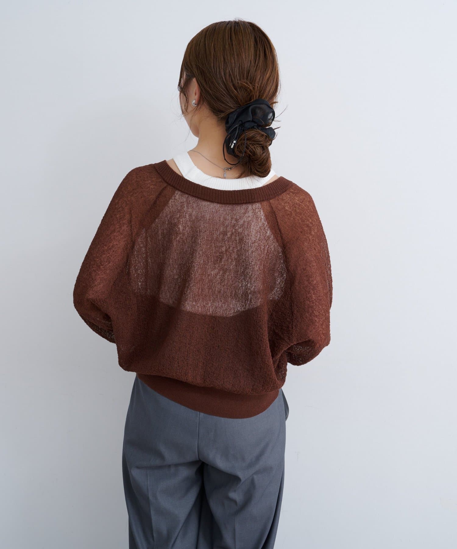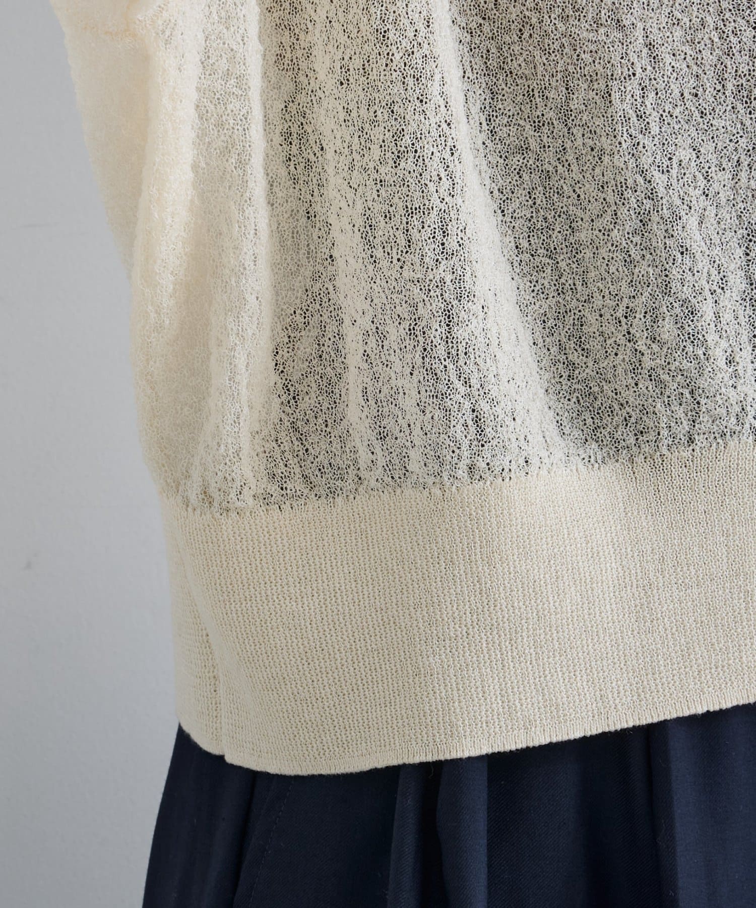 透け感のあるシアー素材に、ふんわりとしたブークレの編地が特徴。
