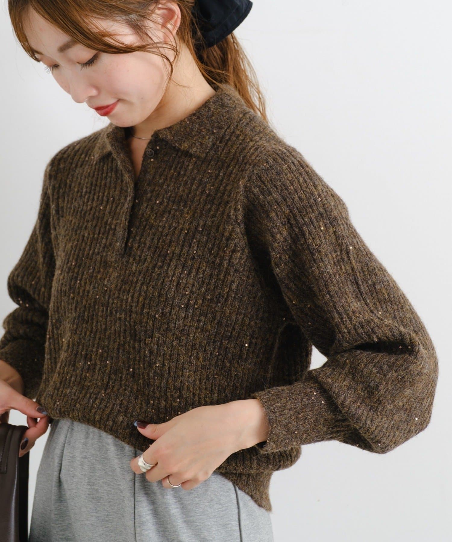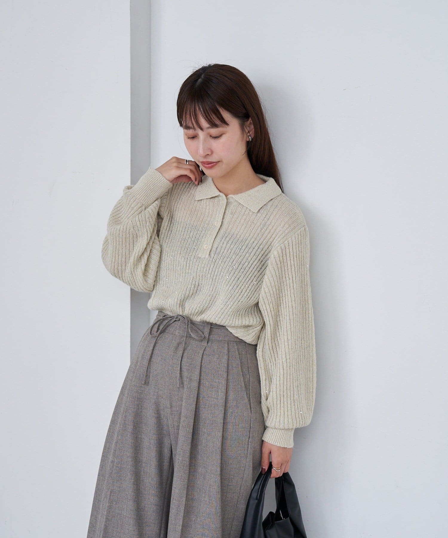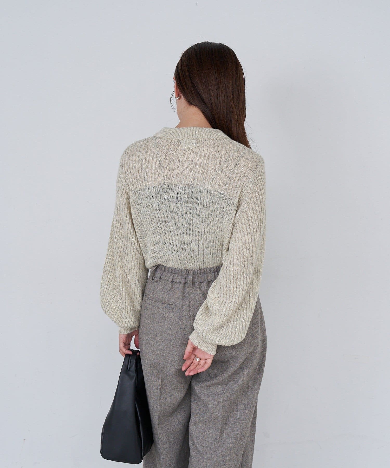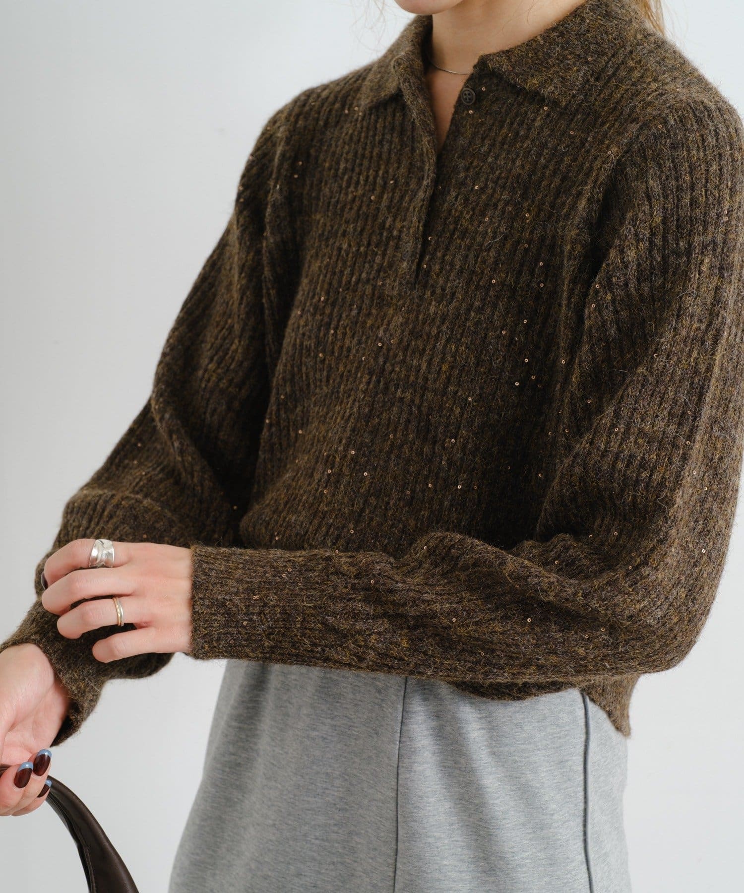 全体に繊細なスパンコールを散りばめた、さりげない煌めきが魅力のニットポロ。