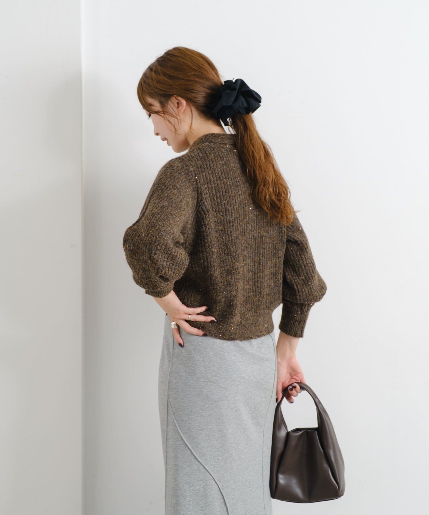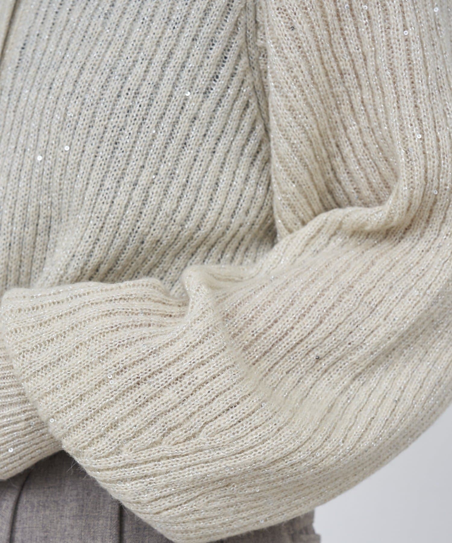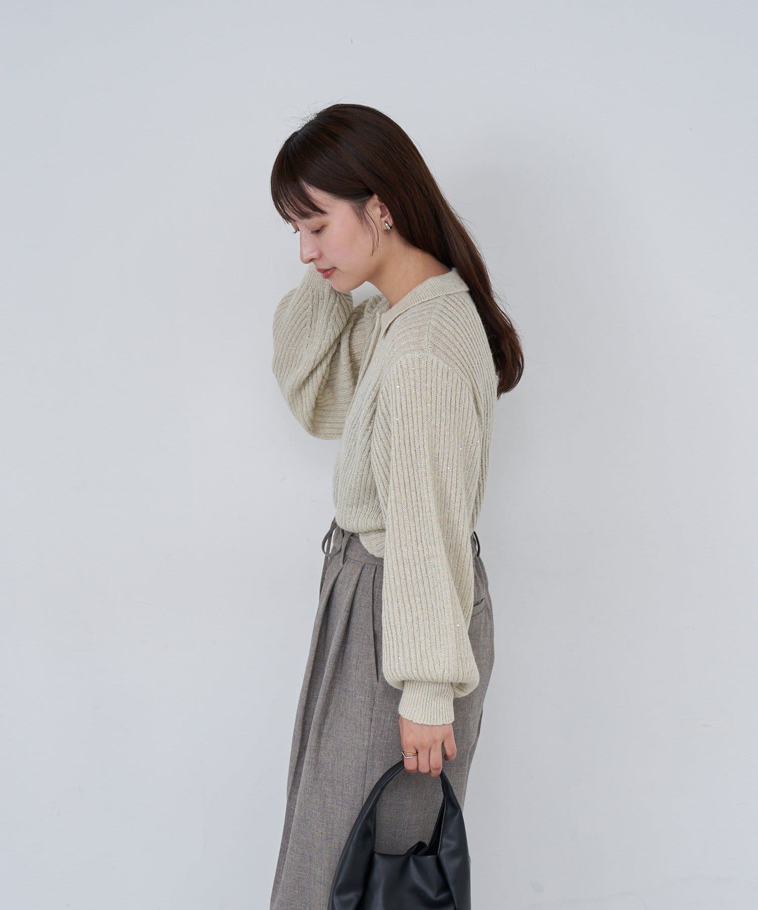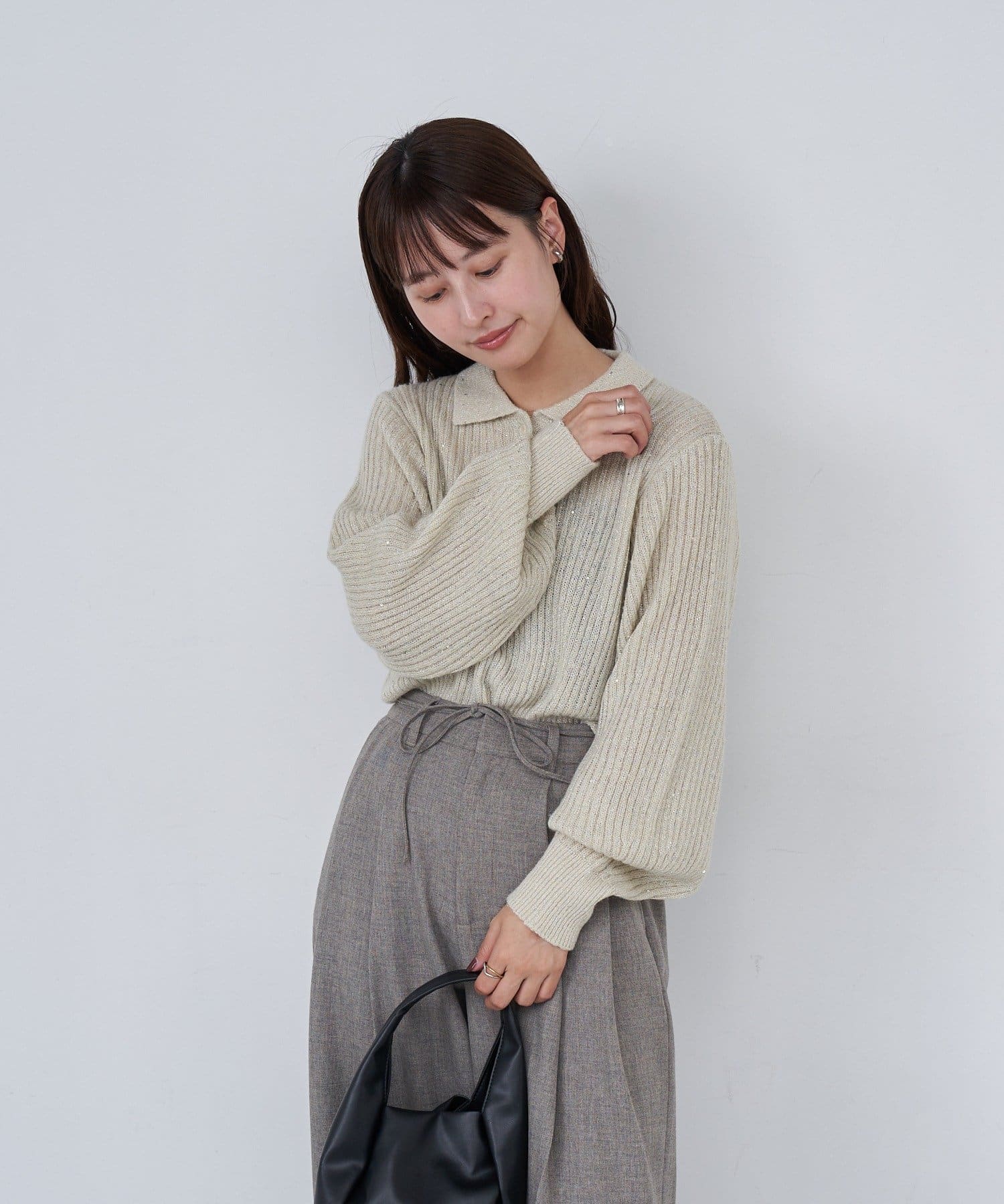 全体に繊細なスパンコールを散りばめた、さりげない煌めきが魅力のニットポロ。