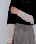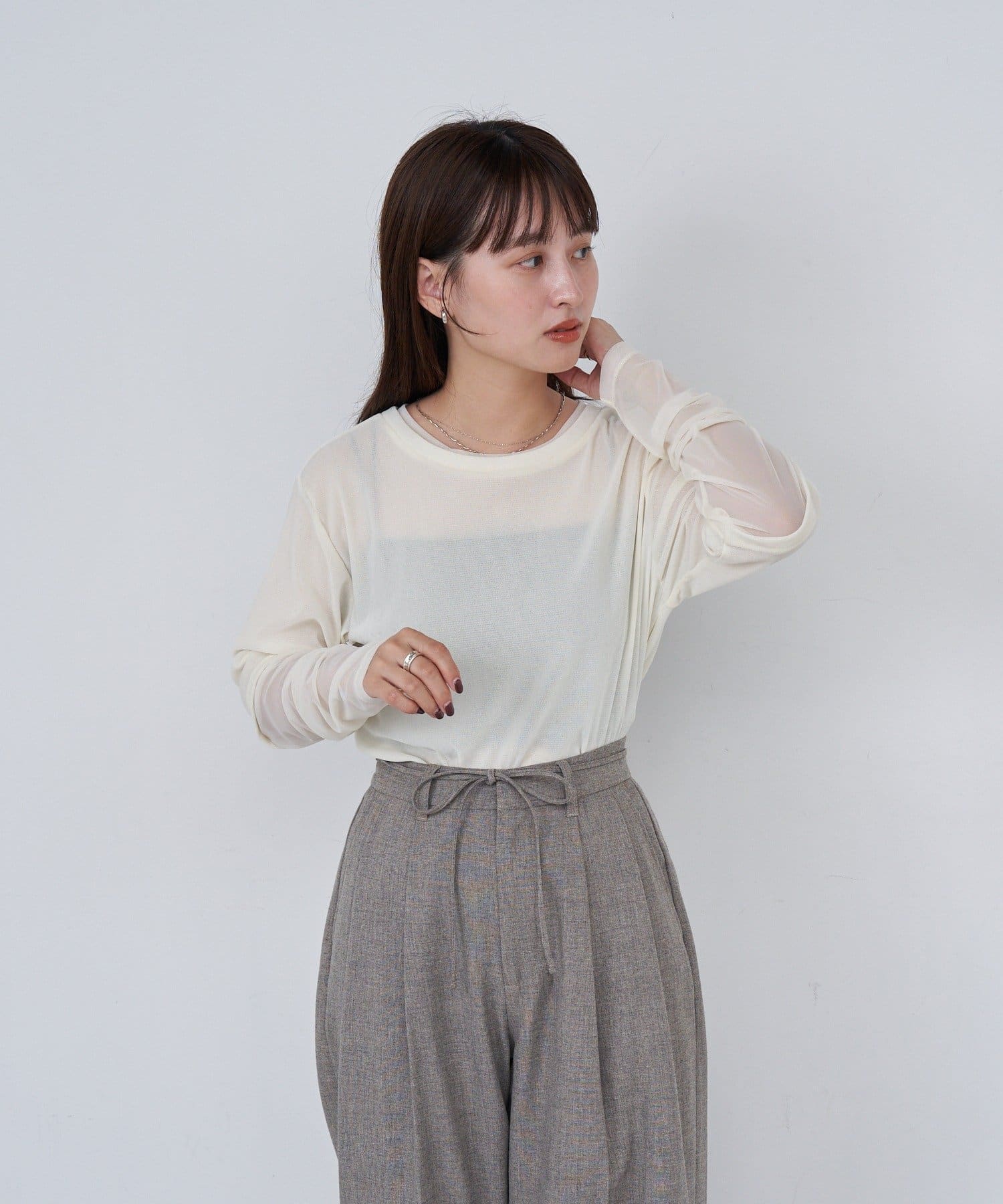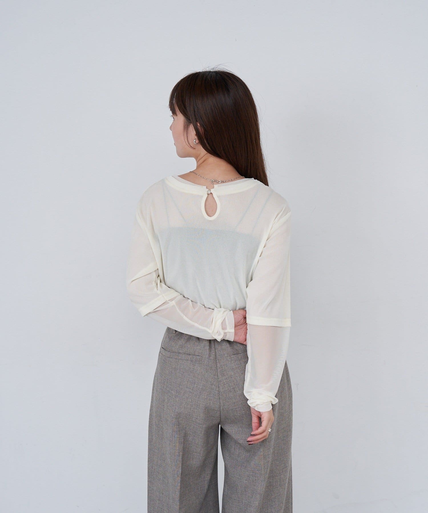 袖口とネック部分からのぞくシアーなインナー風ディテールが、一枚でこなれたレイヤードスタイルを演出します。