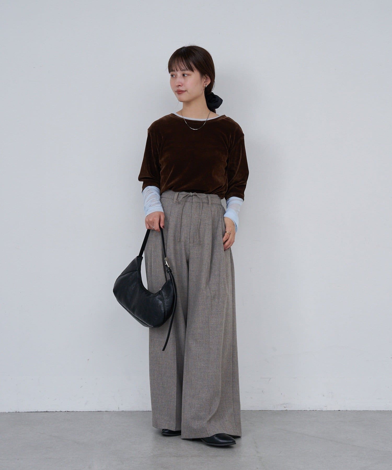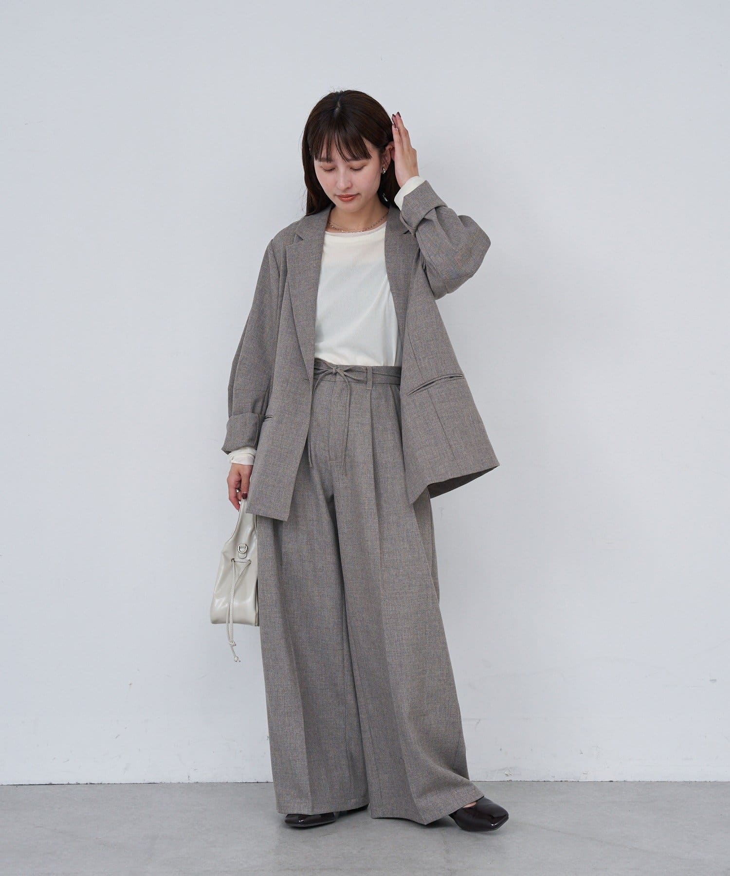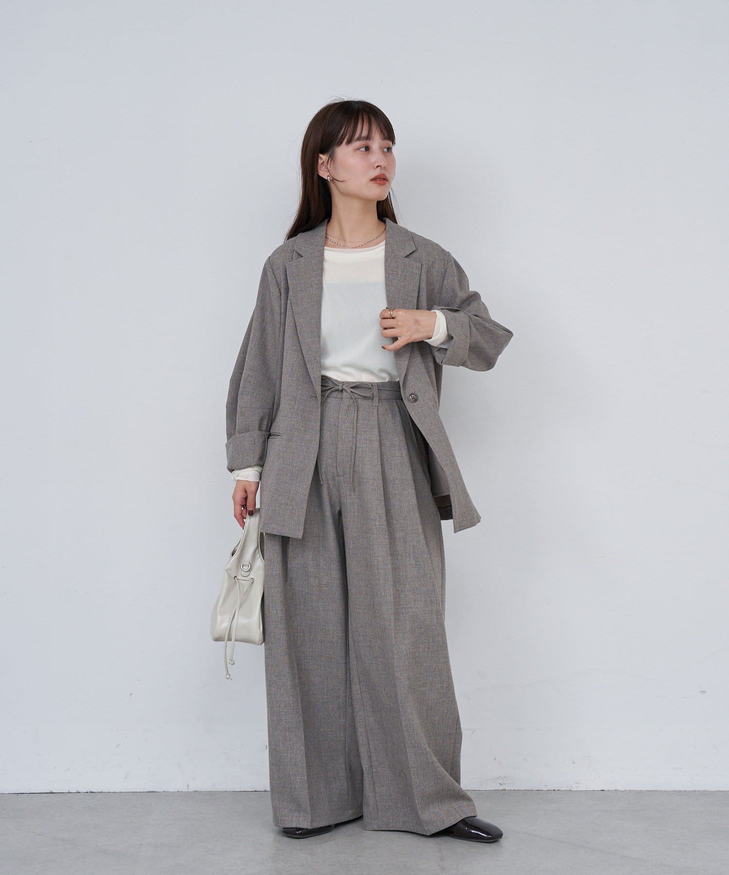 タックパンツやスラックスと合わせて、上品で知的な印象に。