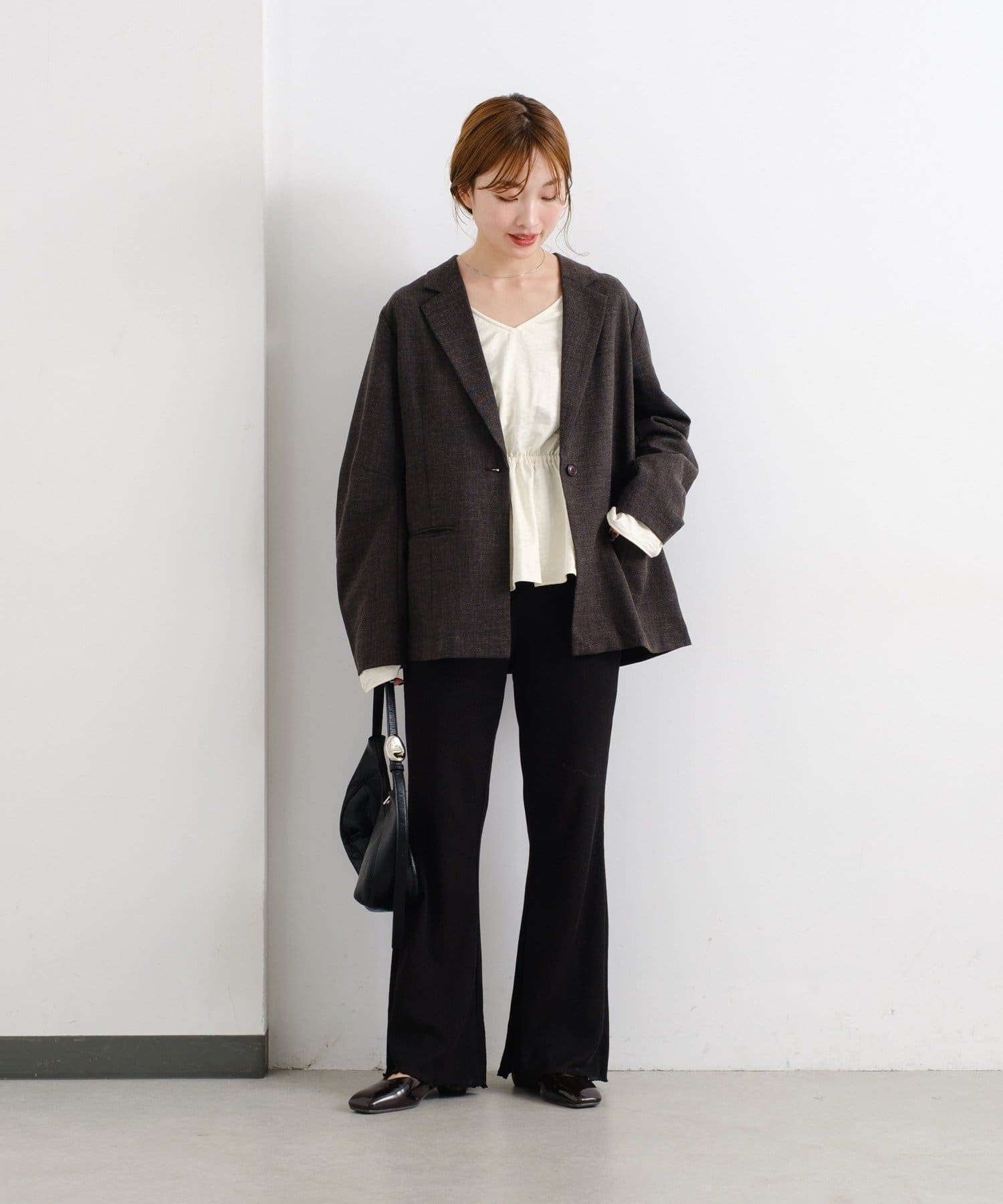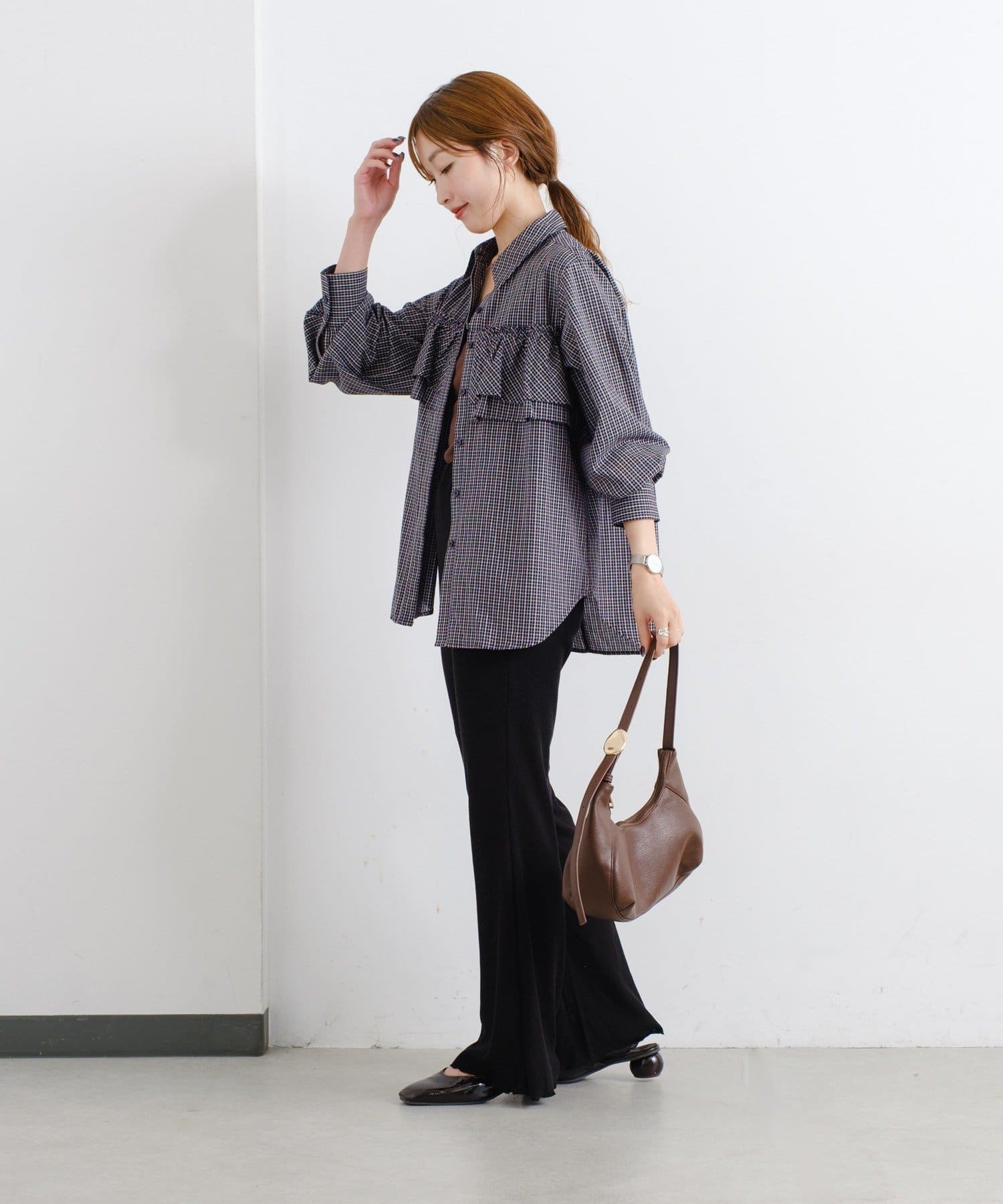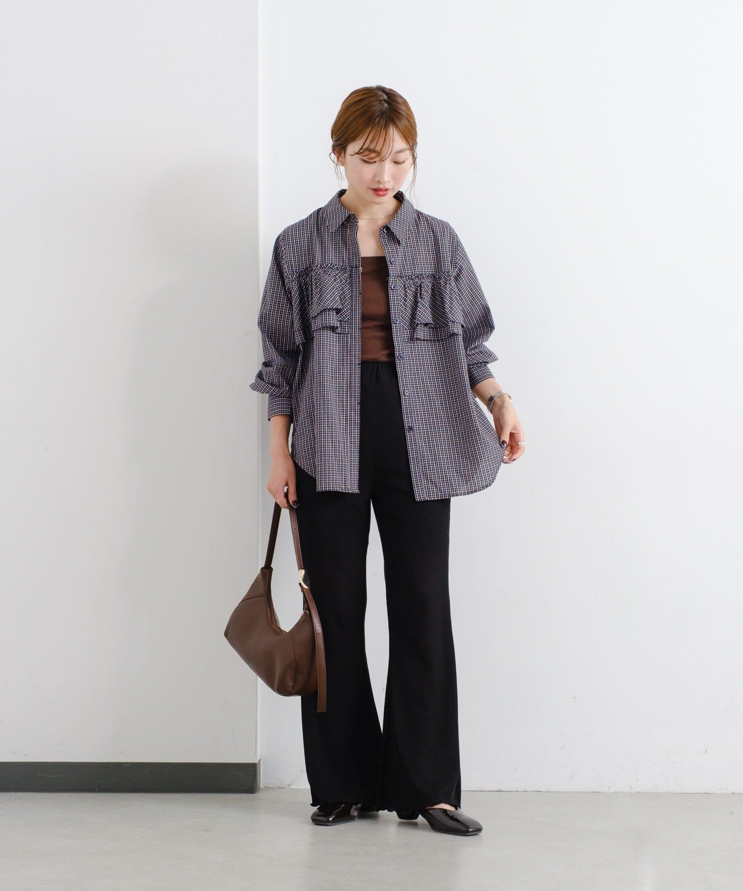 裾にかけて緩やかに広がるフレアシルエットが、脚長効果を演出してくれます。