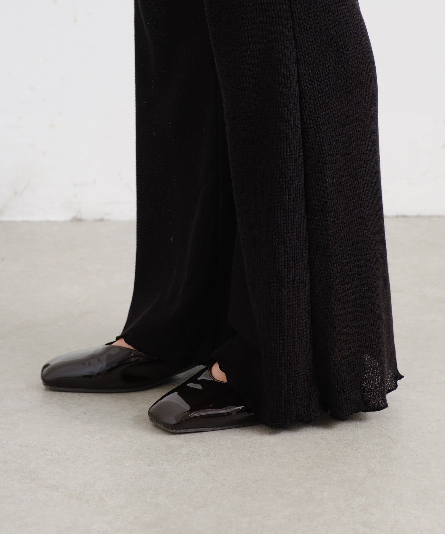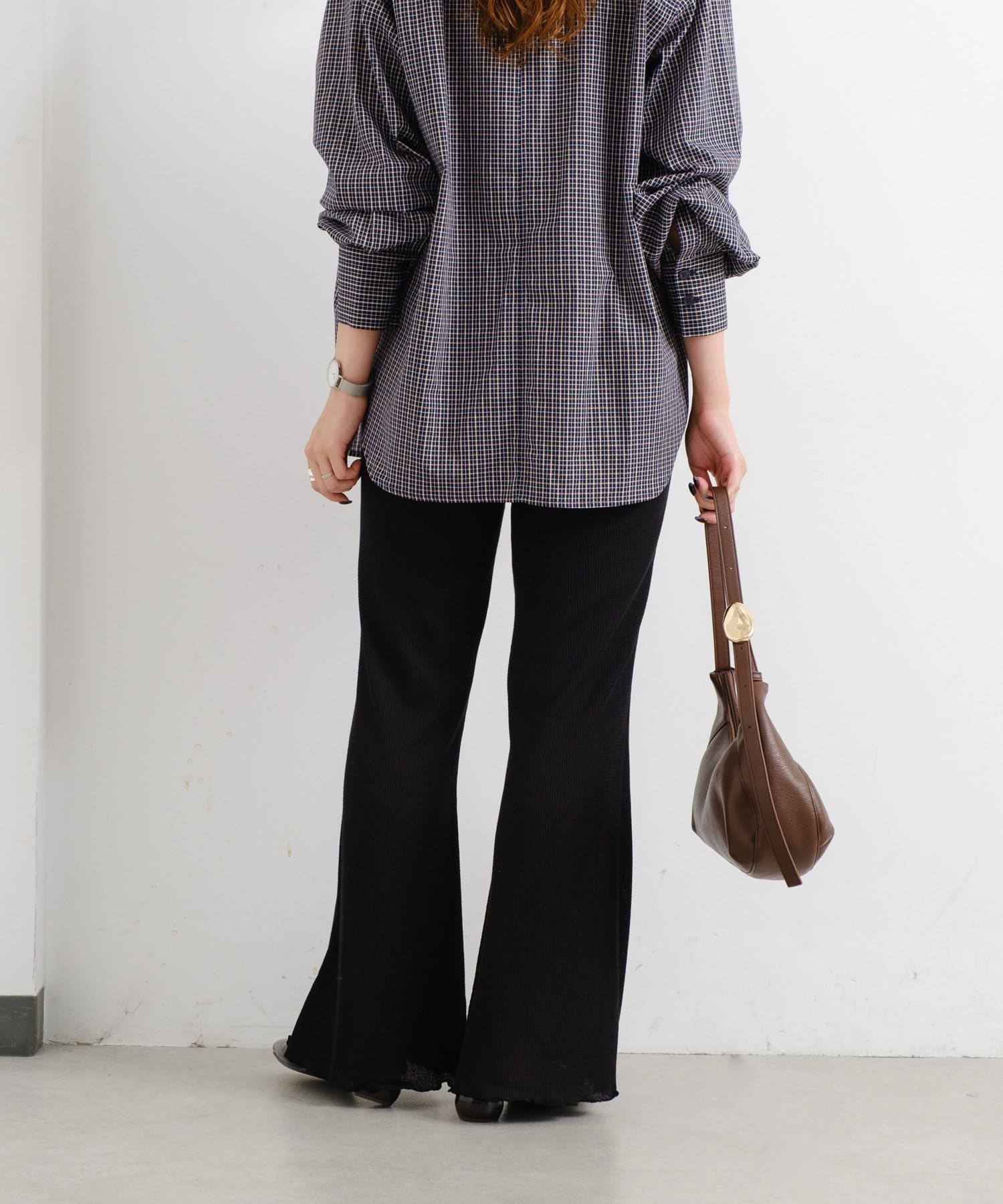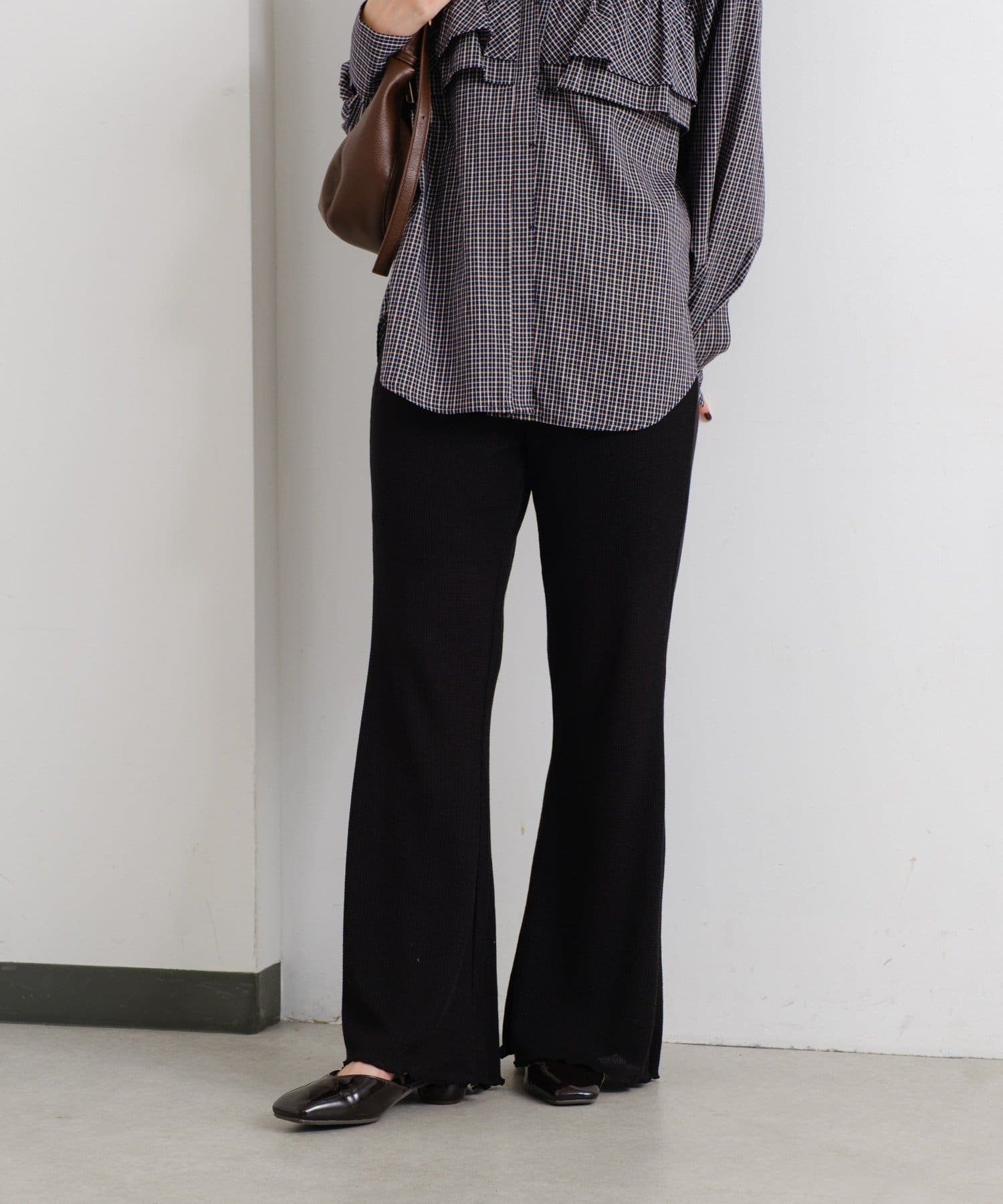 楽ちんさと女性らしさを兼ね備えたワッフル素材のフレアパンツ。