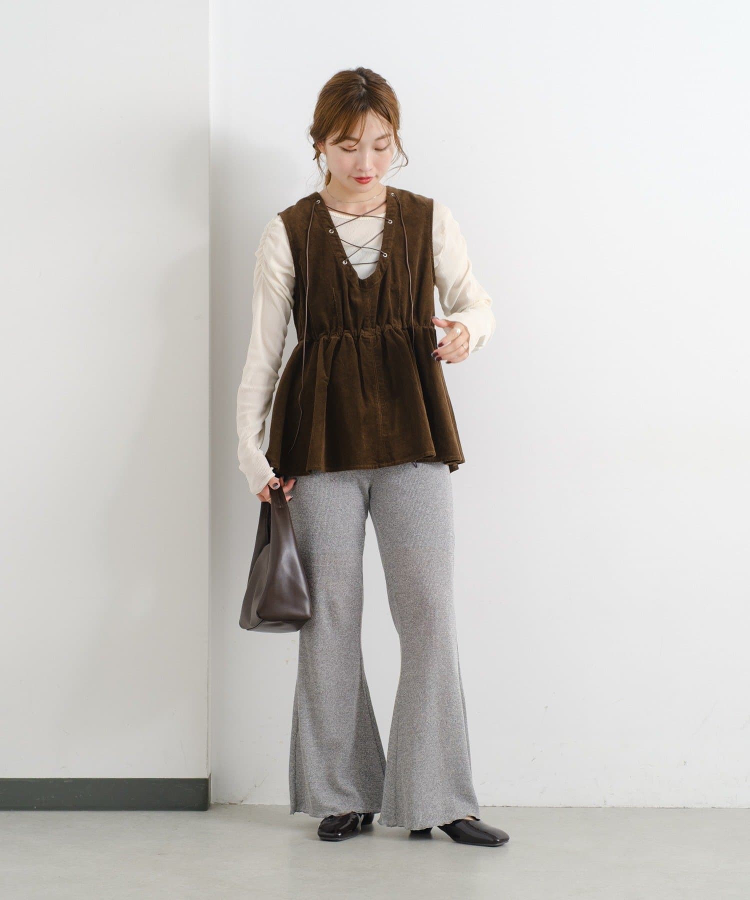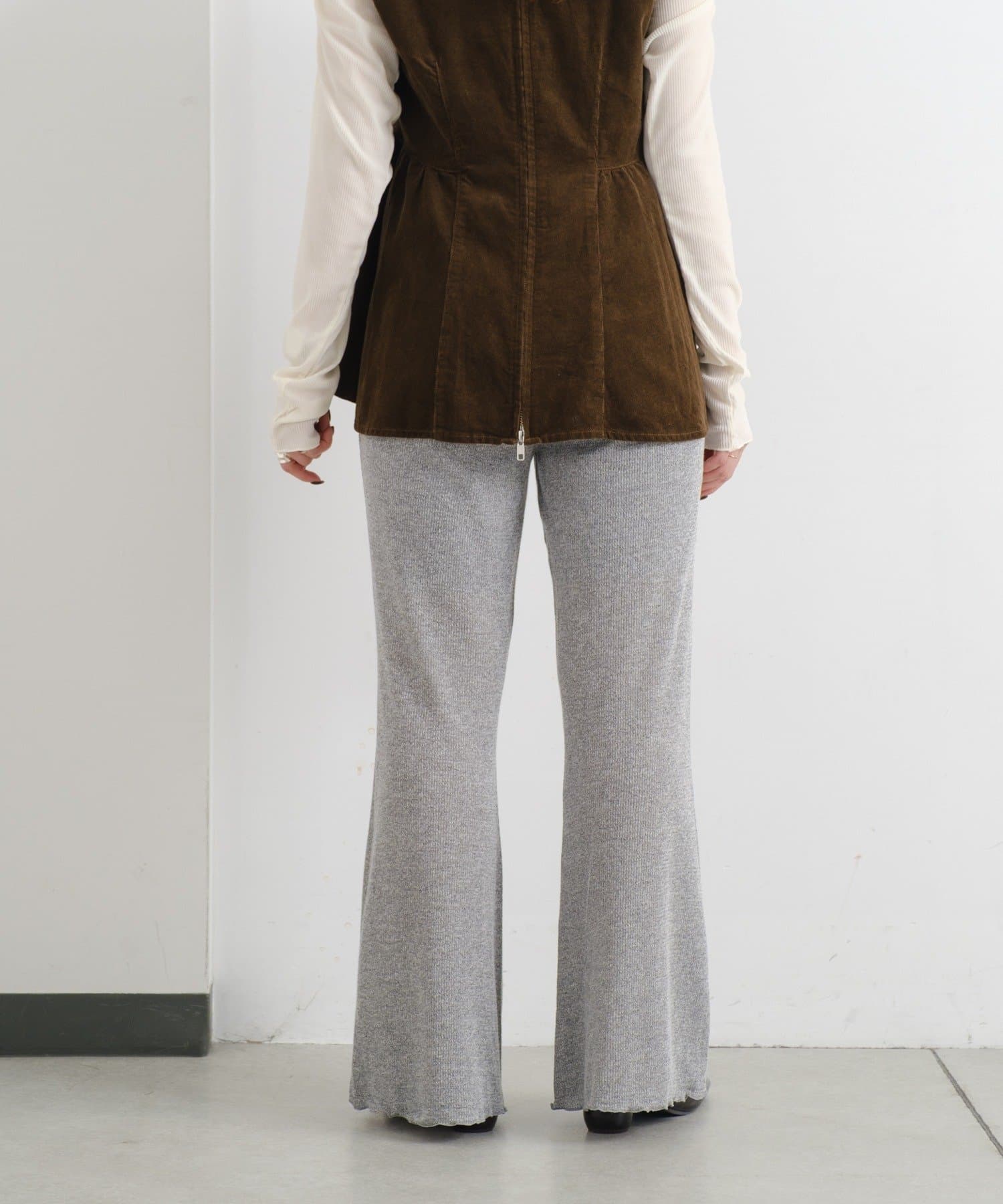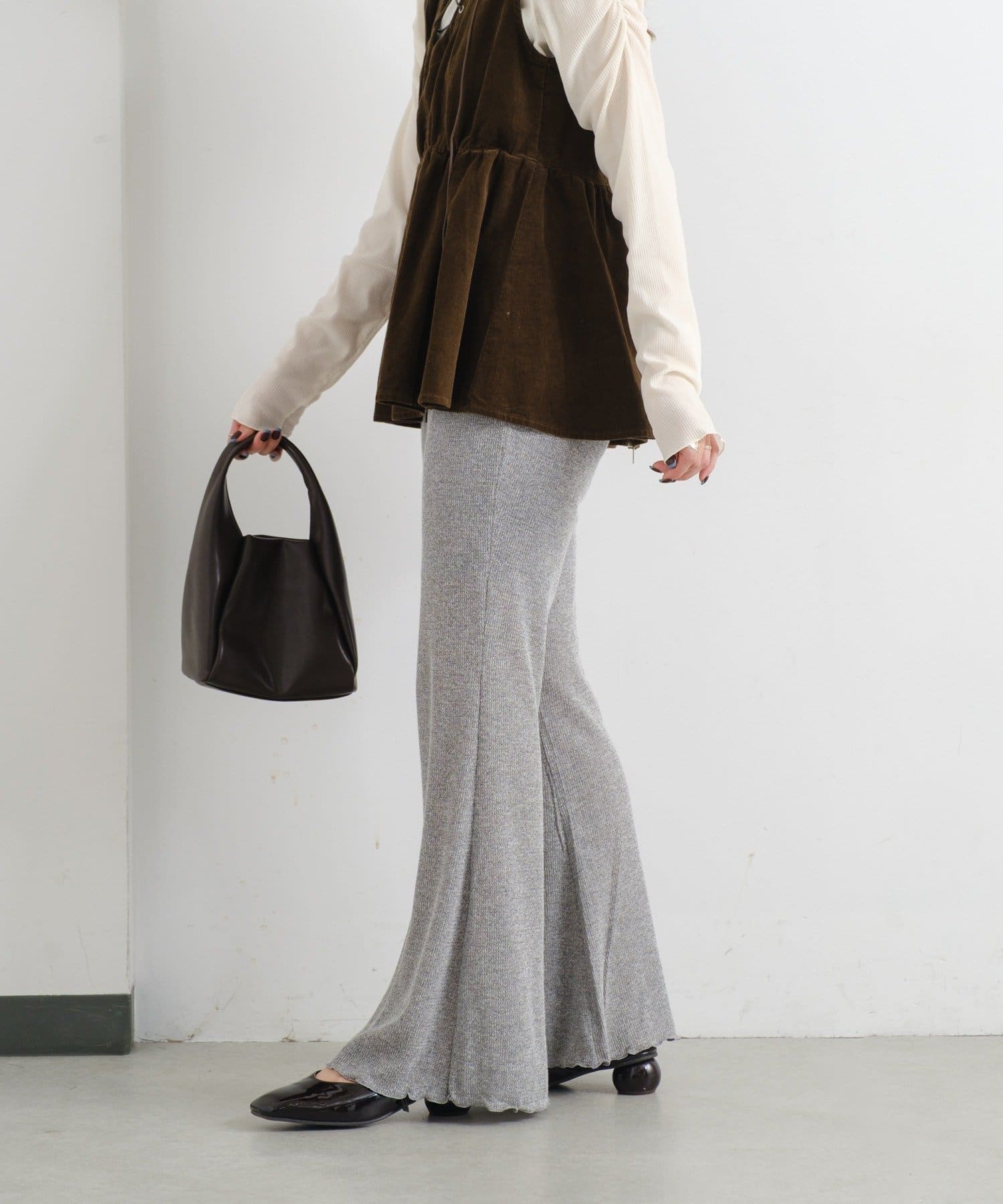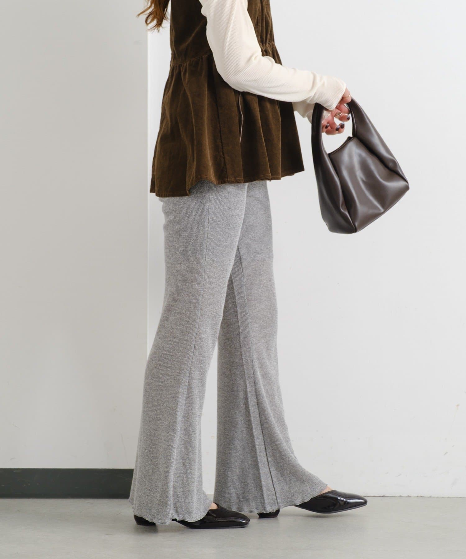 楽ちんさと女性らしさを兼ね備えたワッフル素材のフレアパンツ。