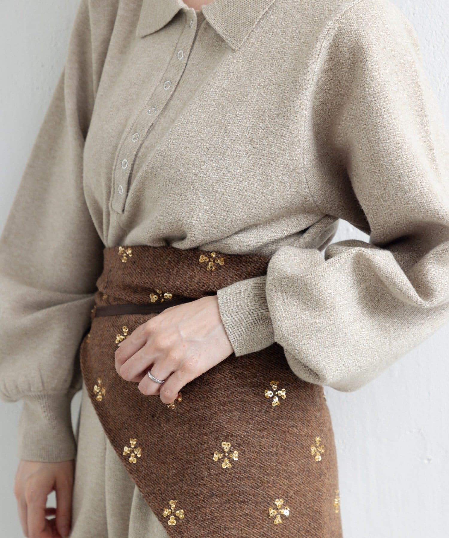 なめらかな編地が身体のラインを優しく包み込み、リラクシーながら上品な印象を演出します。