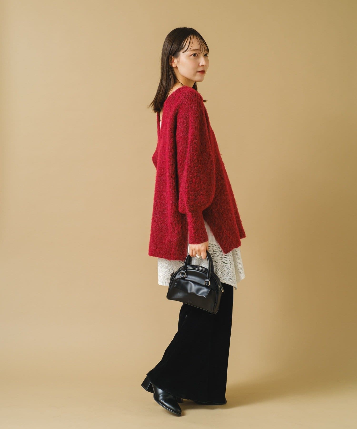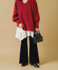 オーバーサイズのニットやスウェット、ワンピースとのレイヤードスタイルがおススメ。