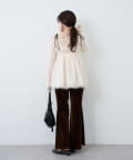 膝周りは少しタイトに仕上げ、裾に向かって広がるフレアシルエット。