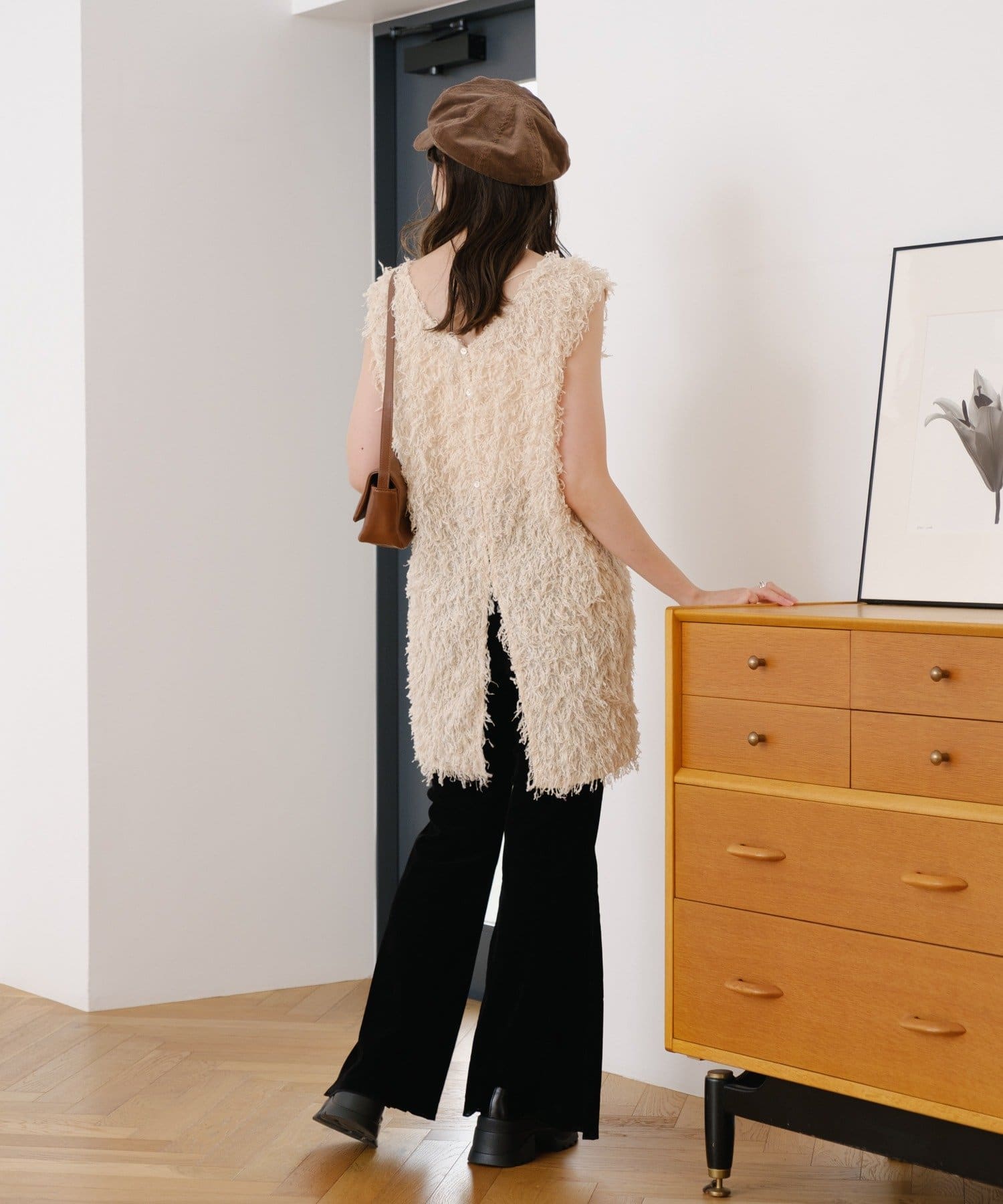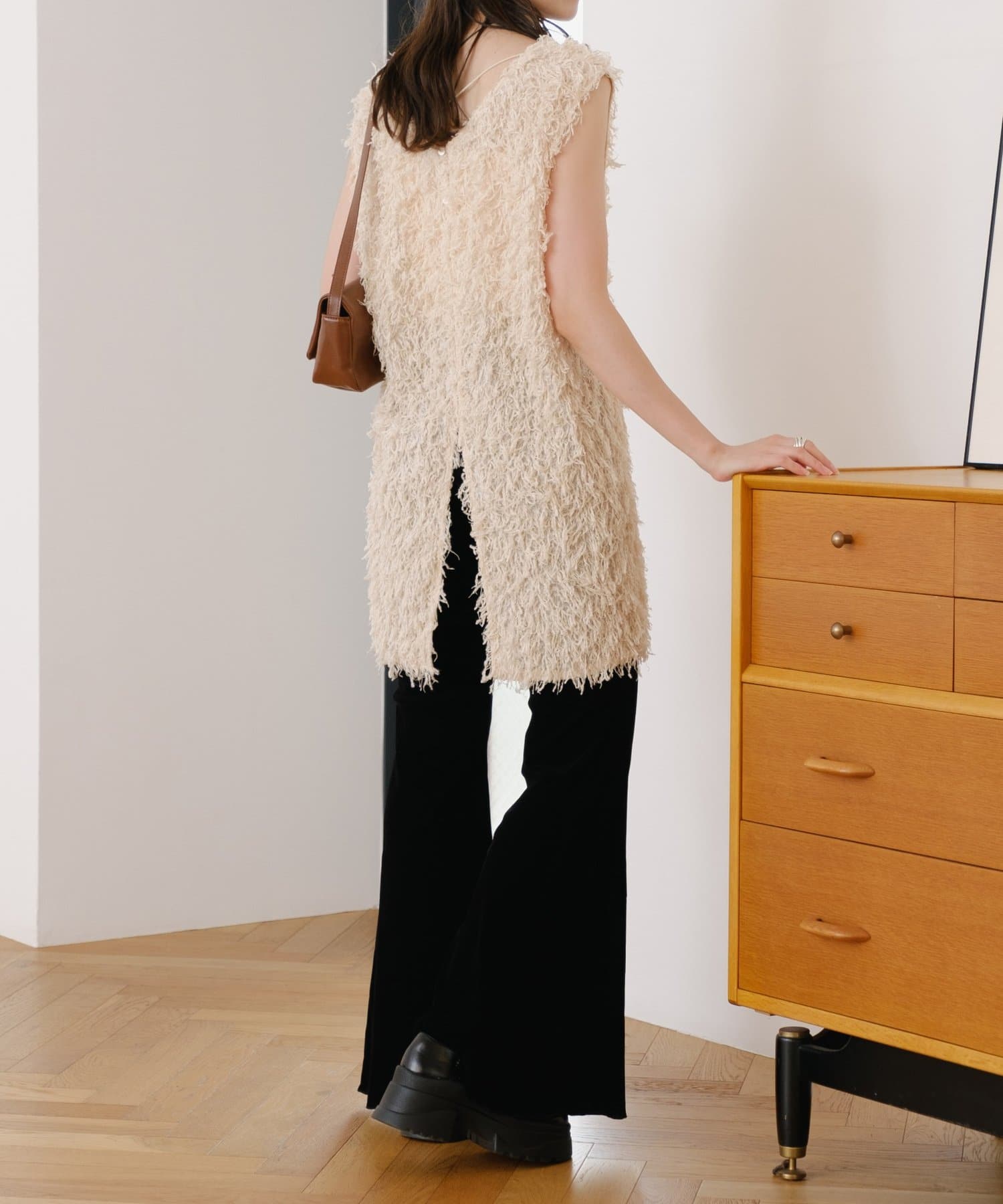 表面感のあるベロア生地が、スタイリングにニュアンスをプラスしてくれます。