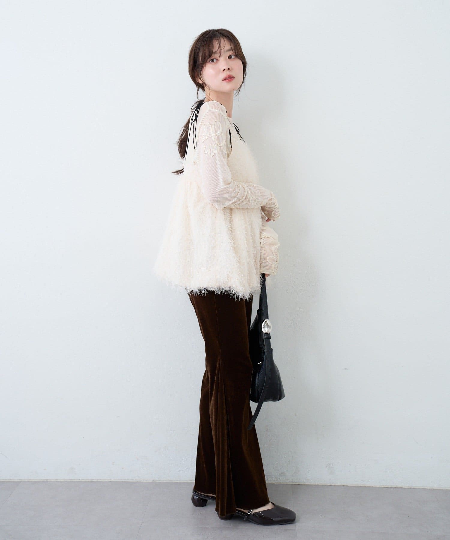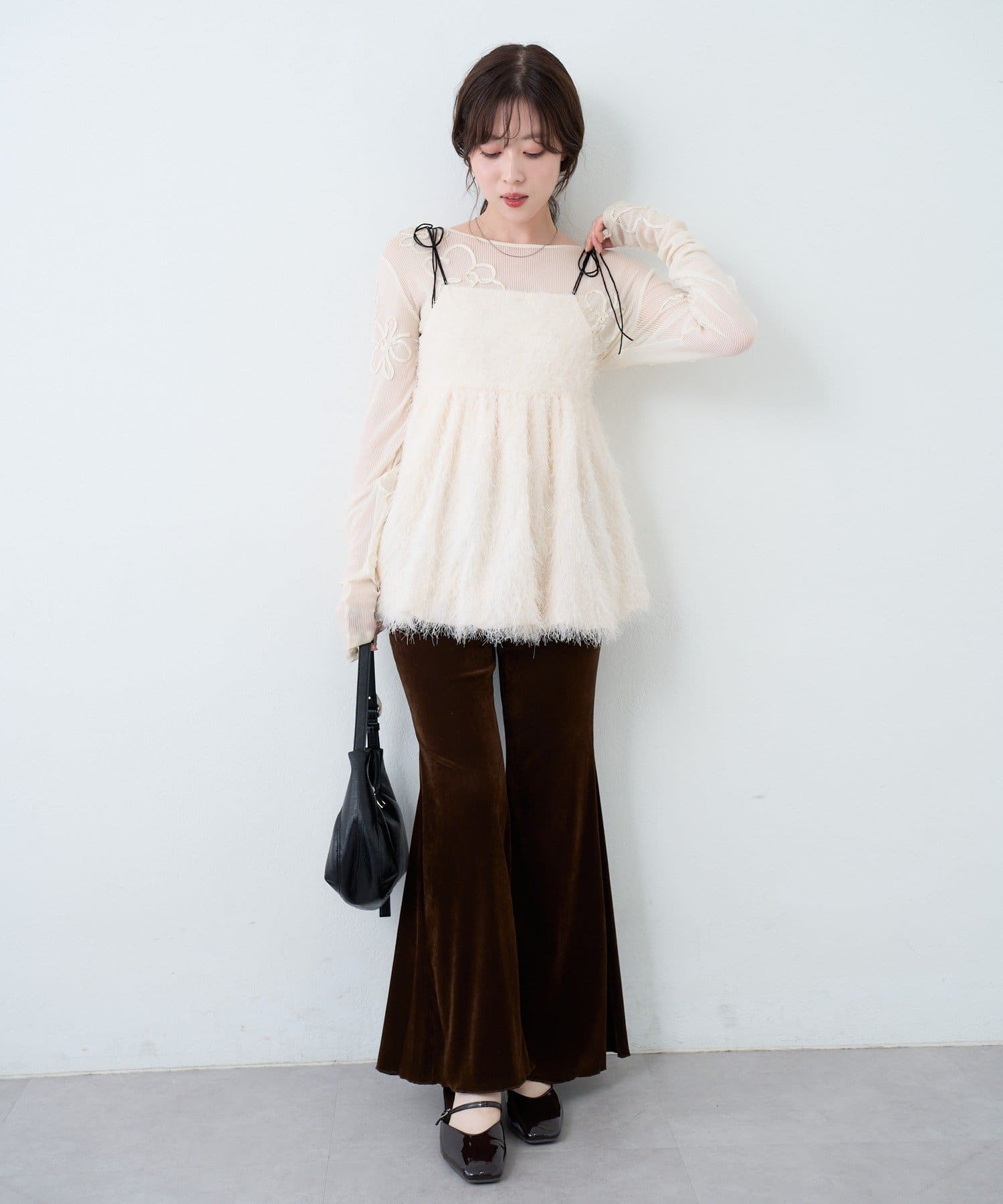 【低身長サイズ/2サイズ展開】ベロアチュールパンツ
