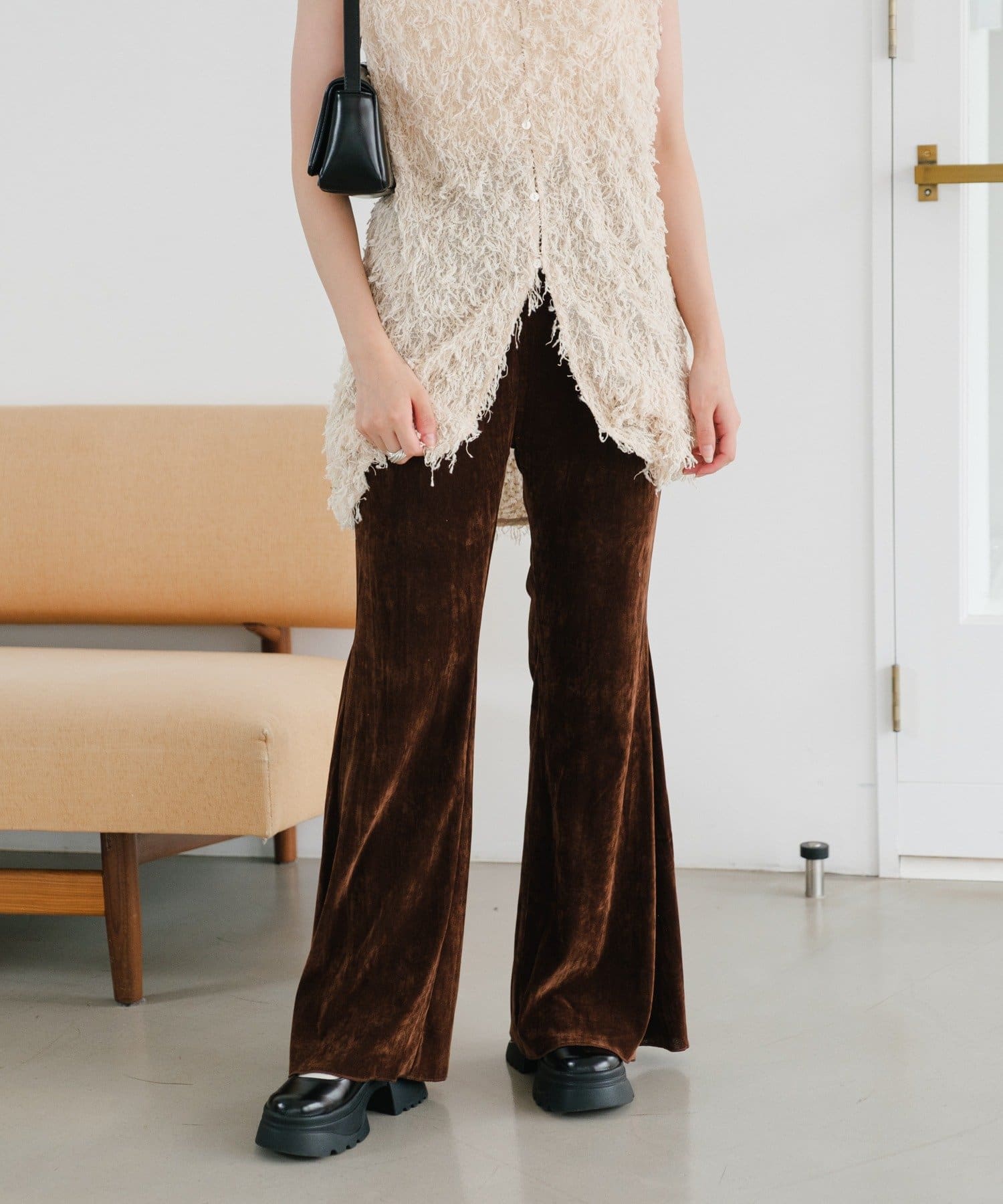トレンド感たっぷりなシーズン注目のベロアパンツ。