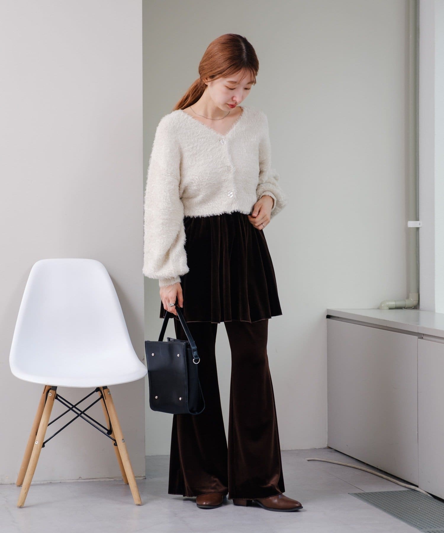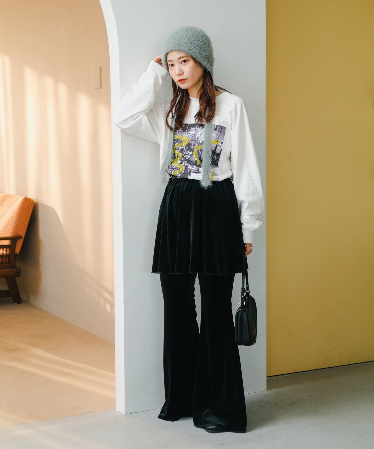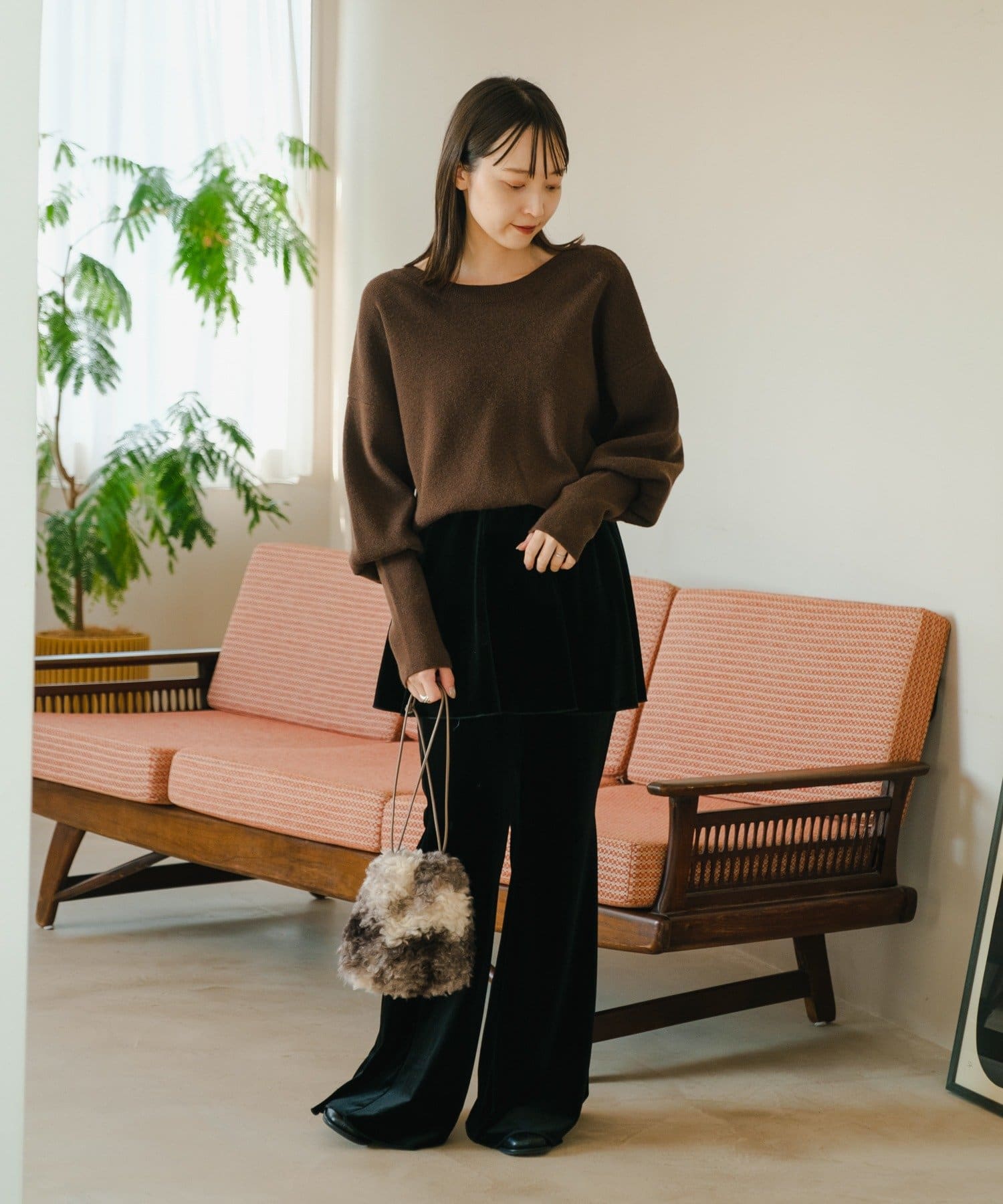 ベロア素材ならではの厚みがあり、秋冬に最適◎