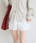 ふんだんにあしらわれたフリルが可愛らしさを引き立てるショートパンツ。