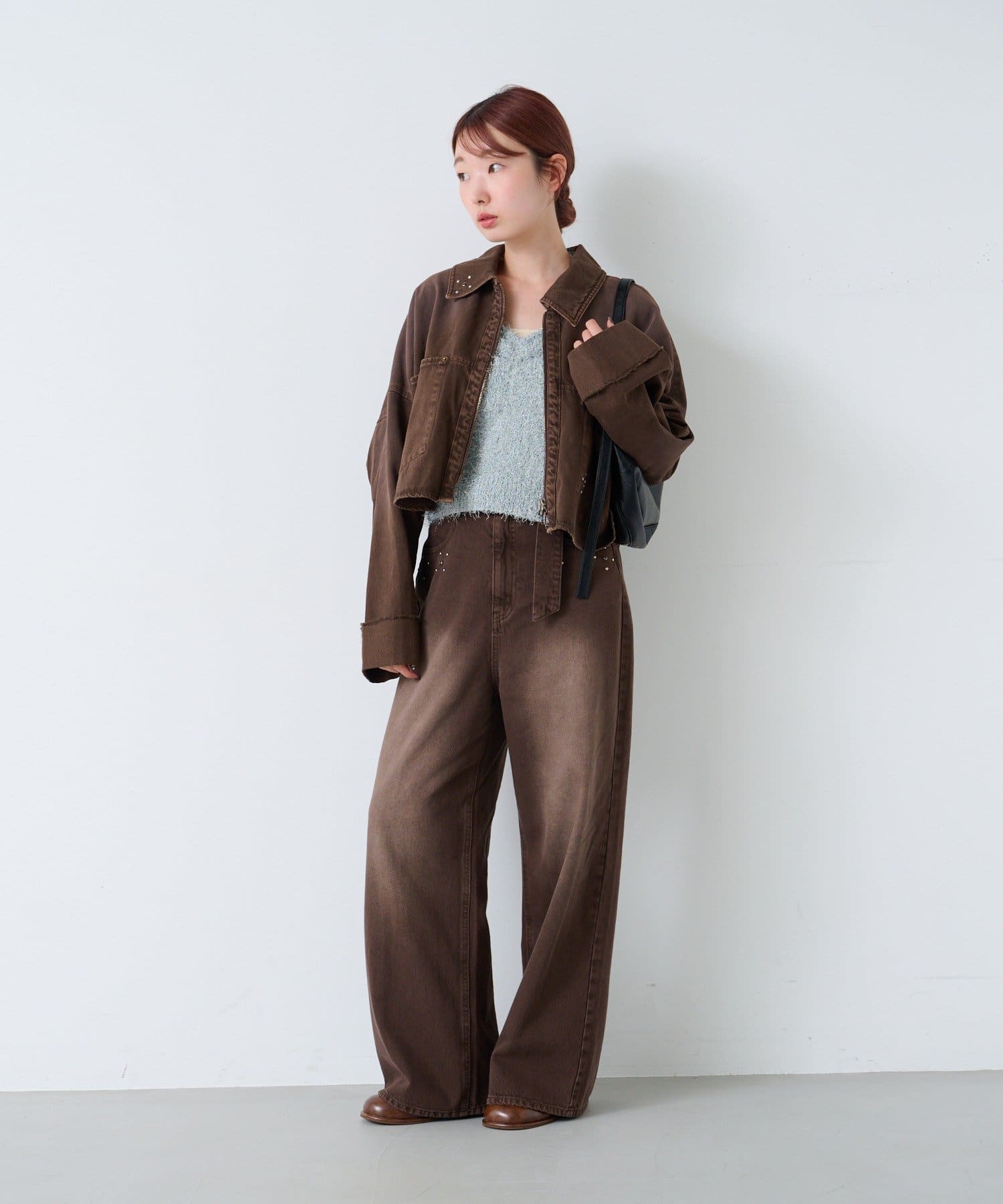 【セットアップ対応/2サイズ展開/低身長サイズ】ビジュー付きデニムパンツ