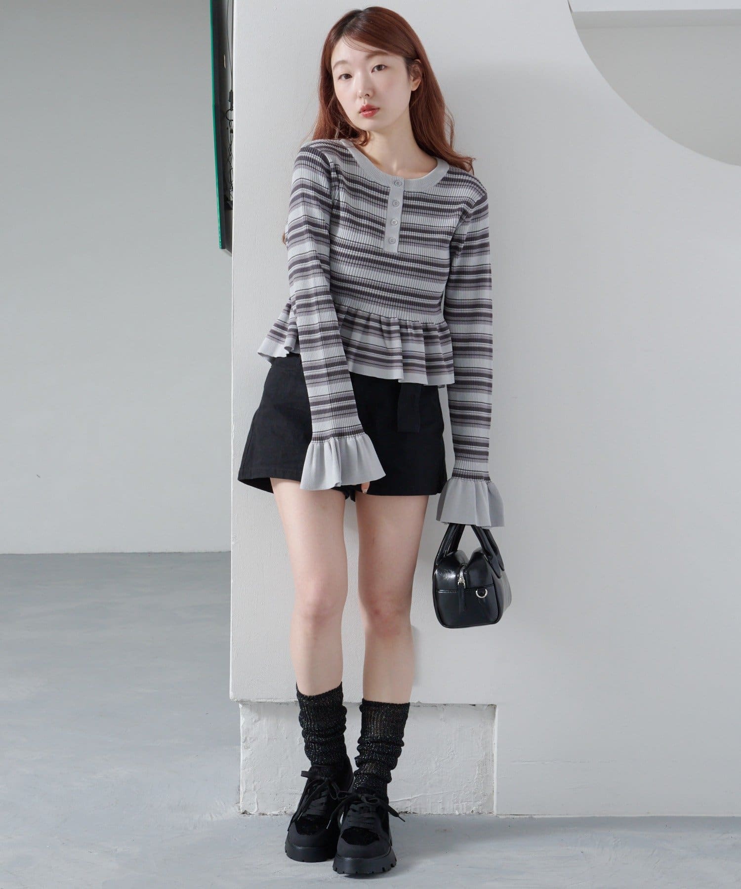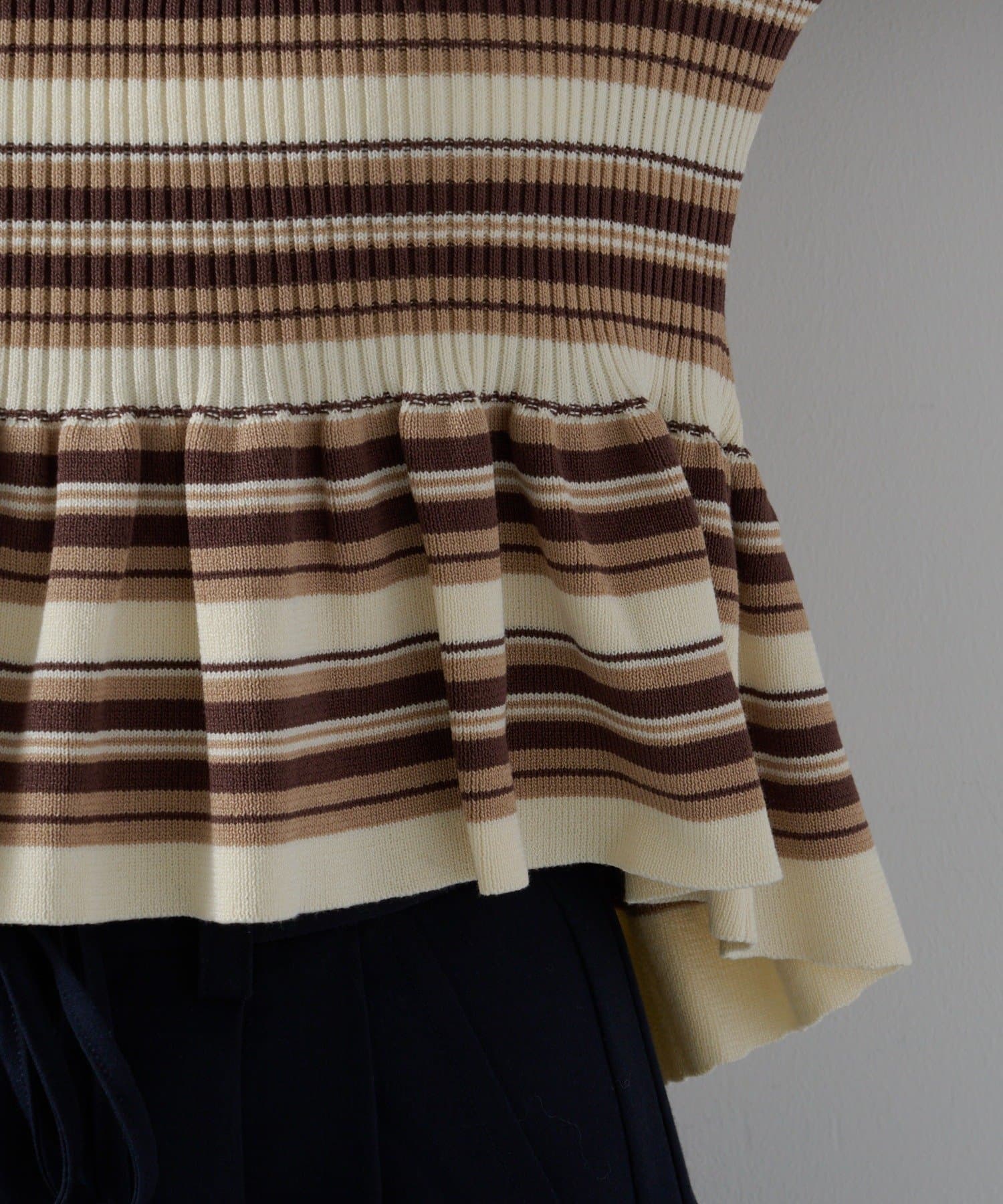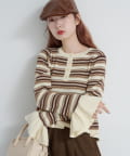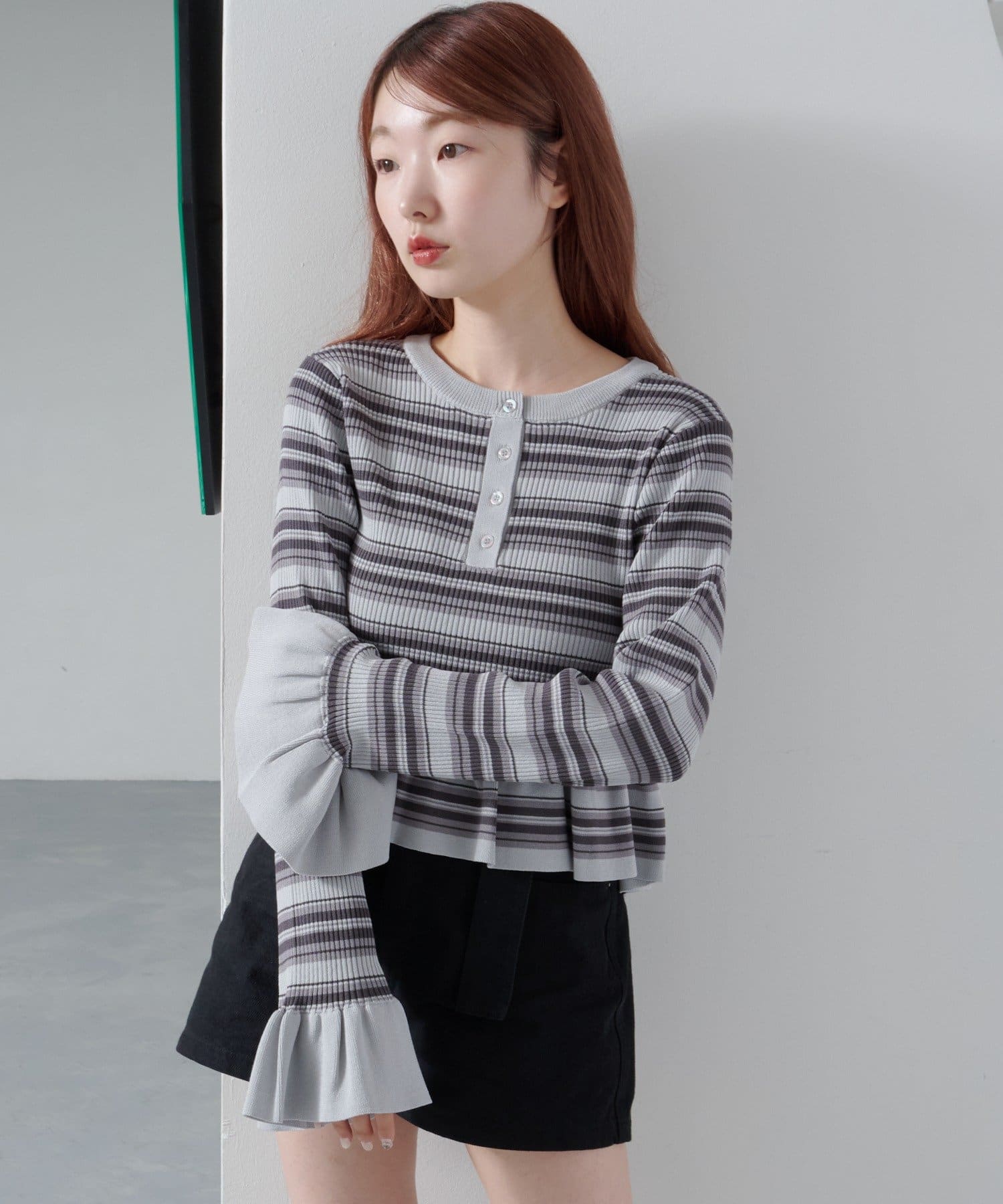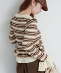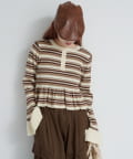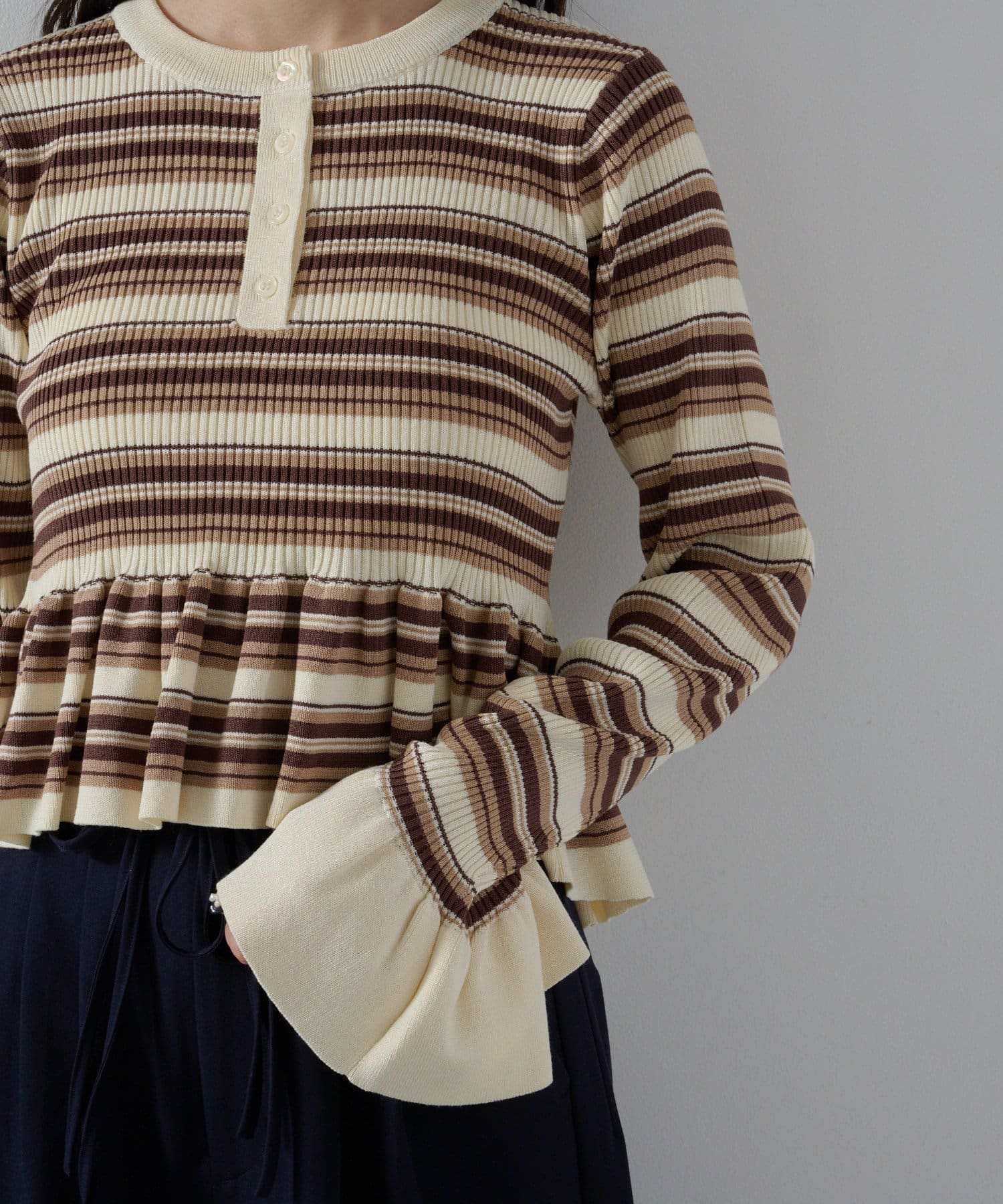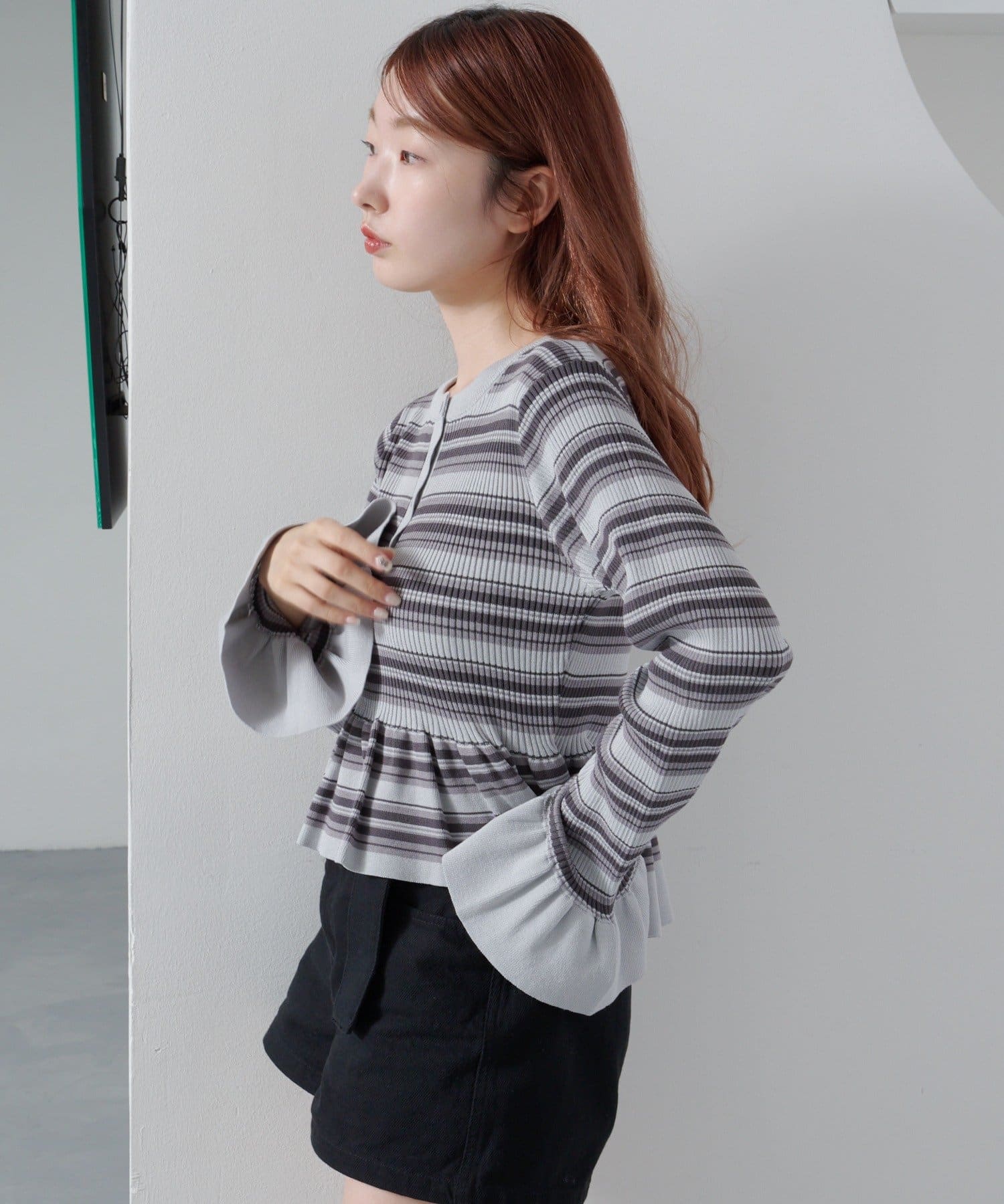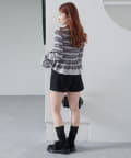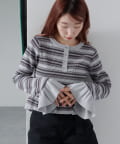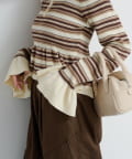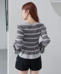 【ボーダ&無地】ペプラムヘンリーニット