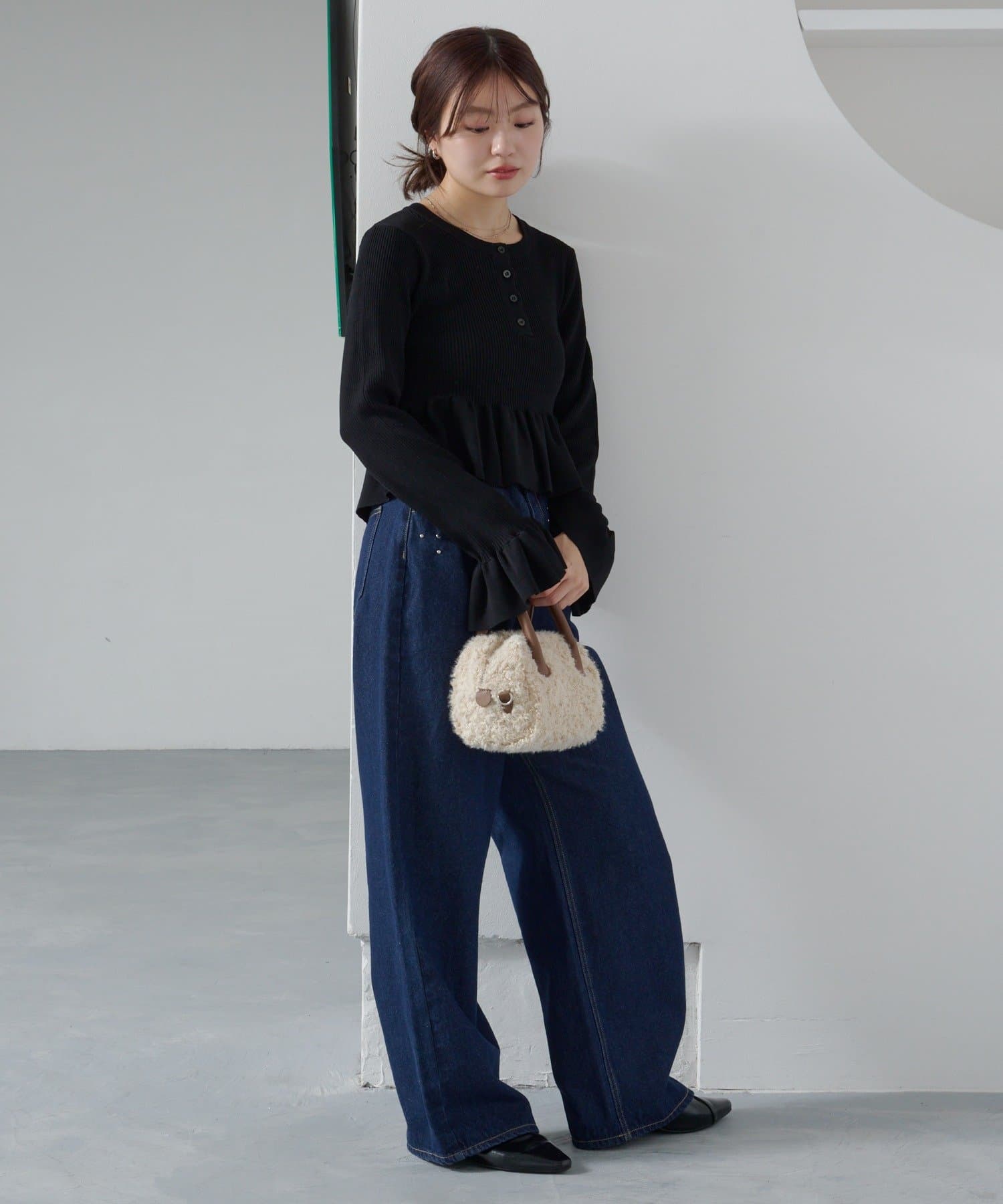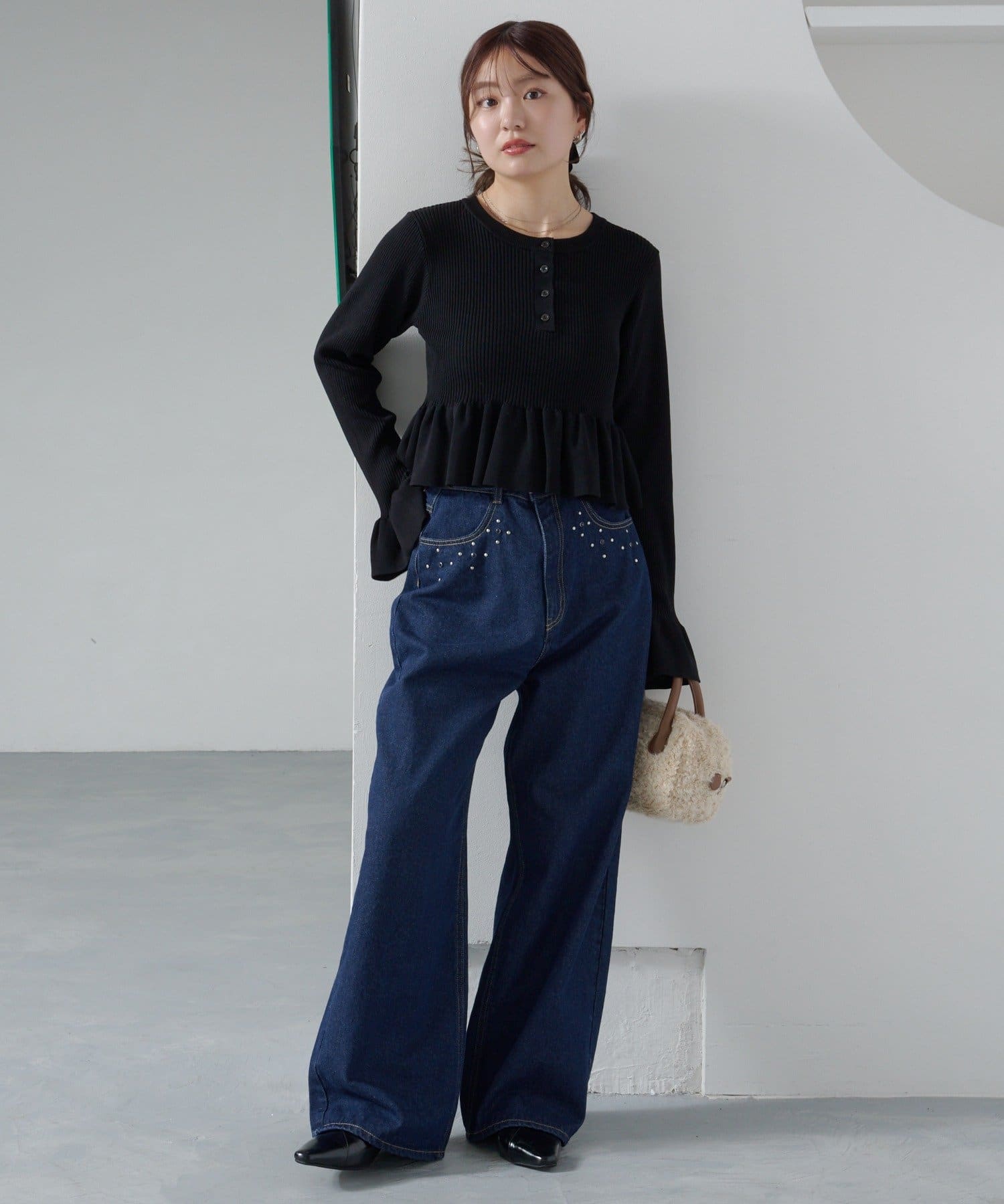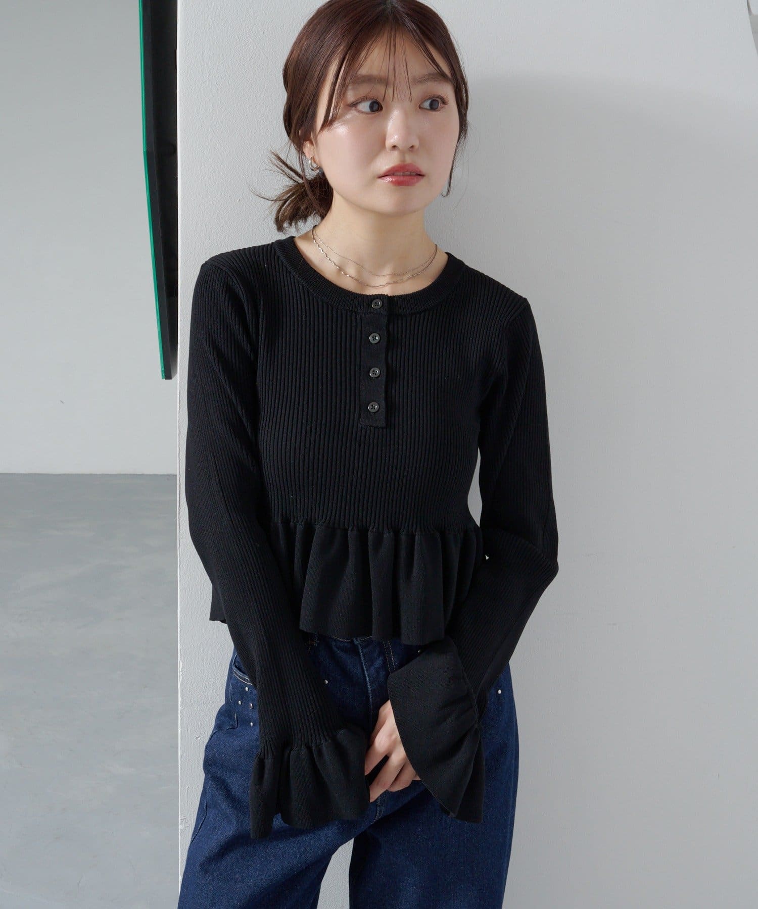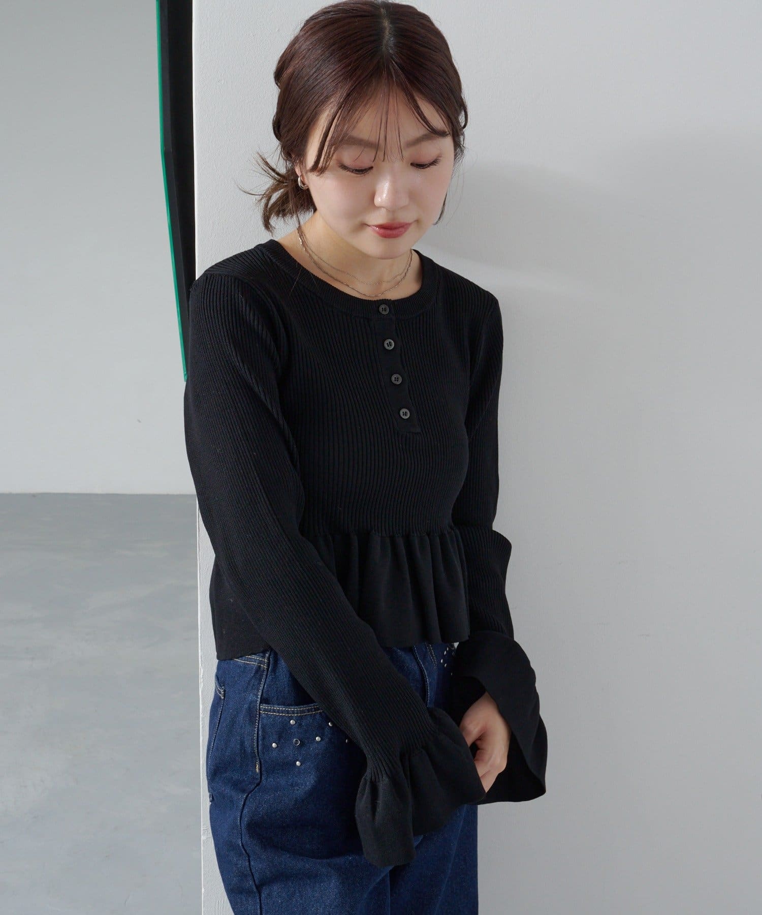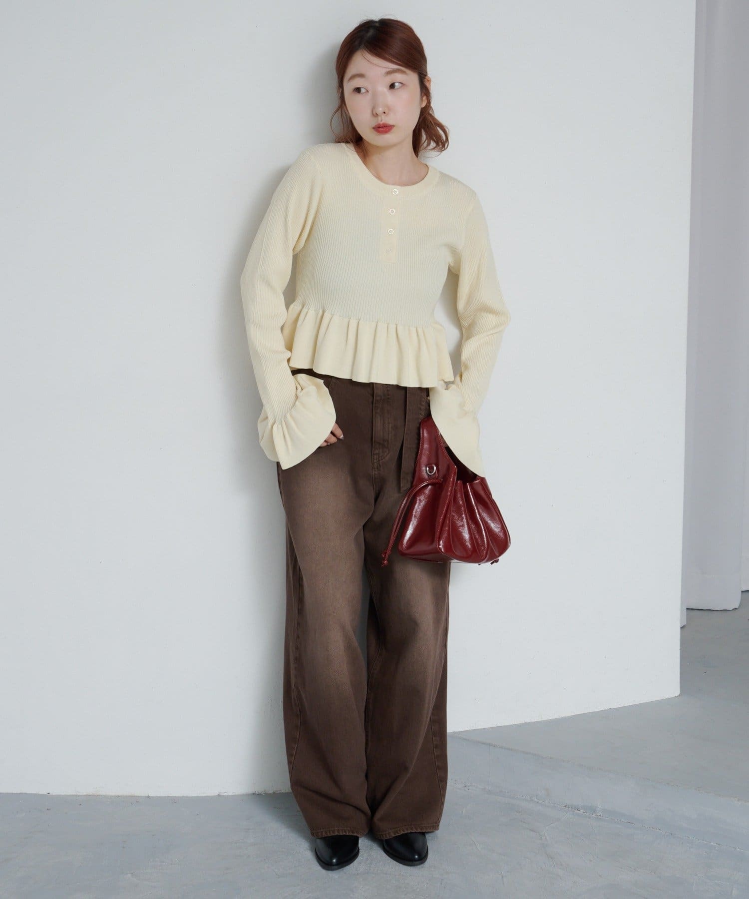 シンプルボトムと相性◎ペプラムヘンリーニット
