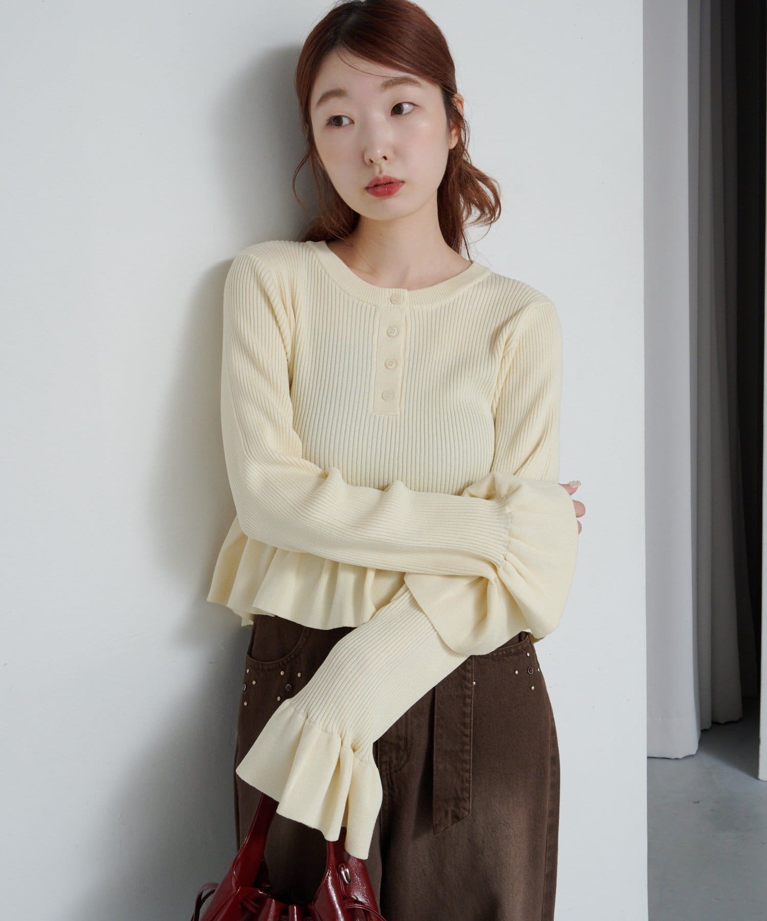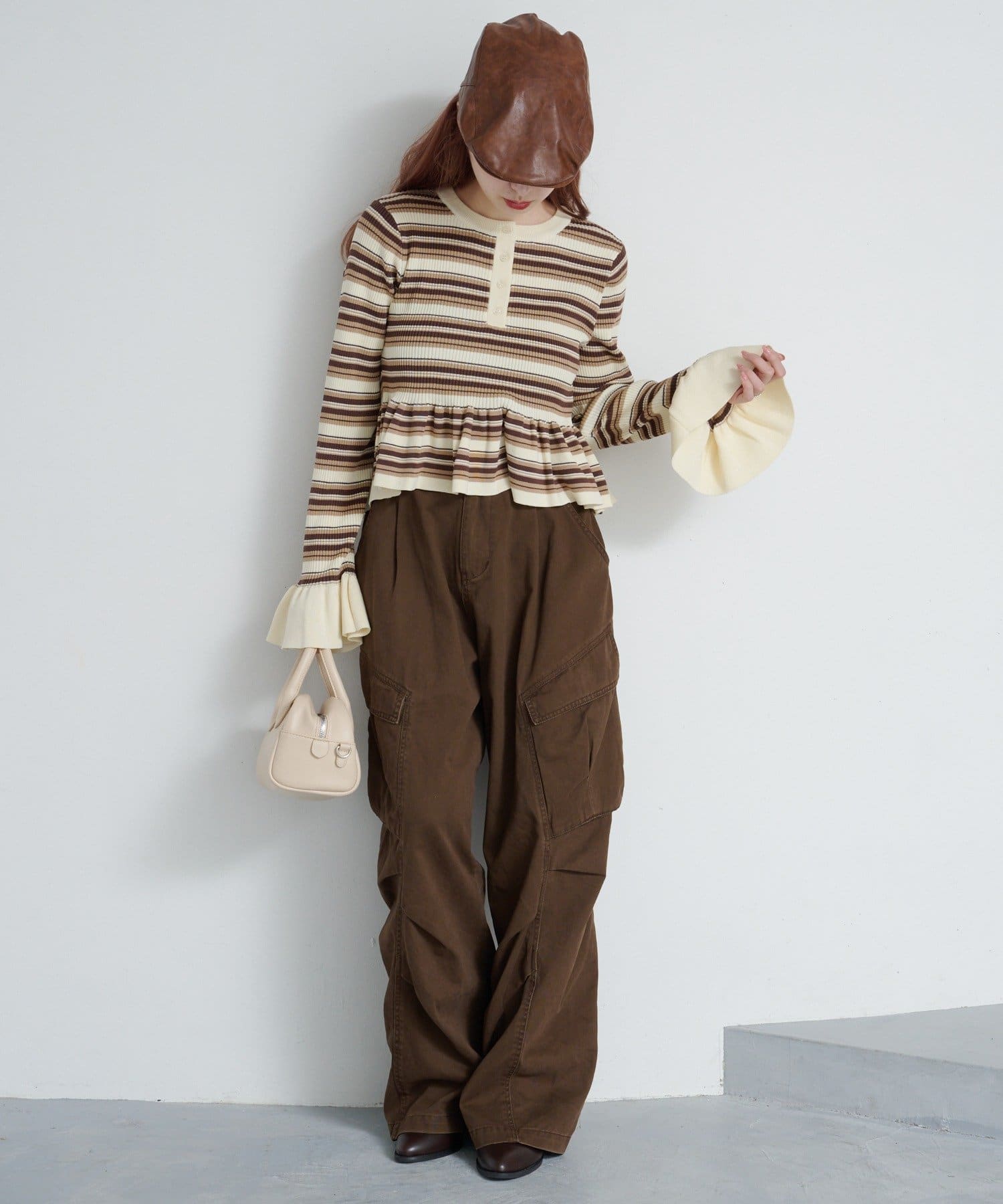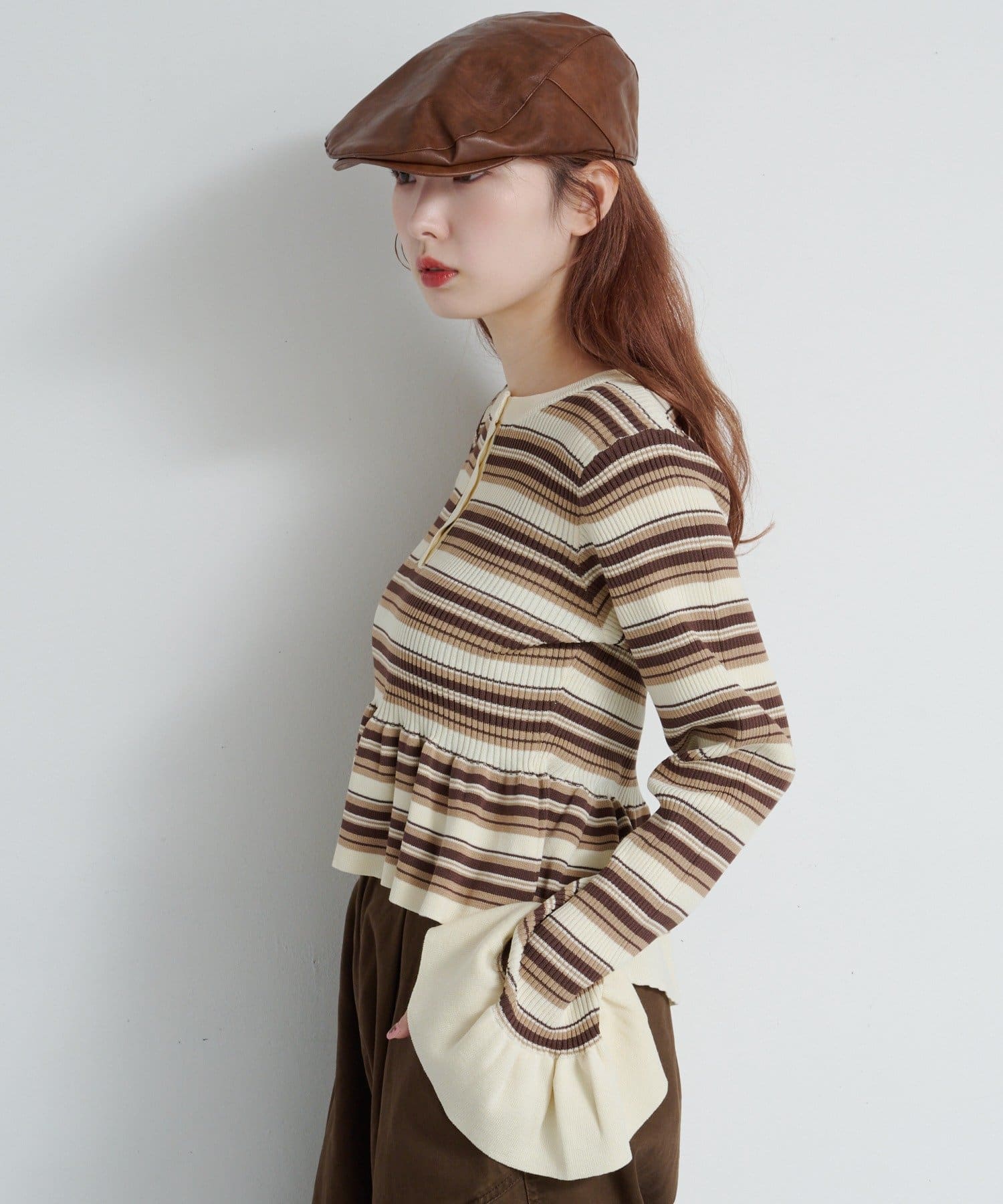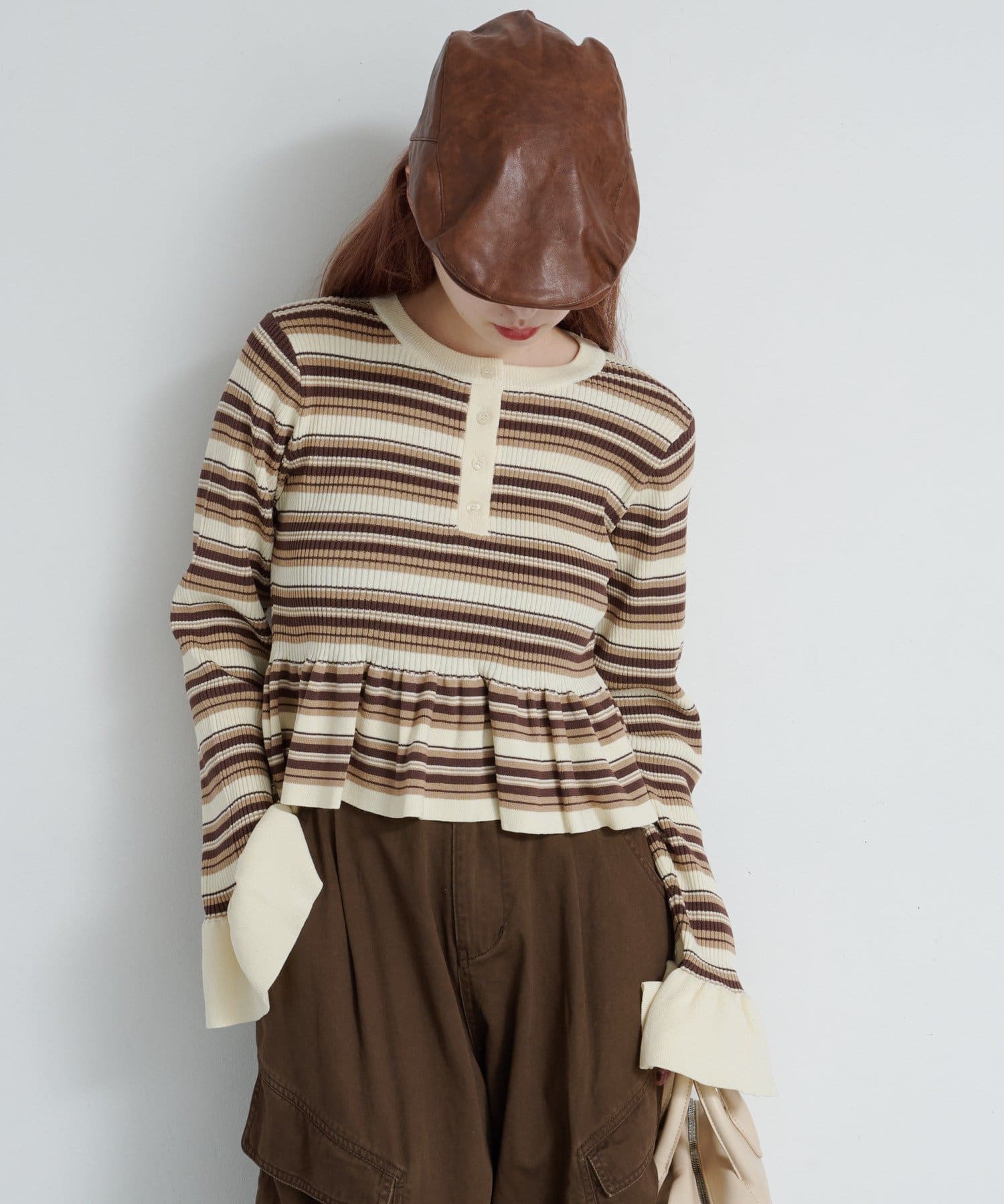 シンプルボトムと相性◎ペプラムヘンリーニット