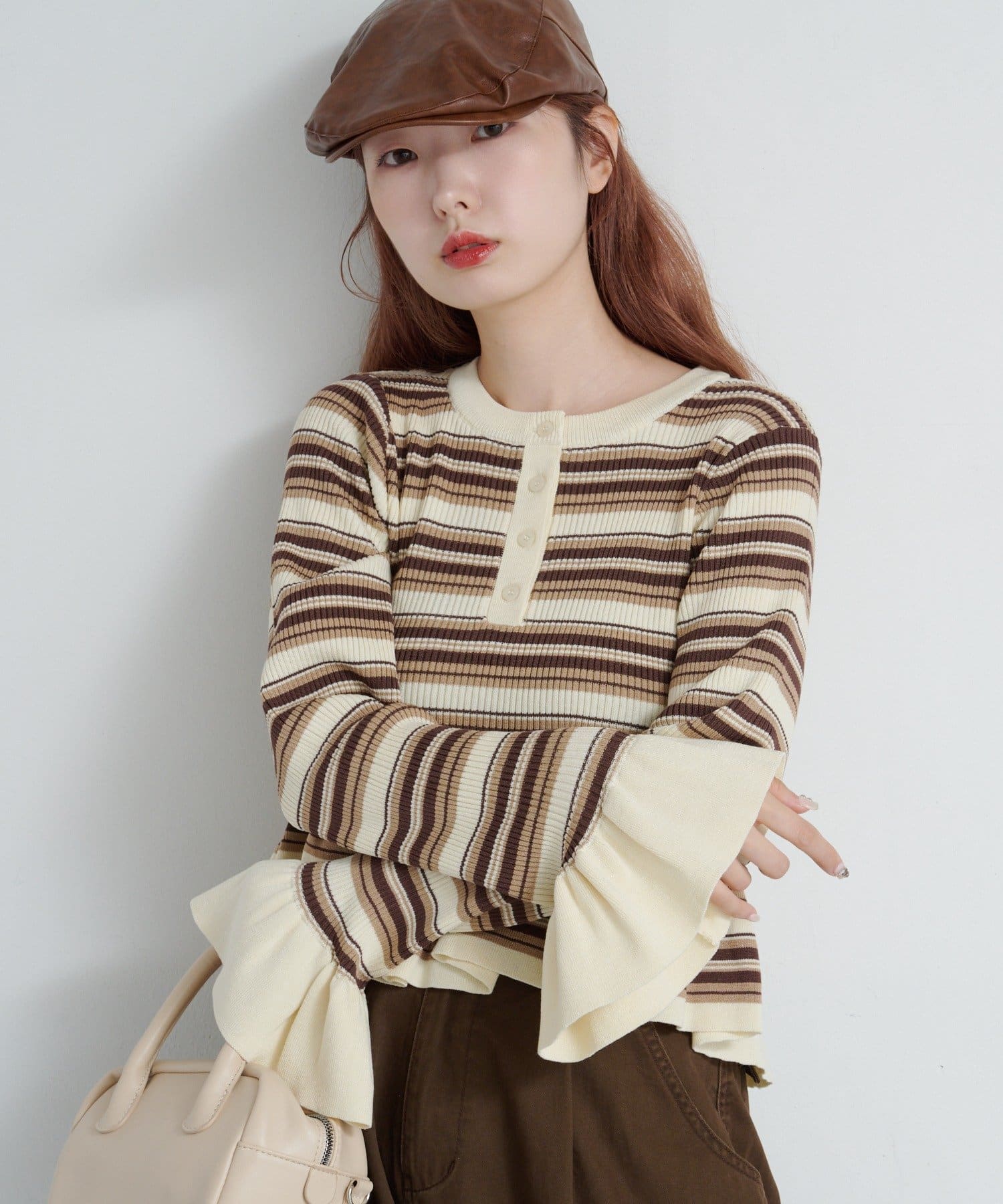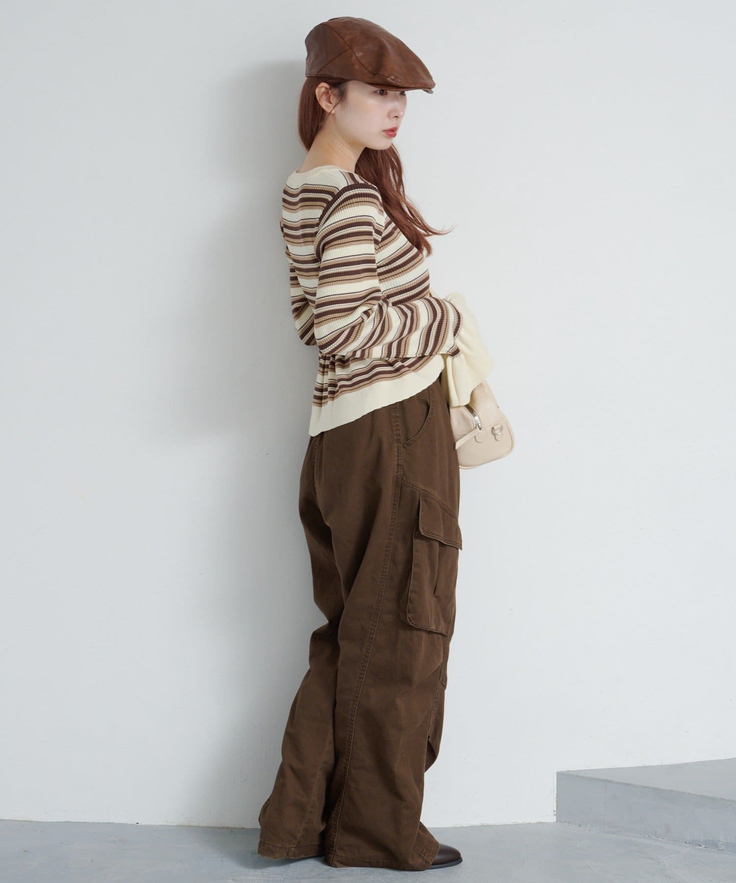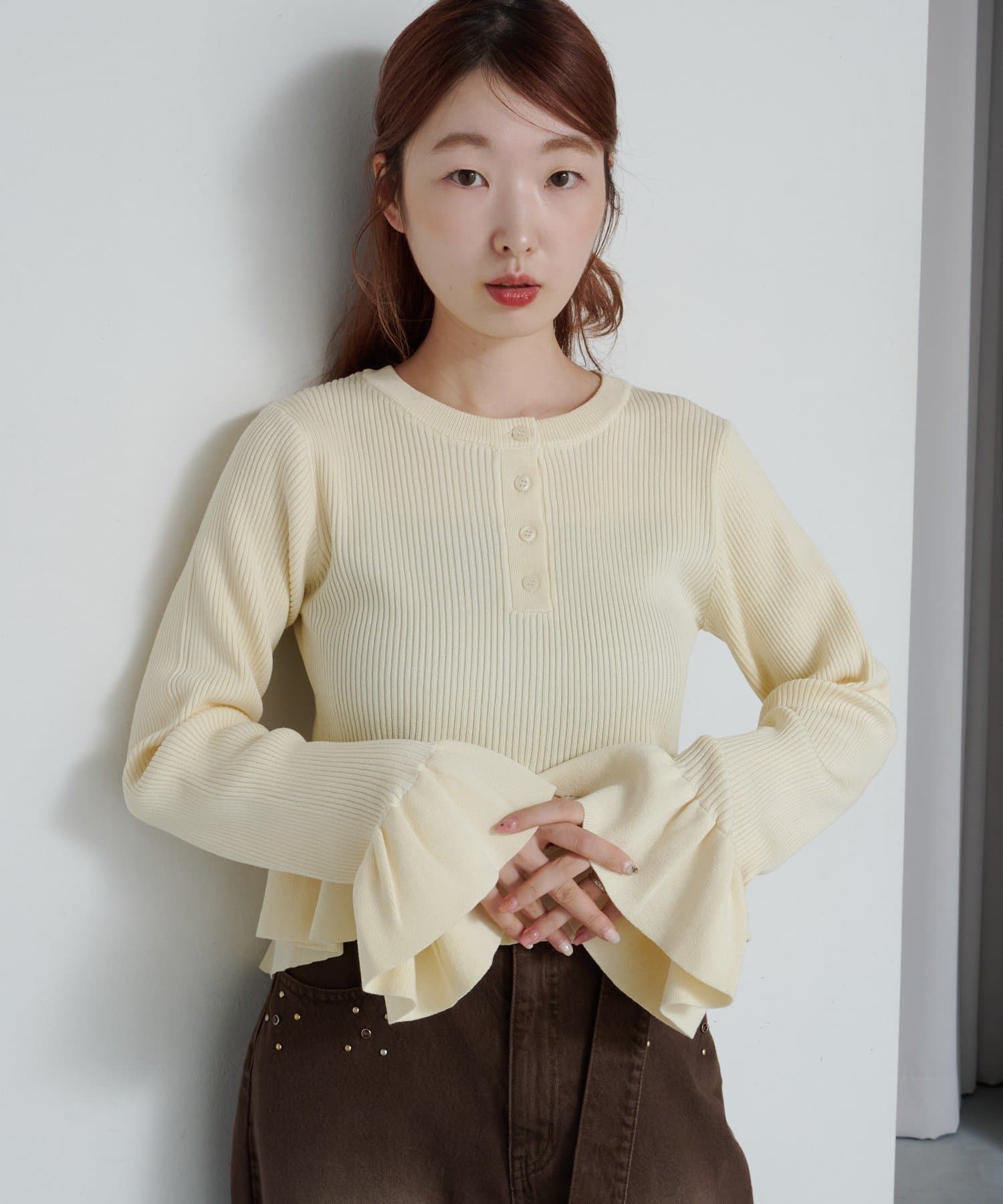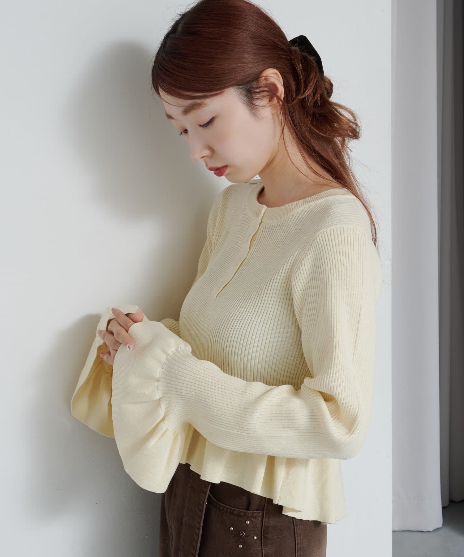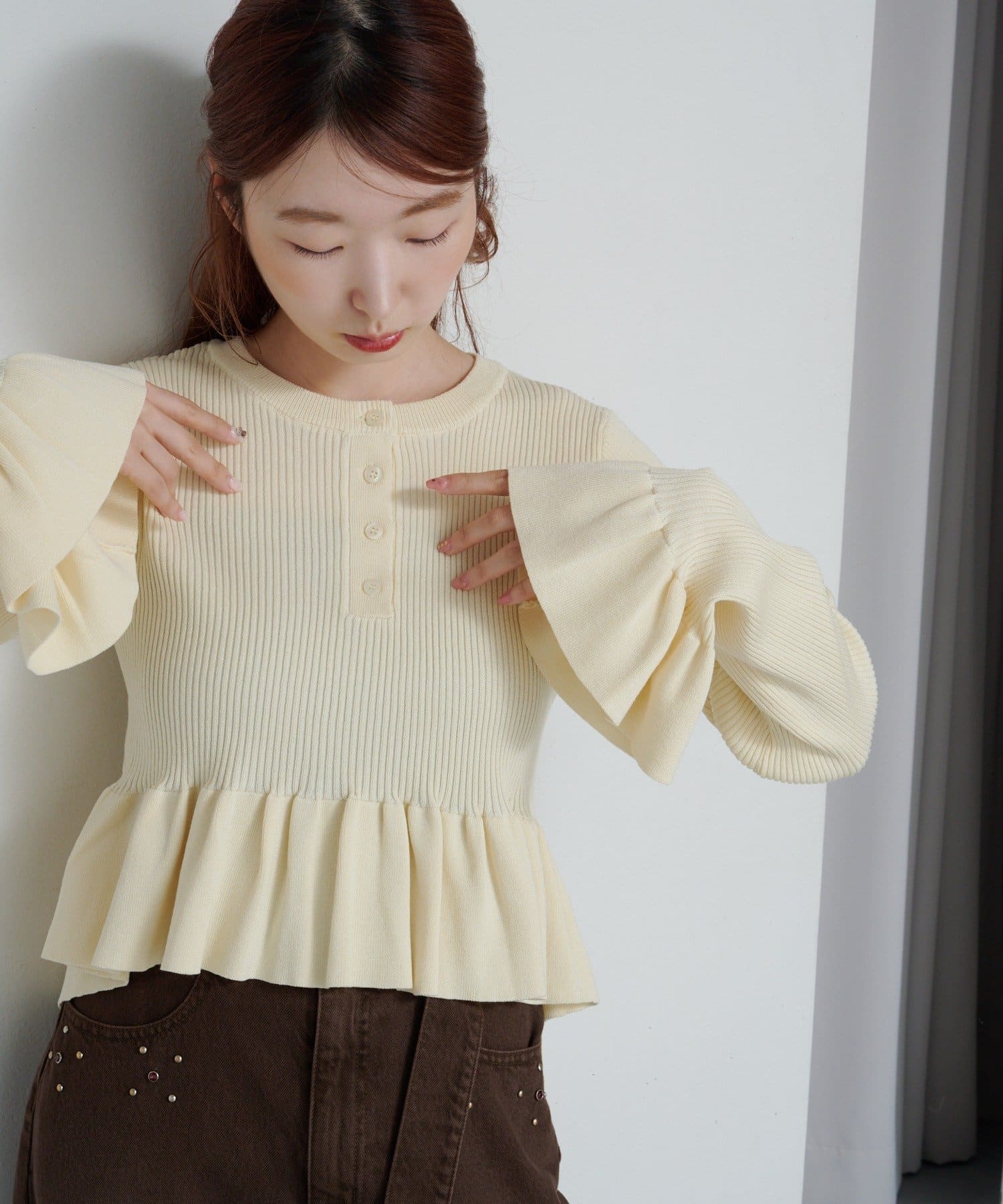 シンプルボトムと相性◎ペプラムヘンリーニット