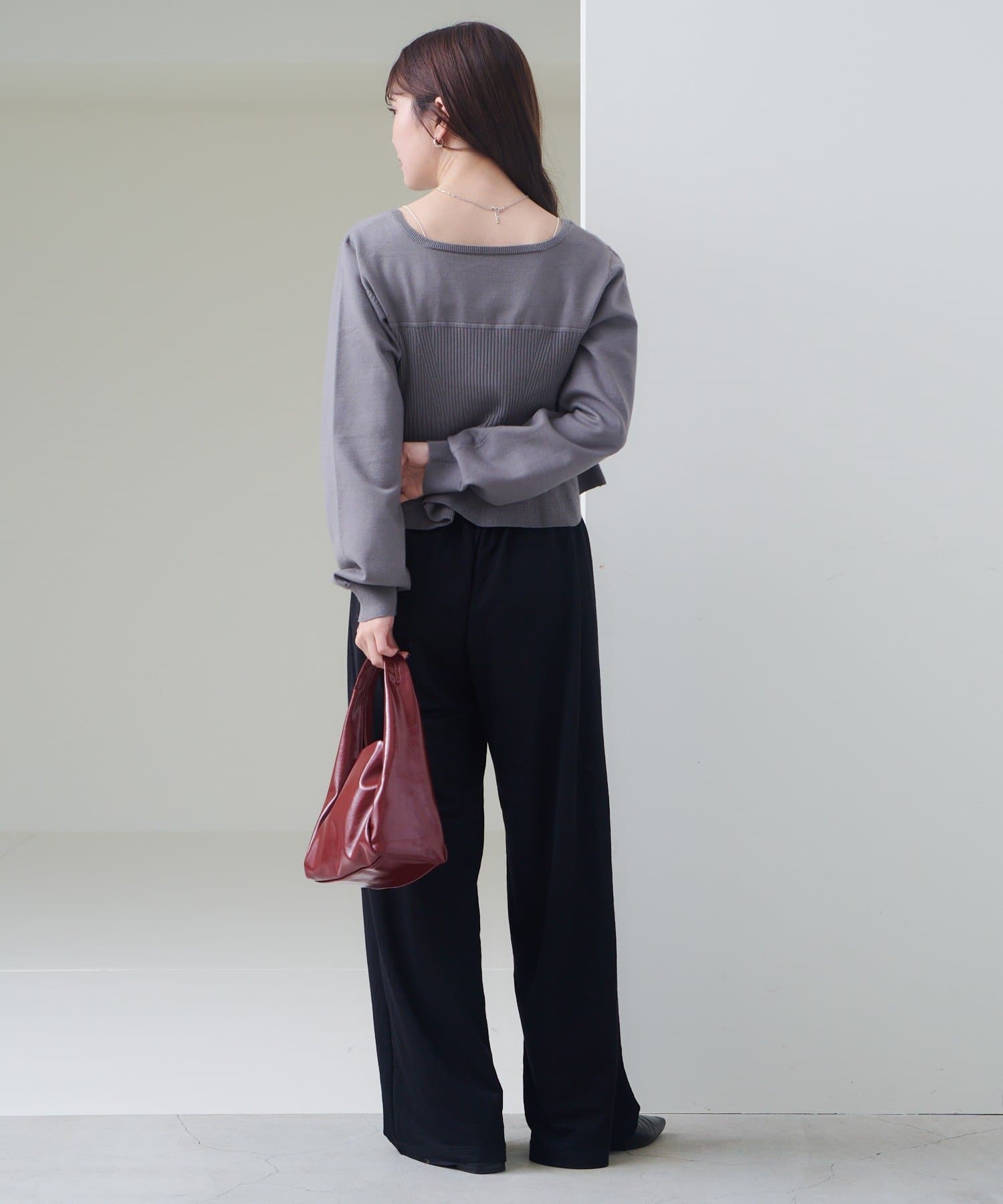 胸下から切り替えたリブ編みがスタイルアップを叶え、ウエストを自然に細見えさせます。
