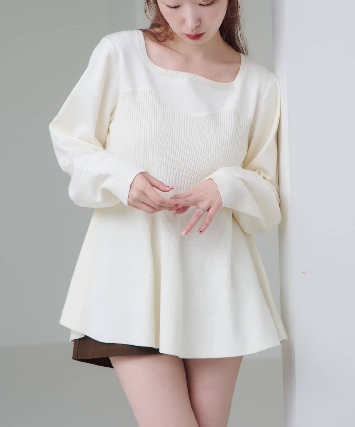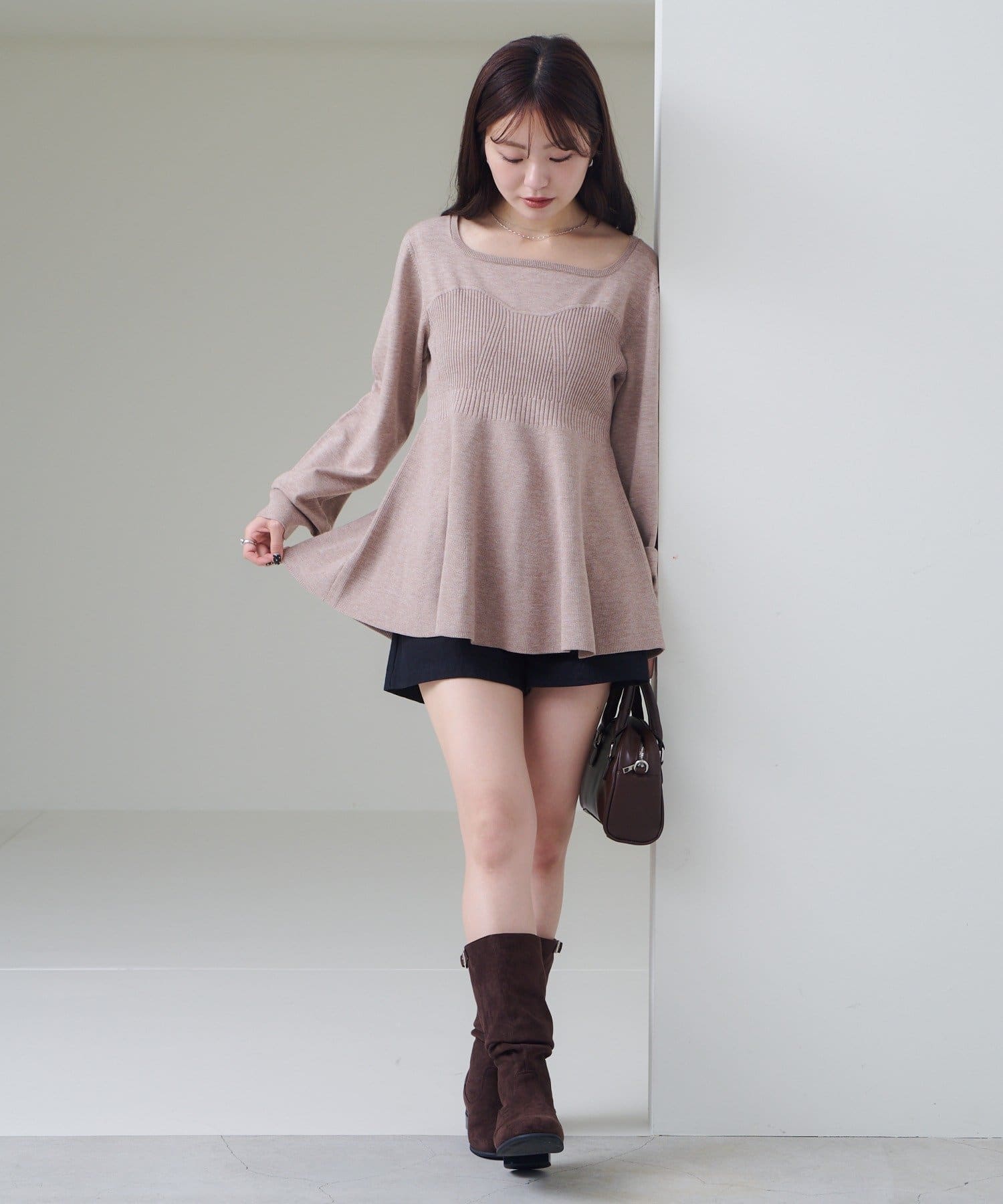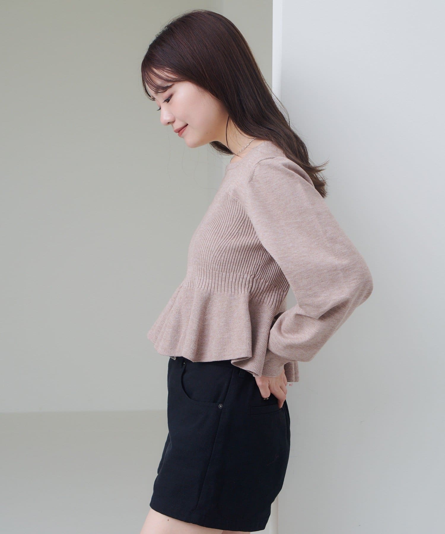 ビスチェデザインがフェミニンな印象のペプラムニット。