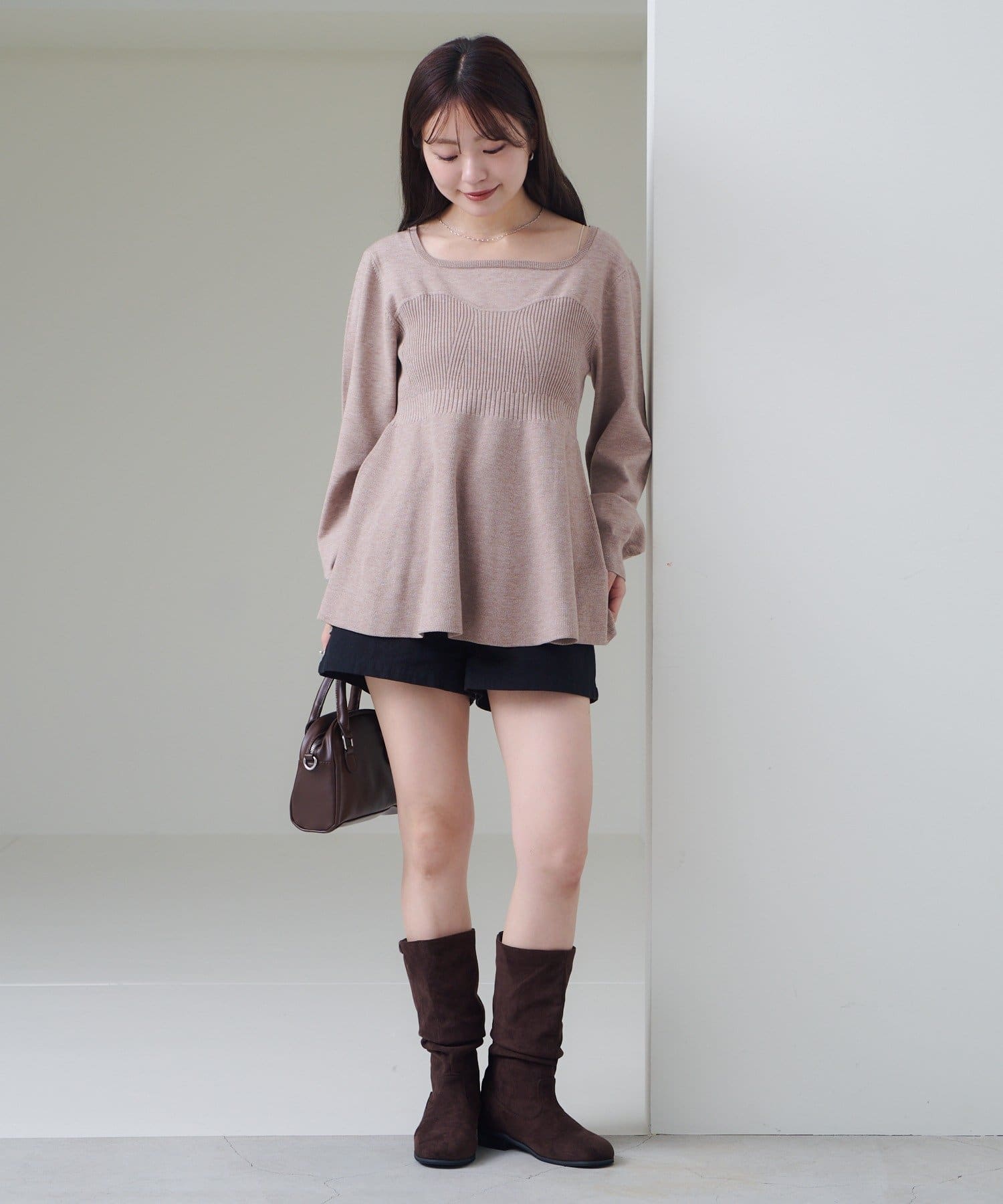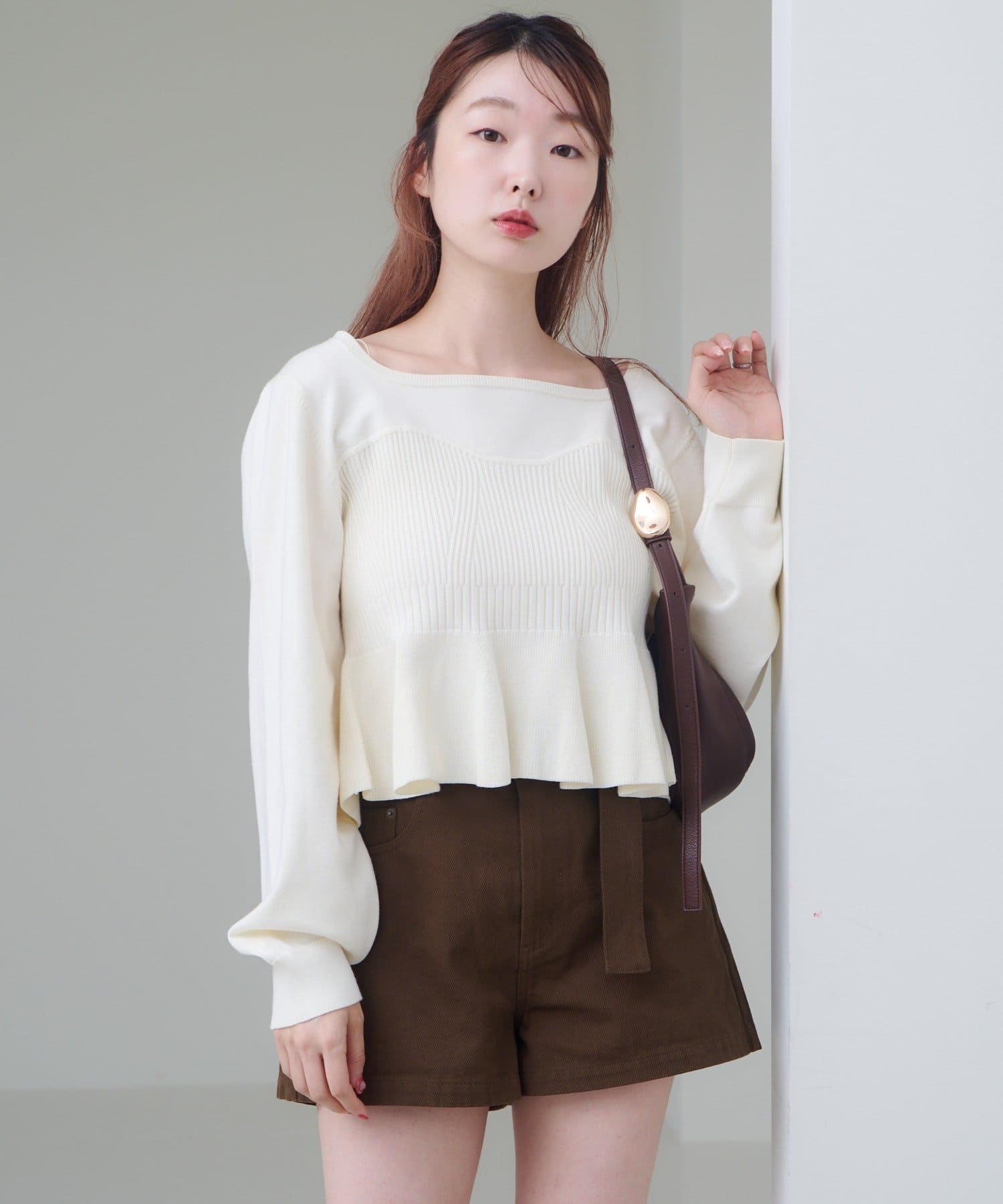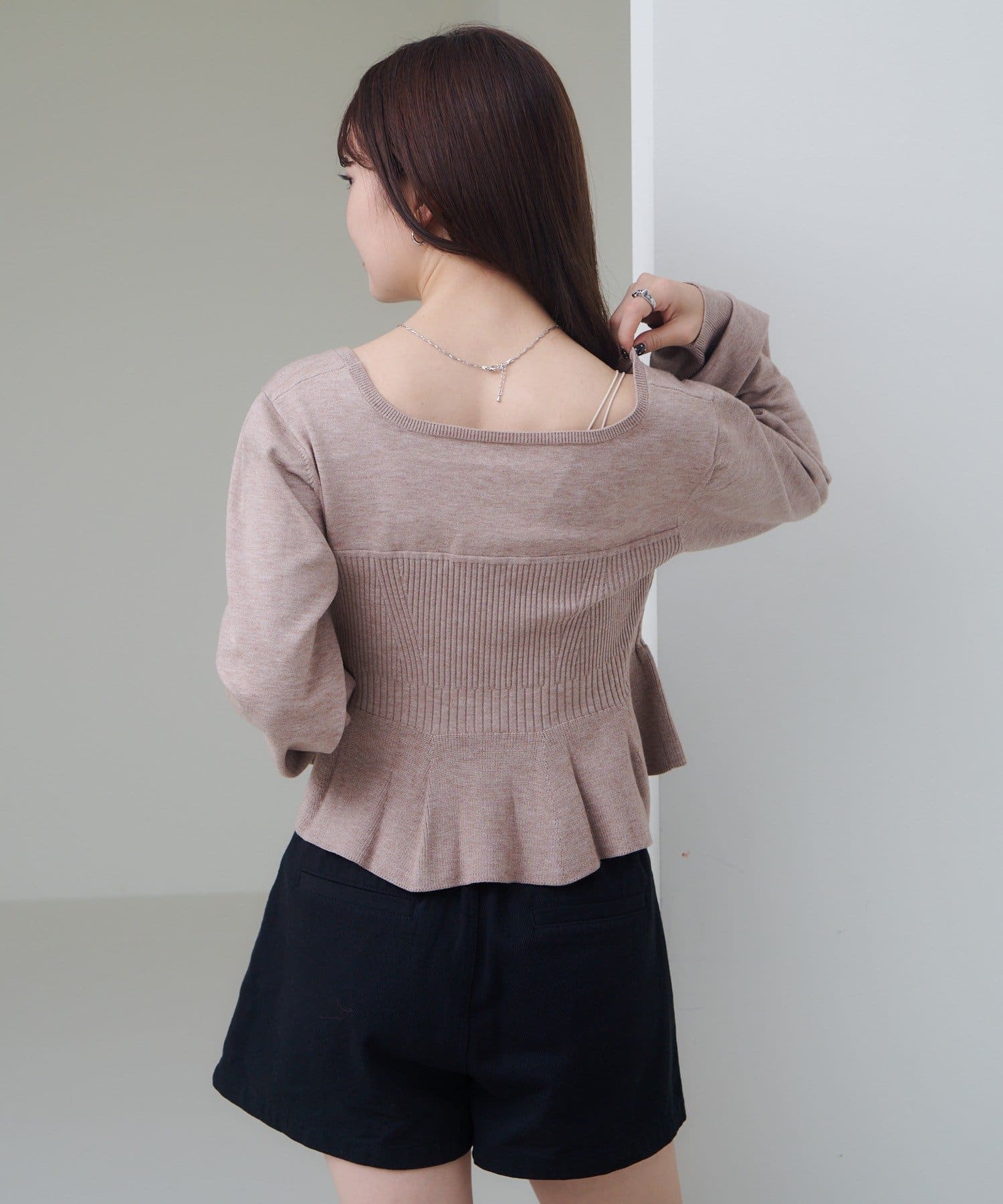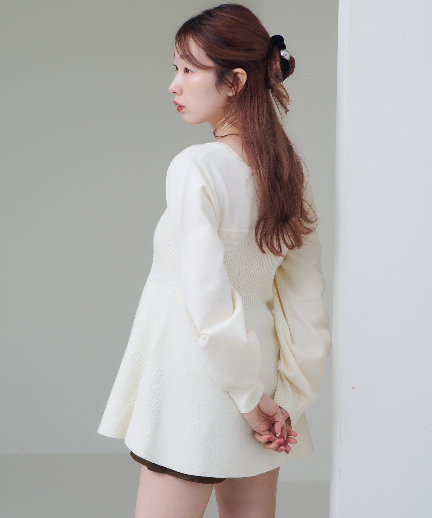 ビスチェデザインがフェミニンな印象のペプラムニット。