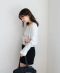 リブの縦ラインがすっきりと見せてくれ、インナーとカーディガンを合わせたようなデザインで一枚でスタイリングが完成します。