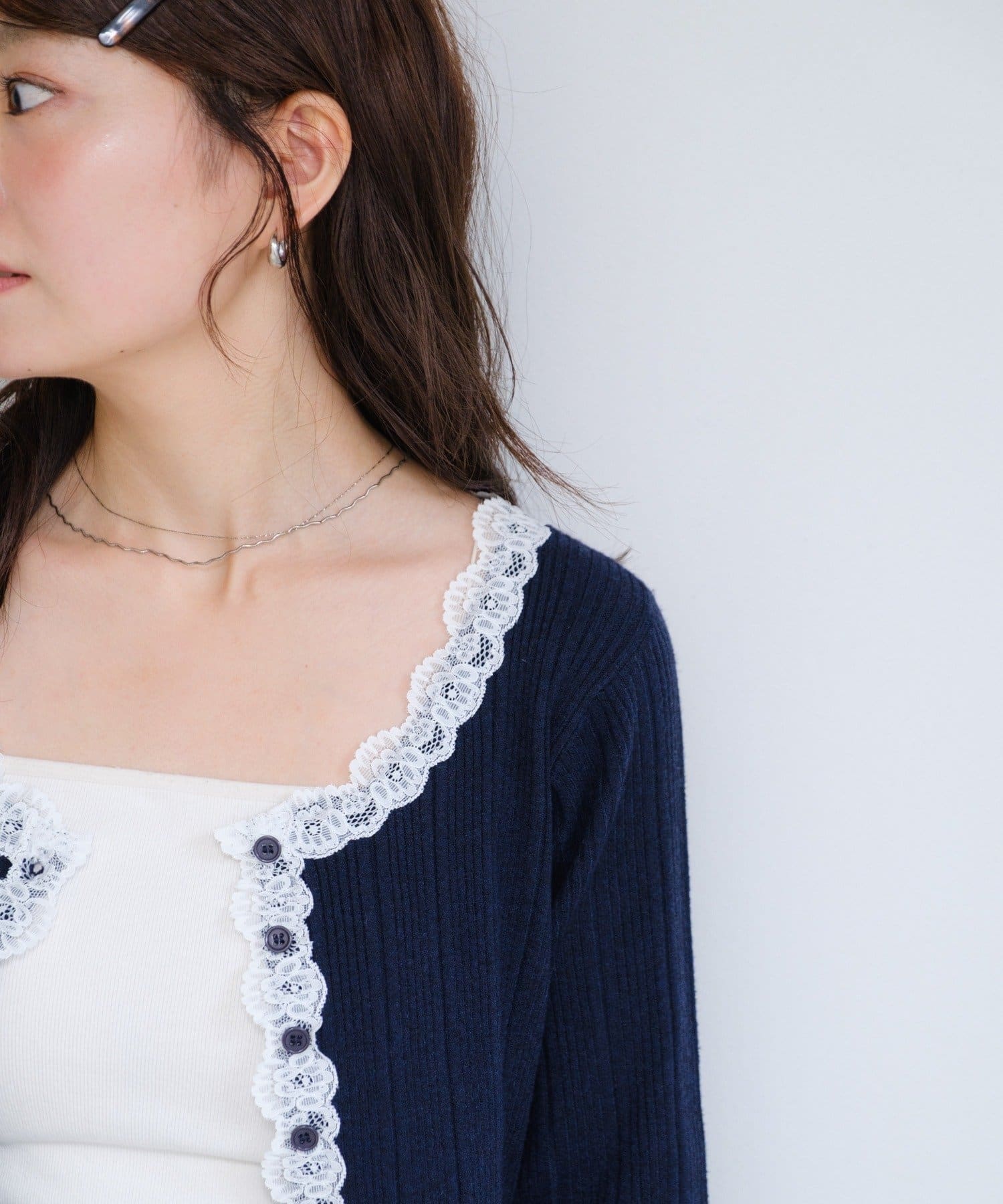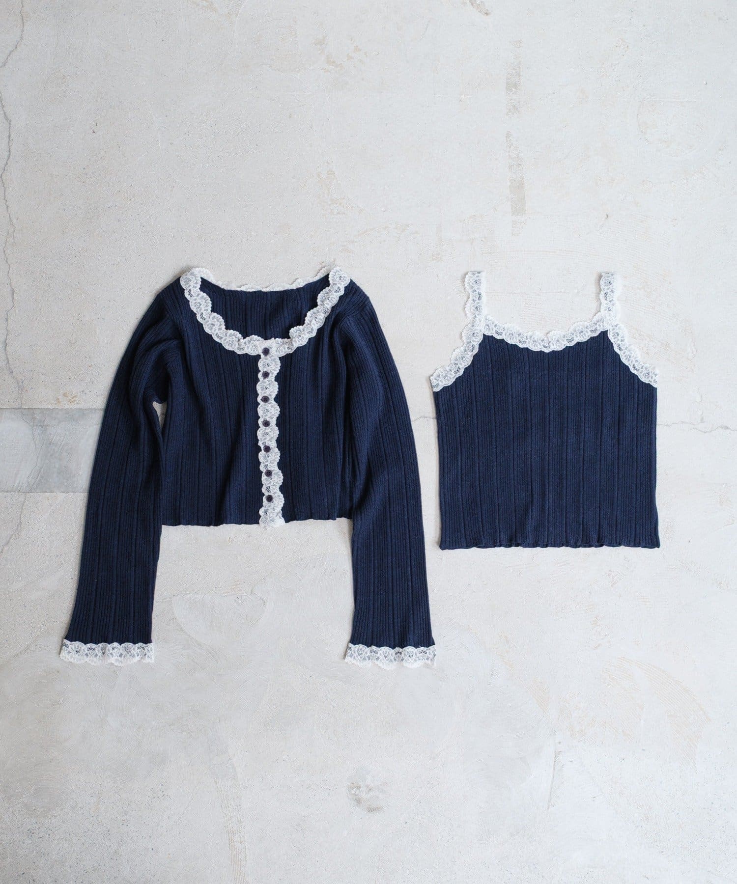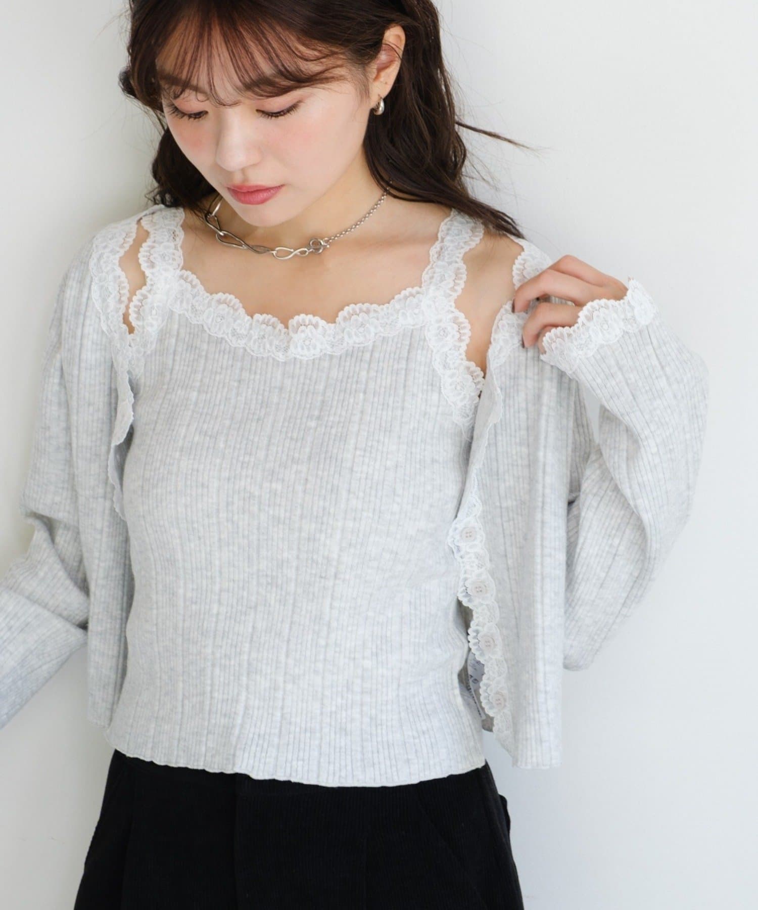 TOP > Kastane > レディース > トップス > カーディガン/ボレロ > レースリブニットアンサンブル