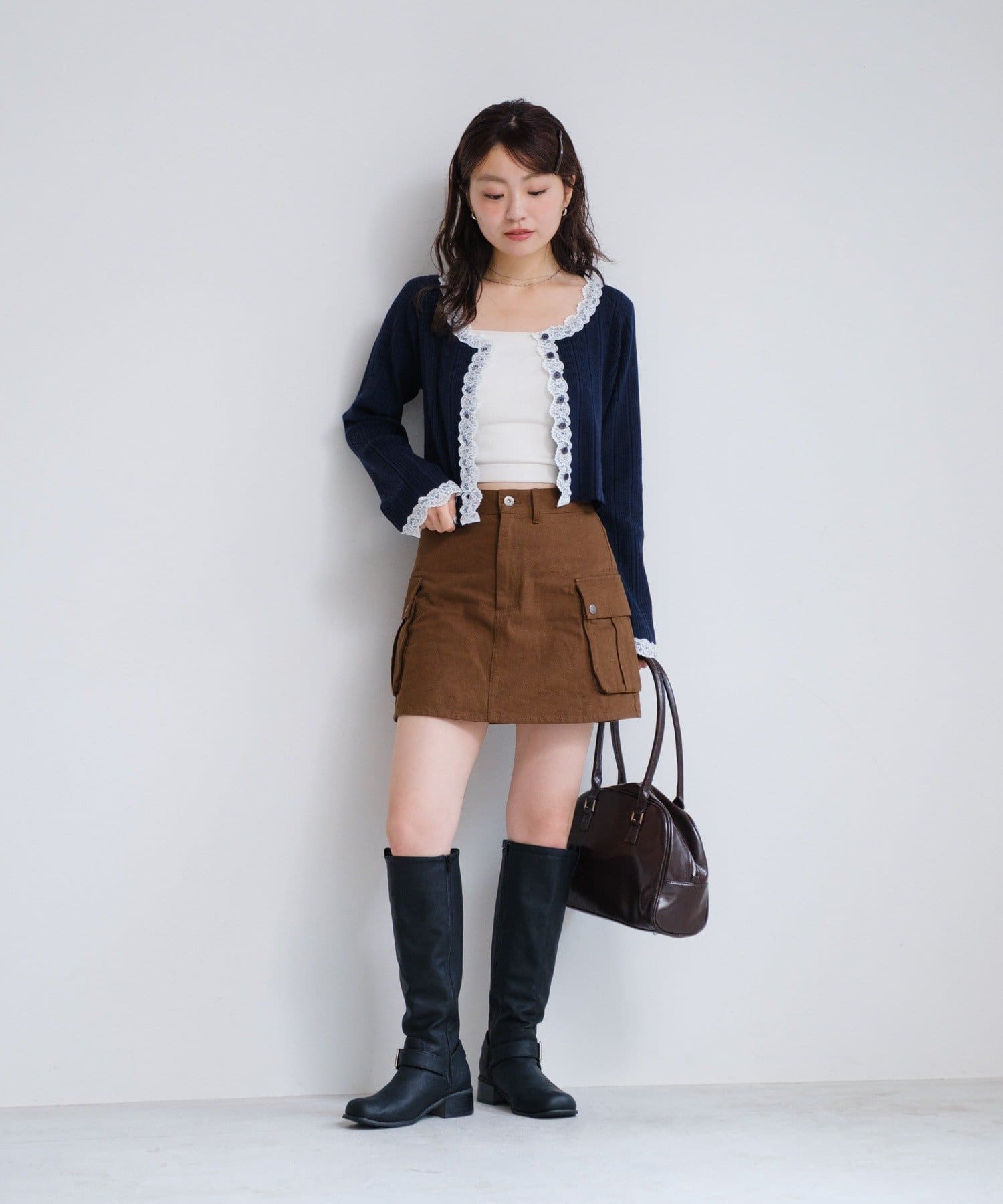 ショートボトムやフレアスカートと合わせてガーリーに。