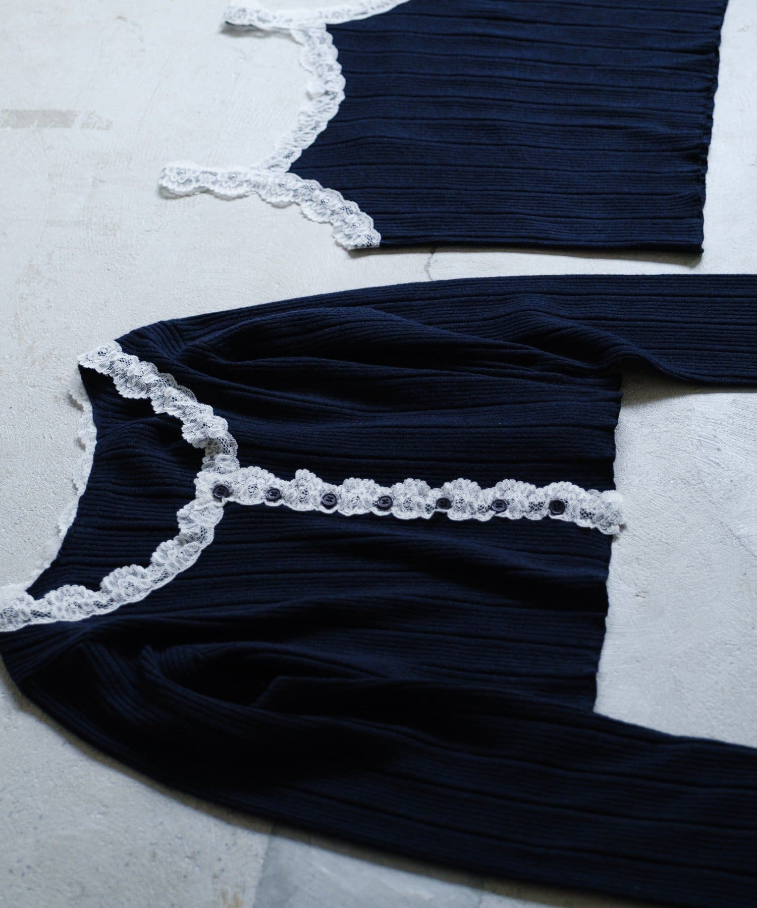 • Kastane(カスタネ) レースリブニットアンサンブル