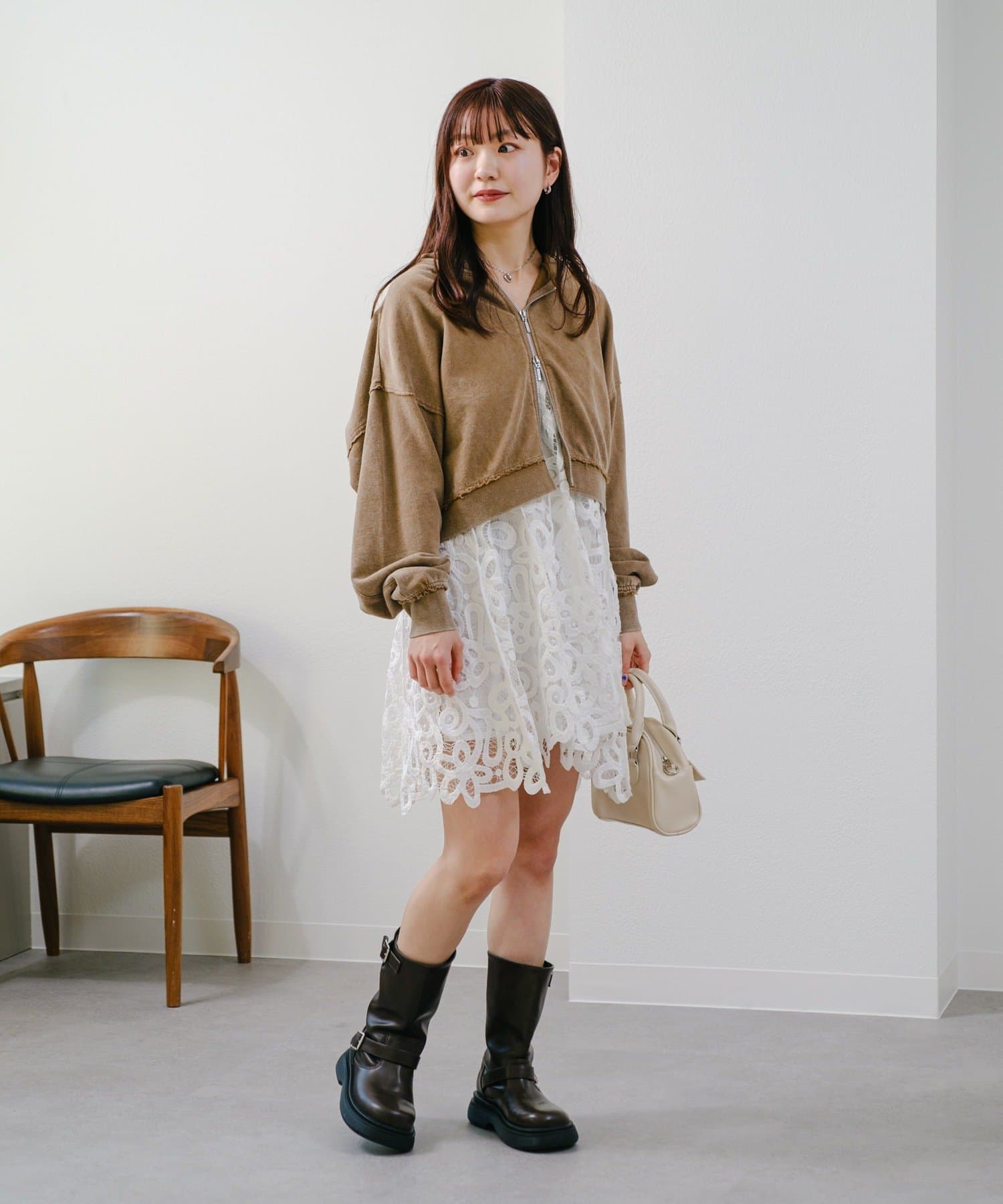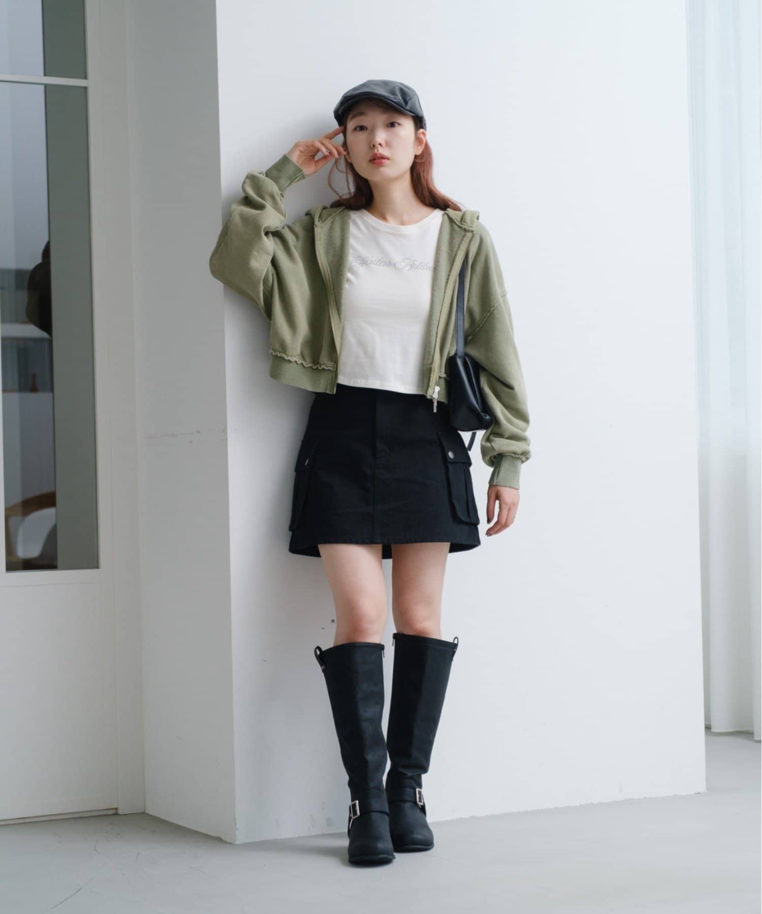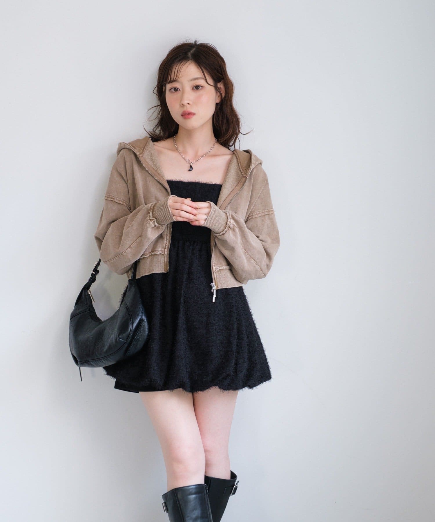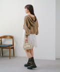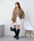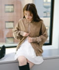 アウターからフードを出して着るのが可愛い。ダブルジップでおしゃれに着こなせます。