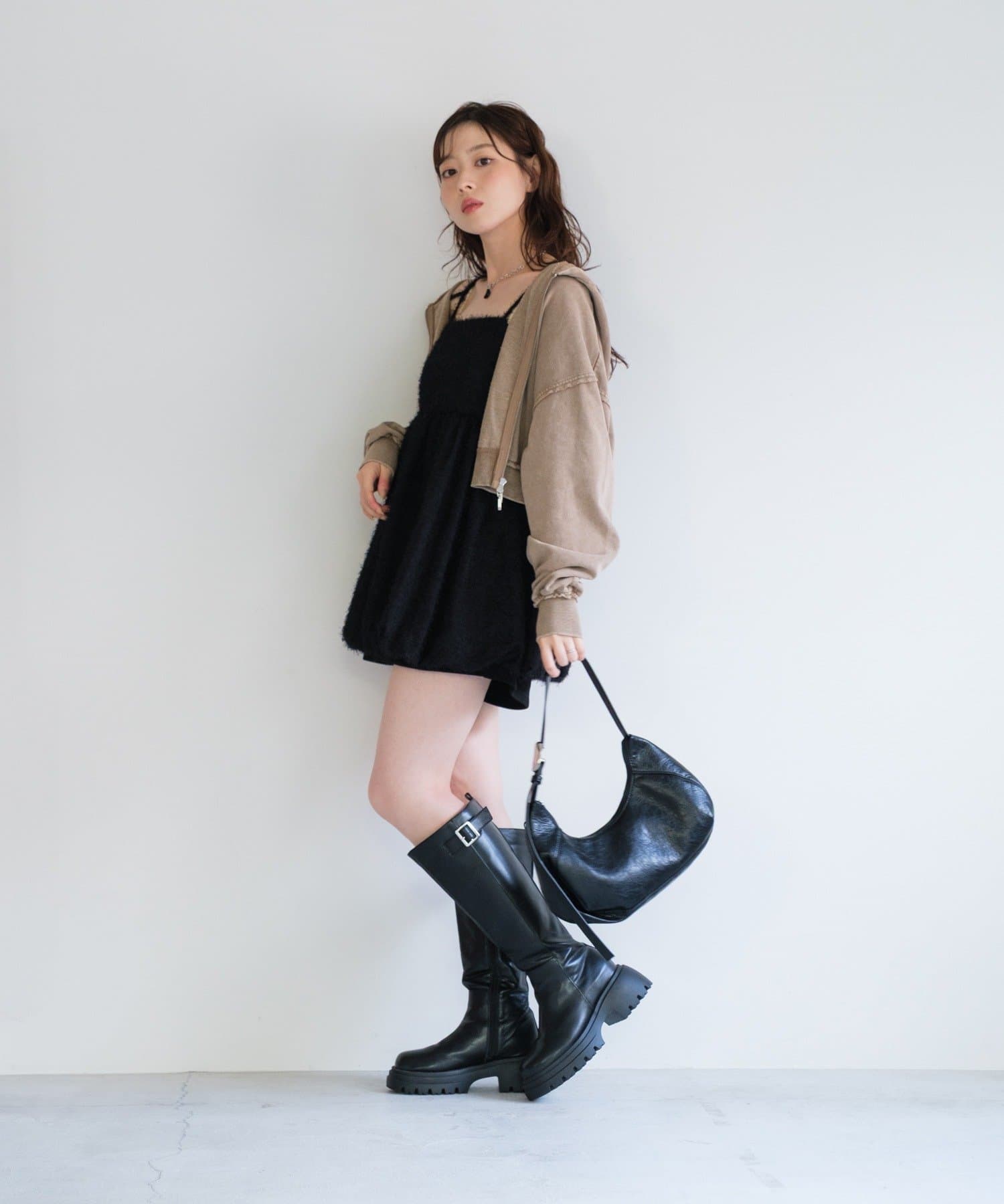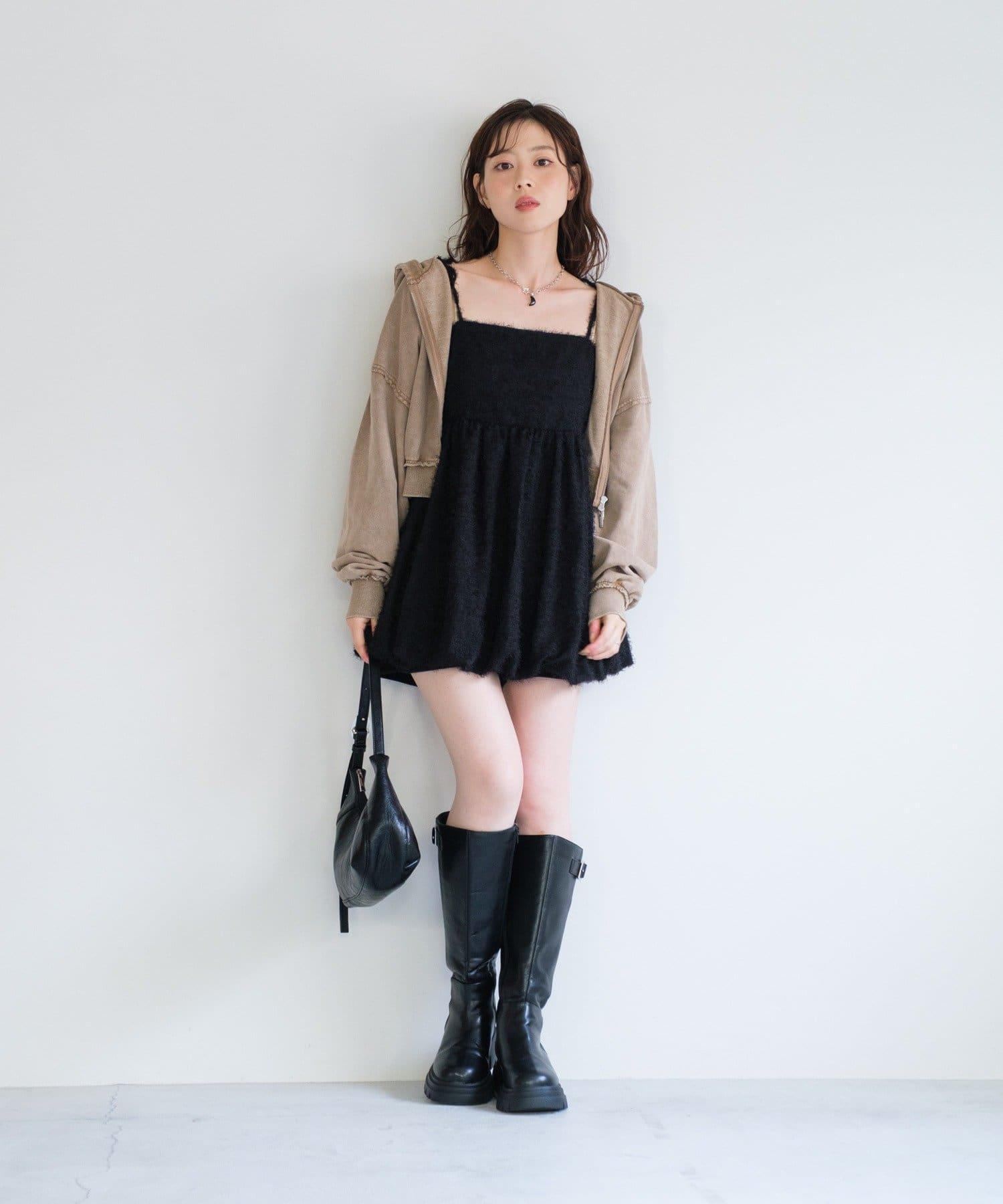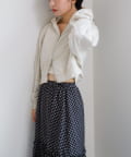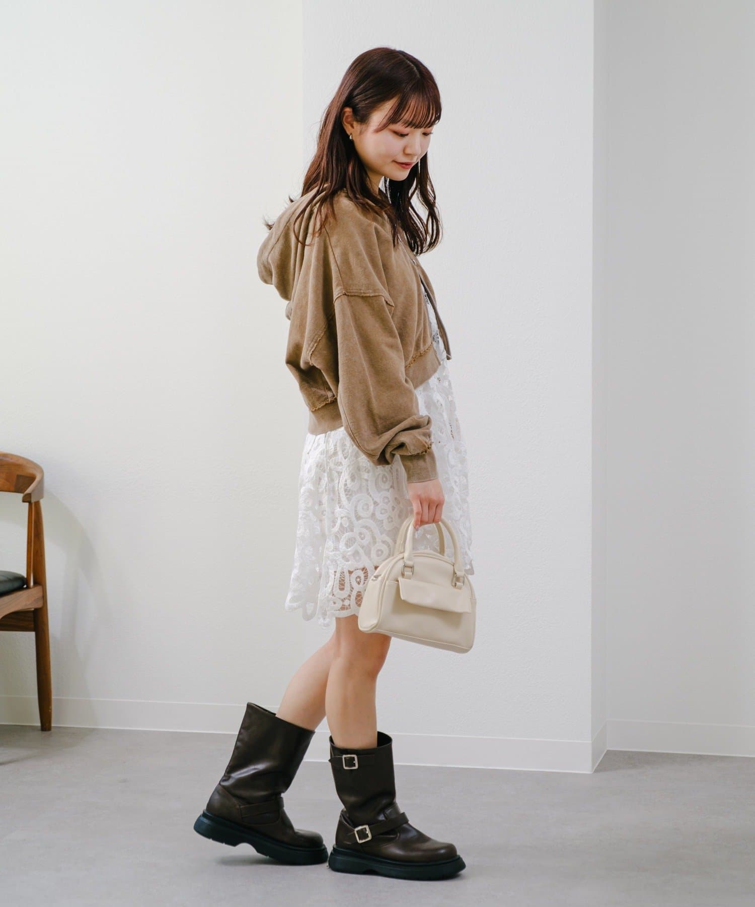 アウターからフードを出して着るのが可愛い。ダブルジップでおしゃれに着こなせます。