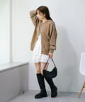チュニックの上から羽織り、カジュアルダウンさせるのがおすすめ。