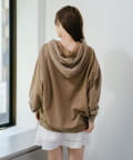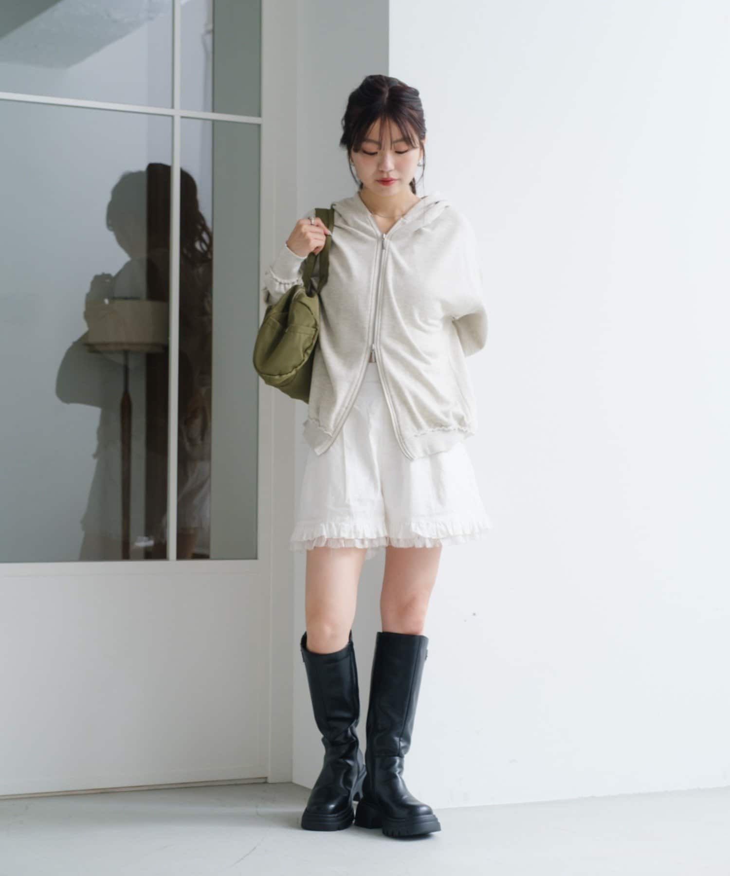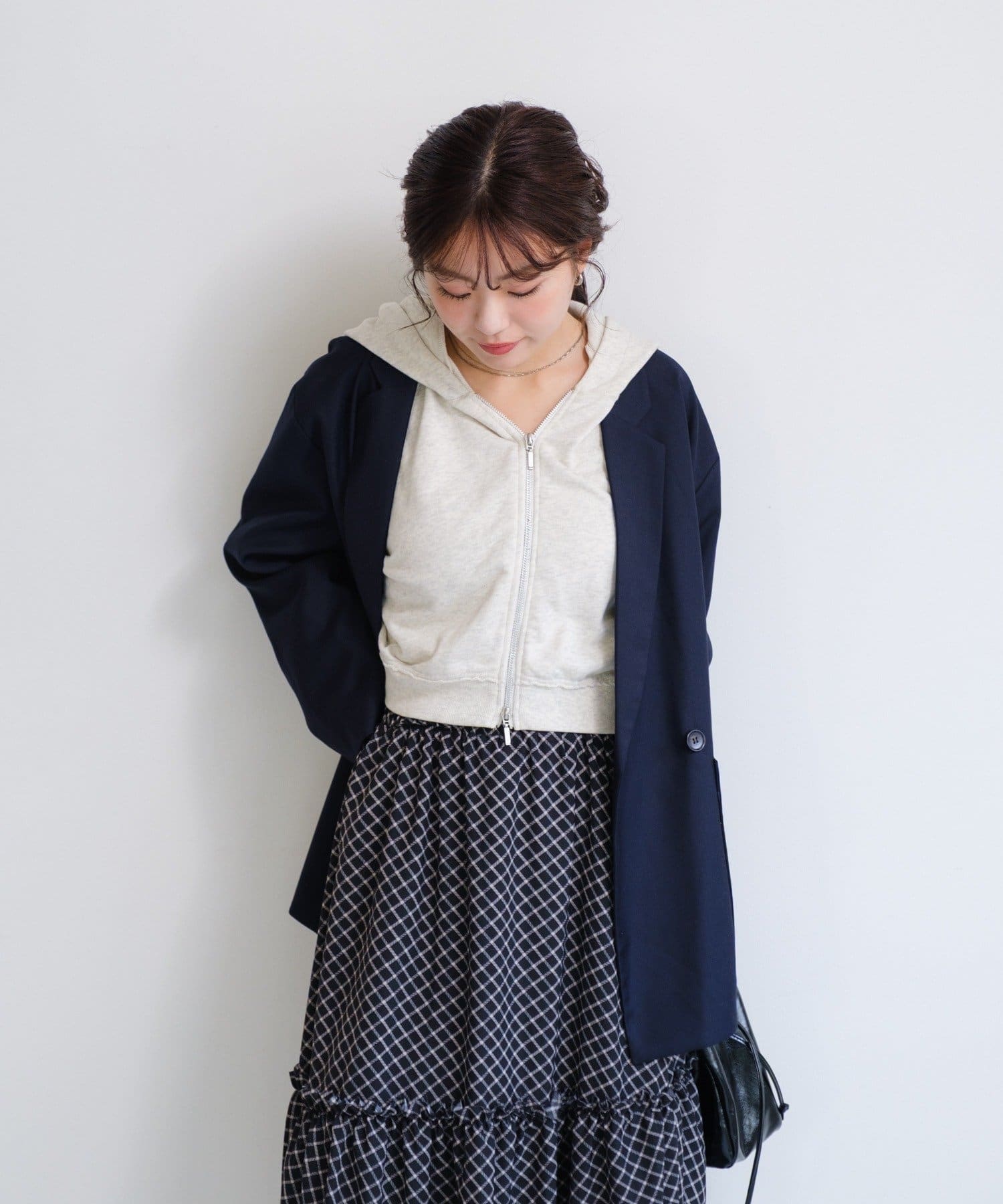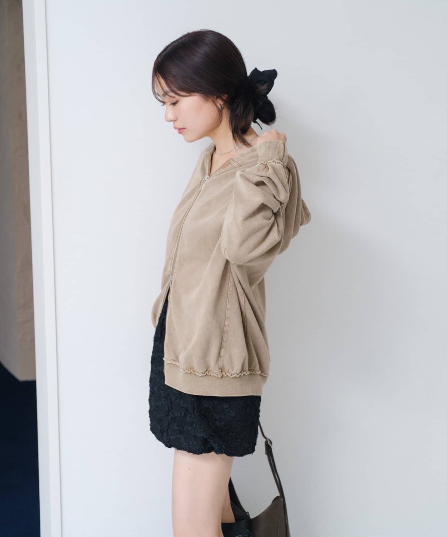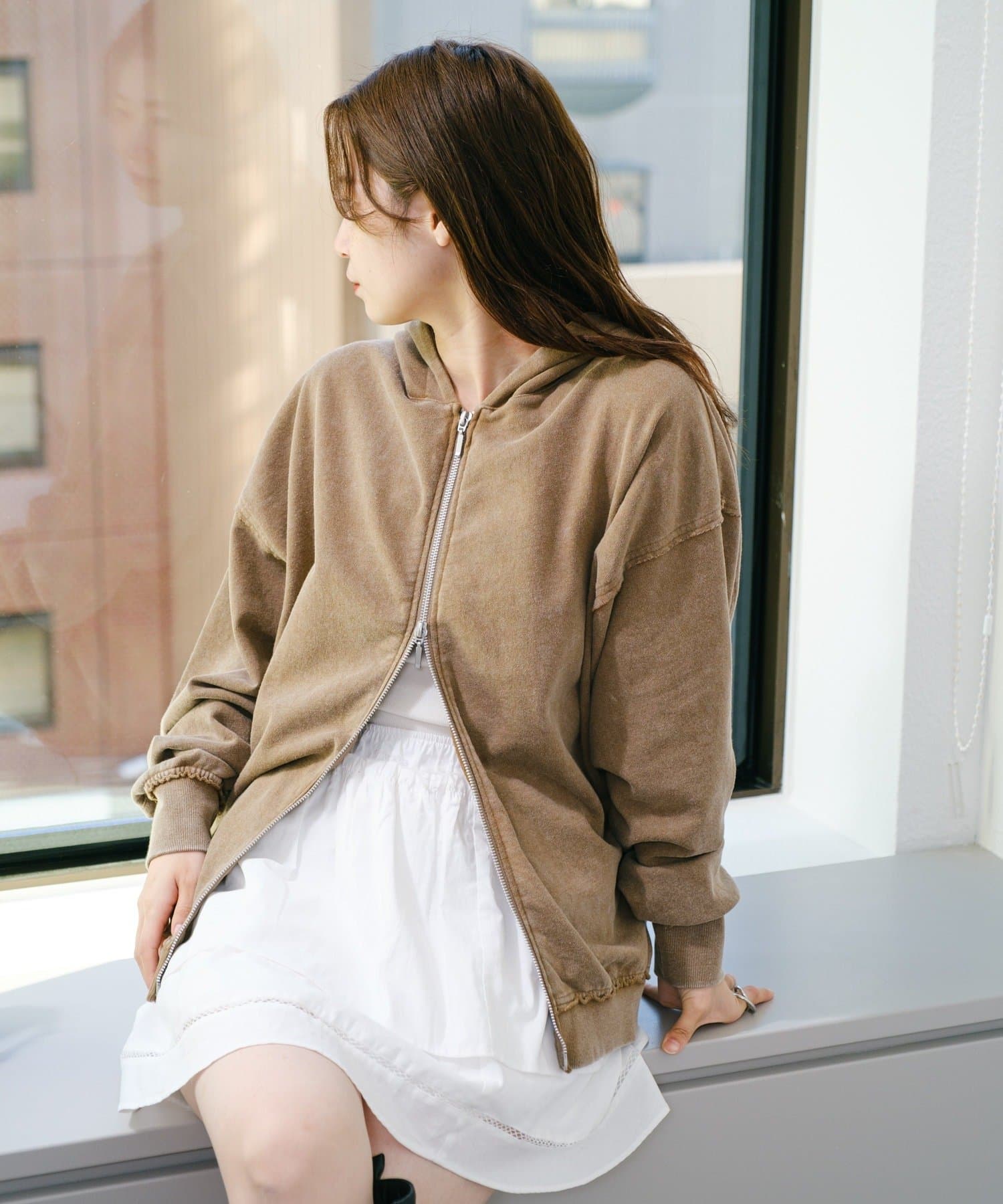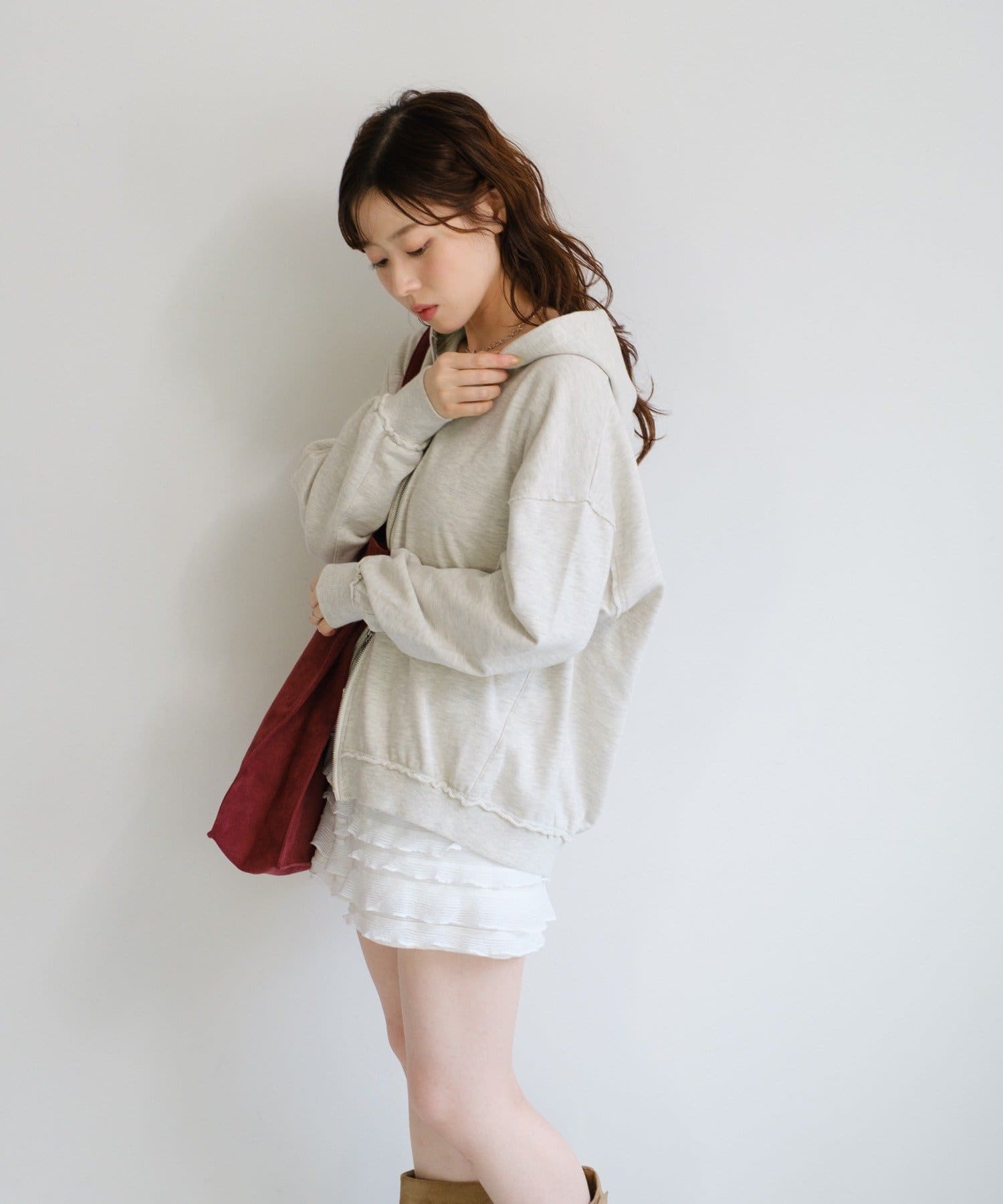 パーカーはカジュアル寄りになりすぎちゃうし、部屋着感が出て、避けてましたがダブルジップの大きめゆるっとパーカーはさすがに可愛すぎてアウターと合わせて購入しました!可愛いです!