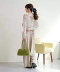 首回りはスッキリとしたボートネックで女性らしい印象に。