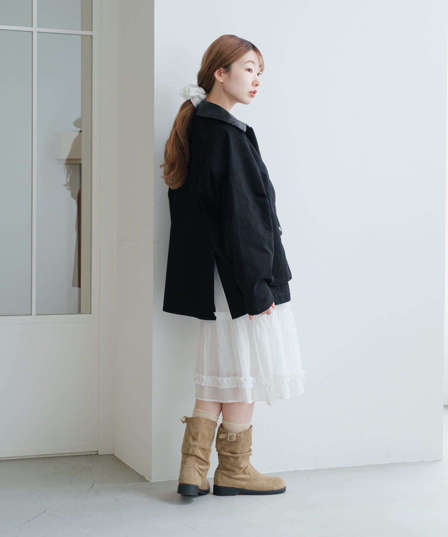 フロントを開けて羽織るだけでも、こなれ感を演出してくれます。