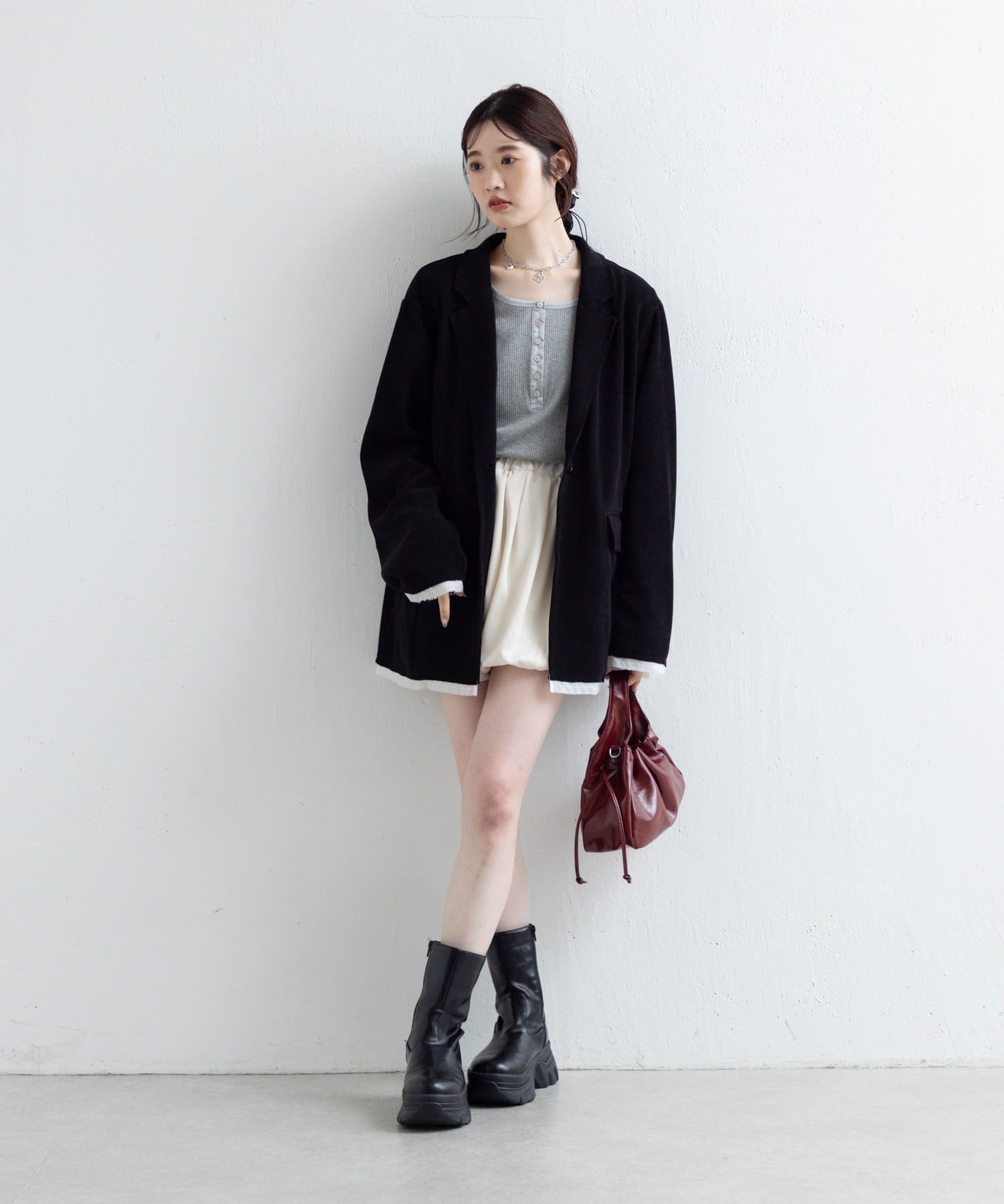 同素材のショートパンツとセットアップで着るのがおすすめ。