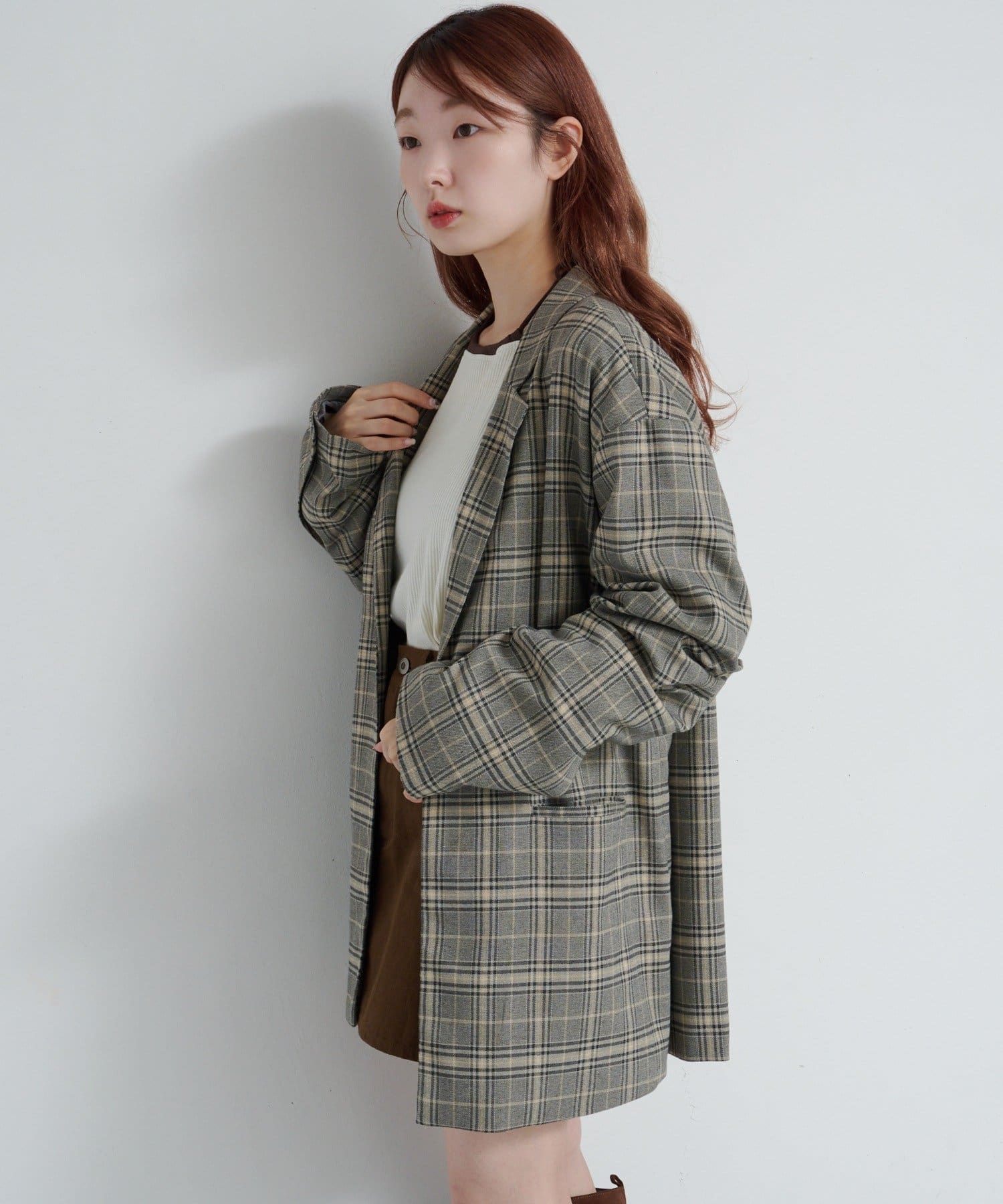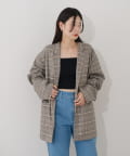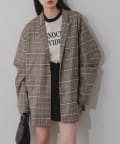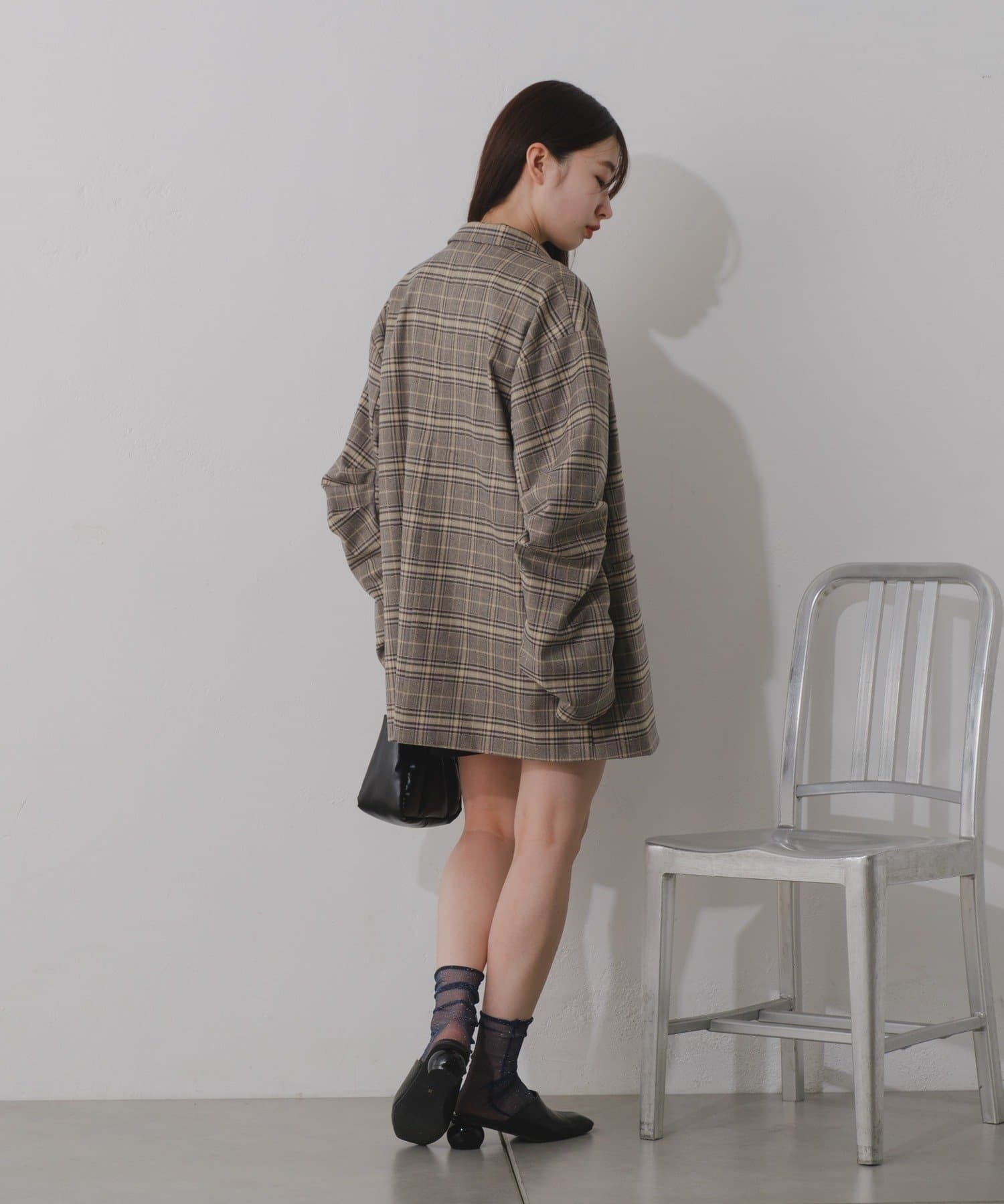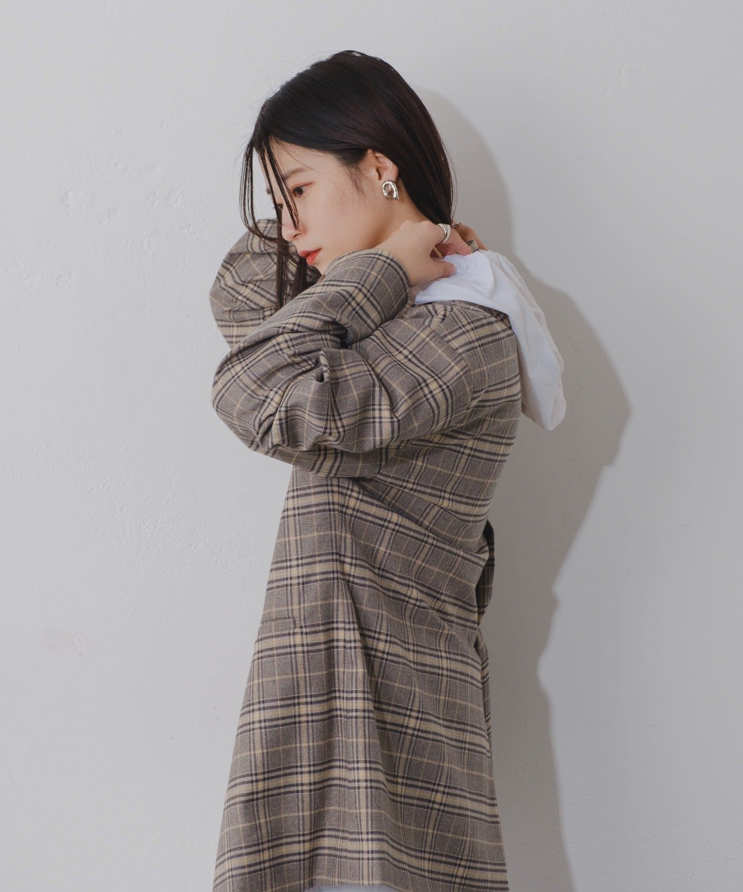 【裏地あり/デザイン袖/チェック&無地】デザインオーバージャケット
