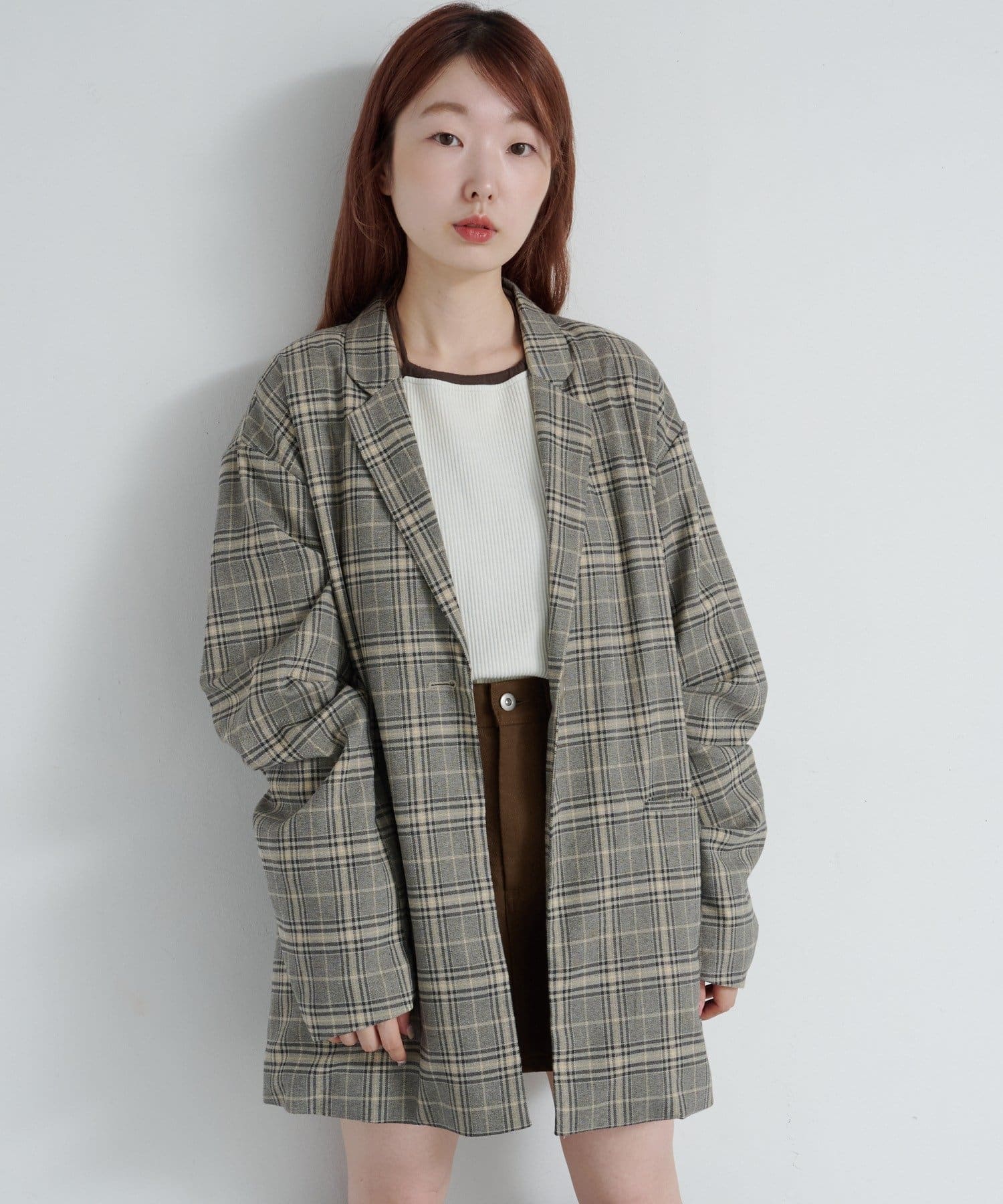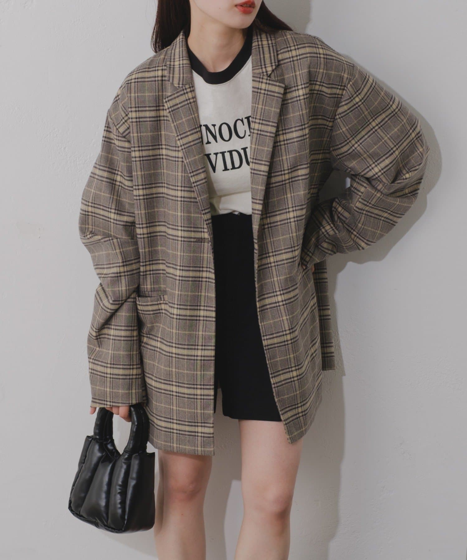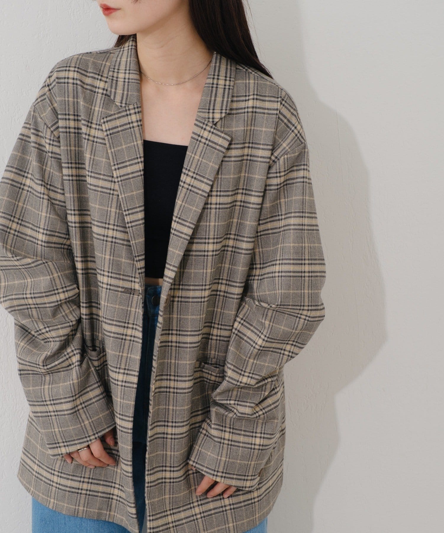 【裏地あり/デザイン袖/チェック&無地】デザインオーバージャケット