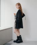 ボトムはボリュームスカートやミニ丈がトレンドのスタイリングバランス。
