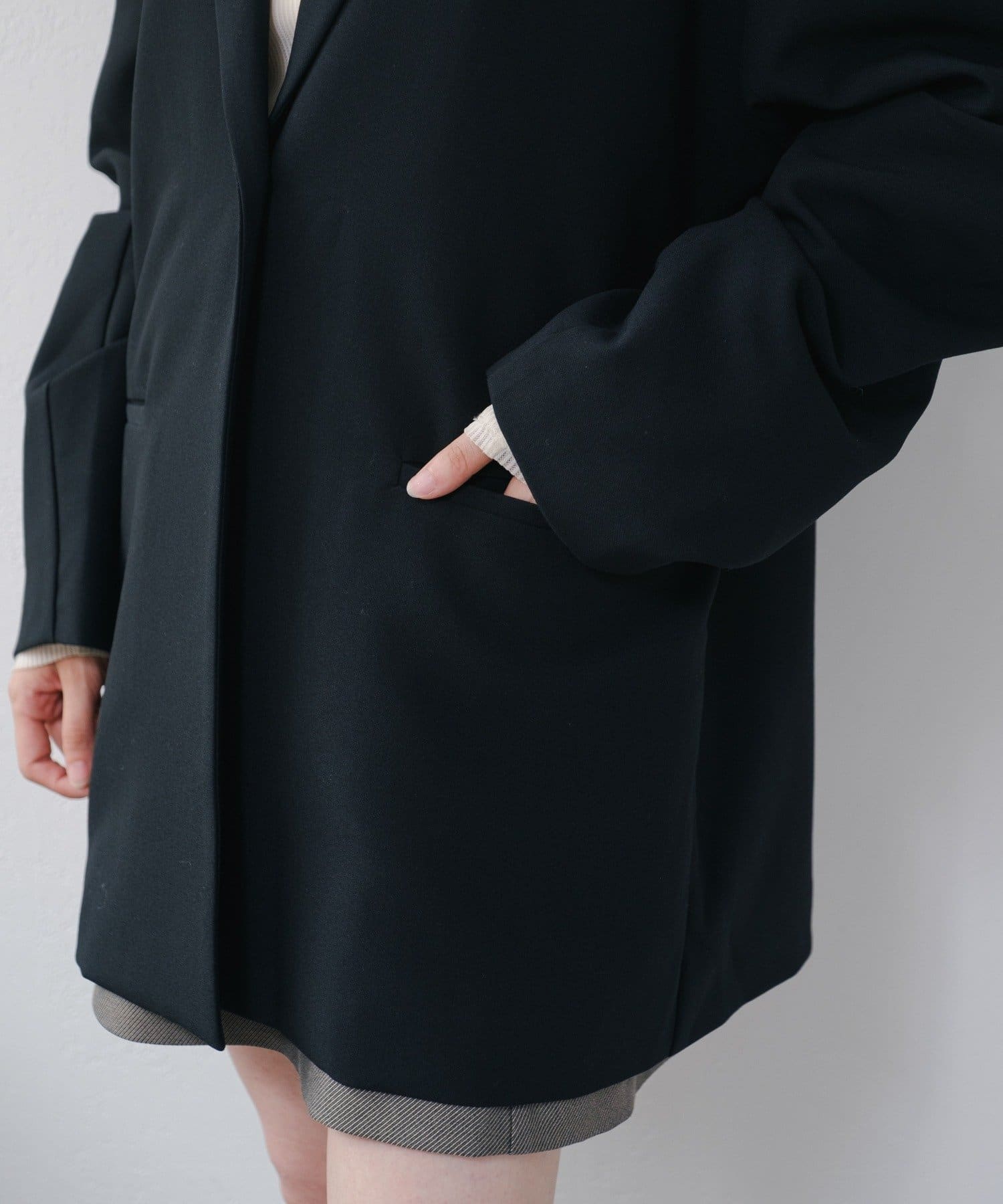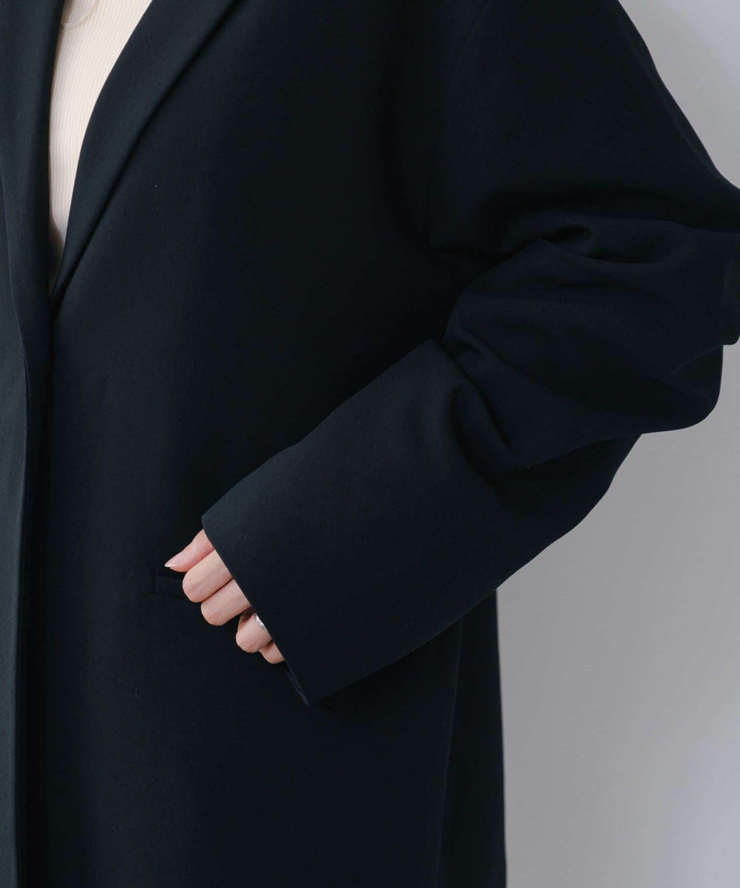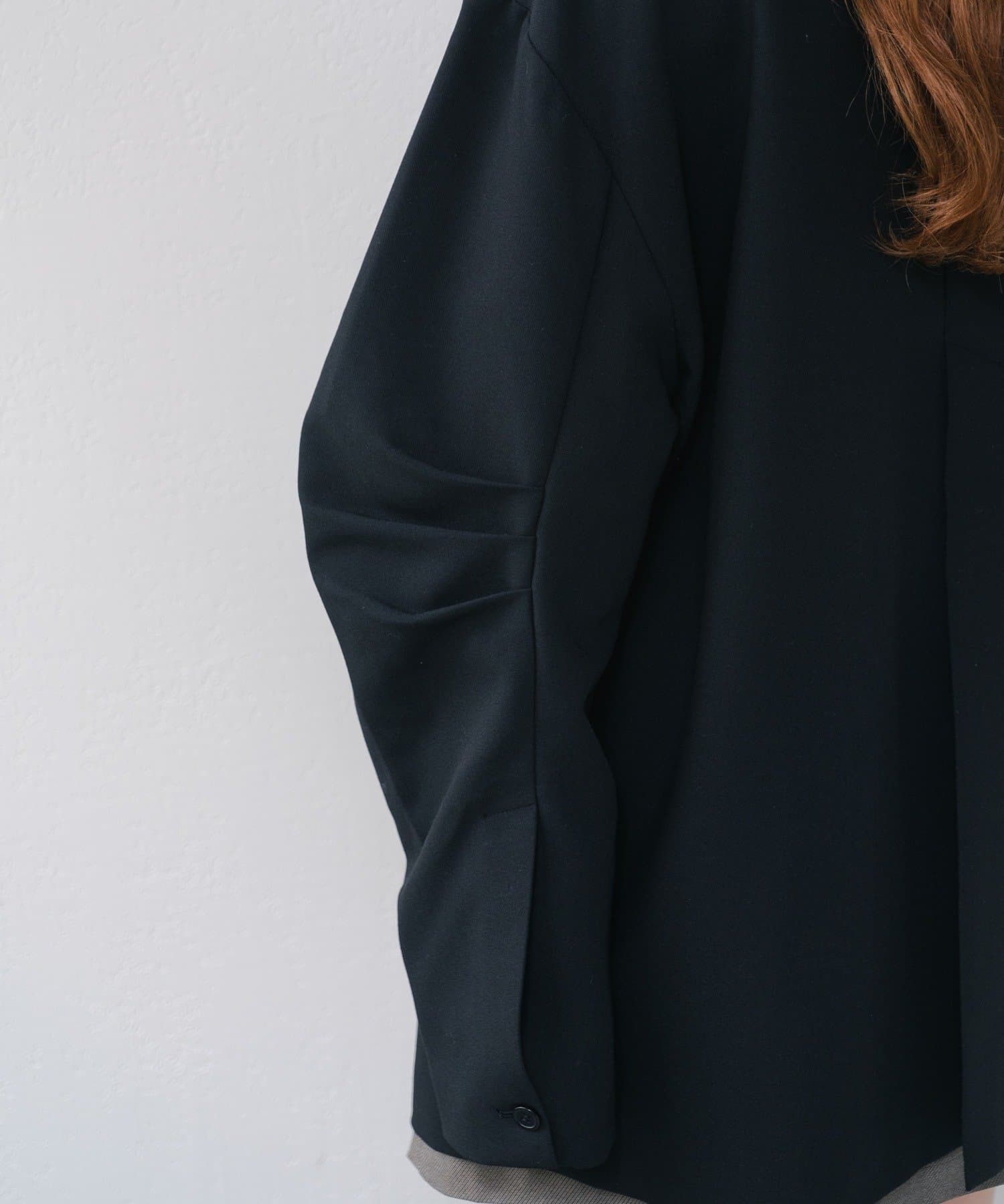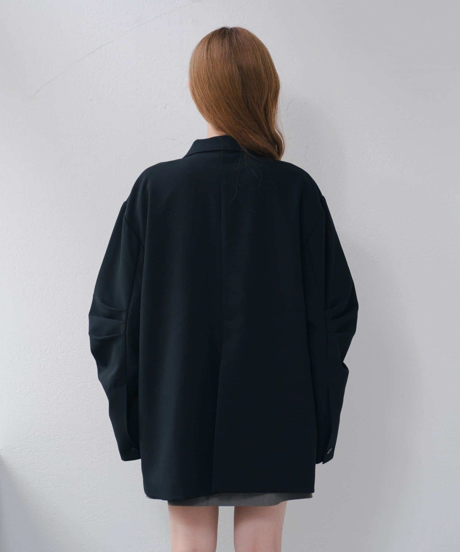 袖のタックデザインが新鮮なオーバージャケット